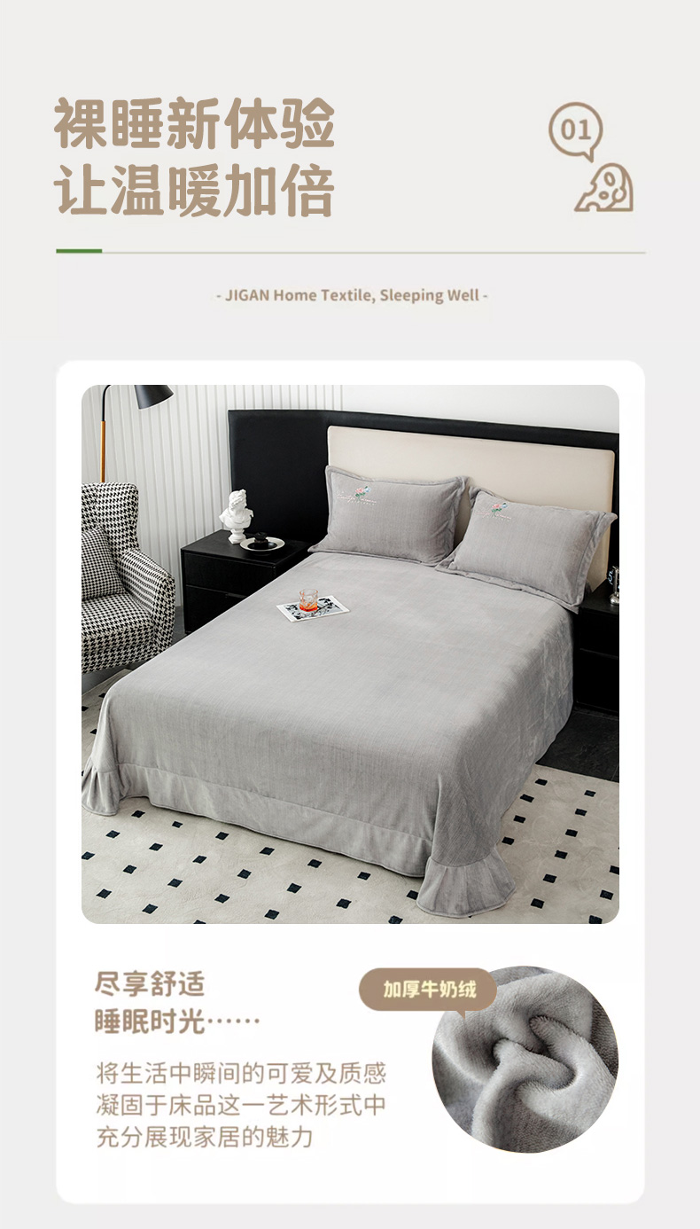 (总)新款230克纯色加厚肌理纹牛奶绒单床单