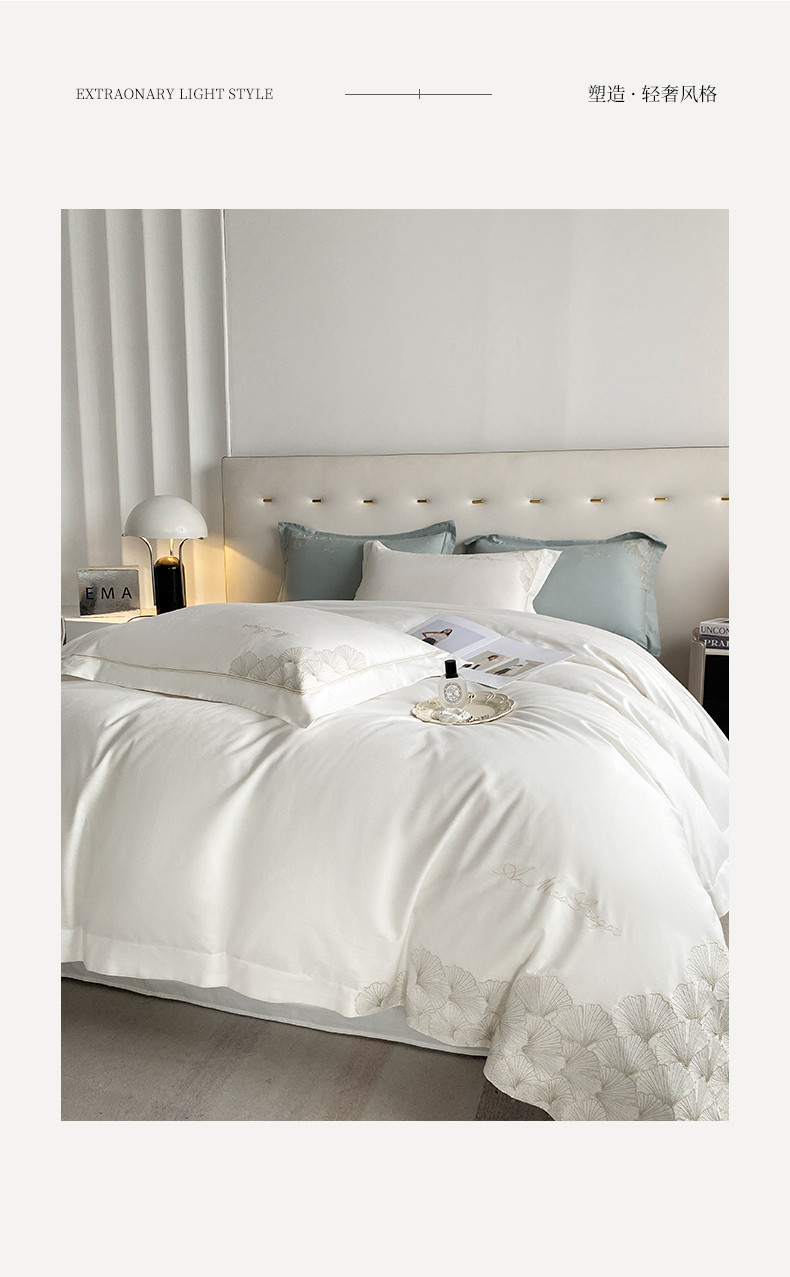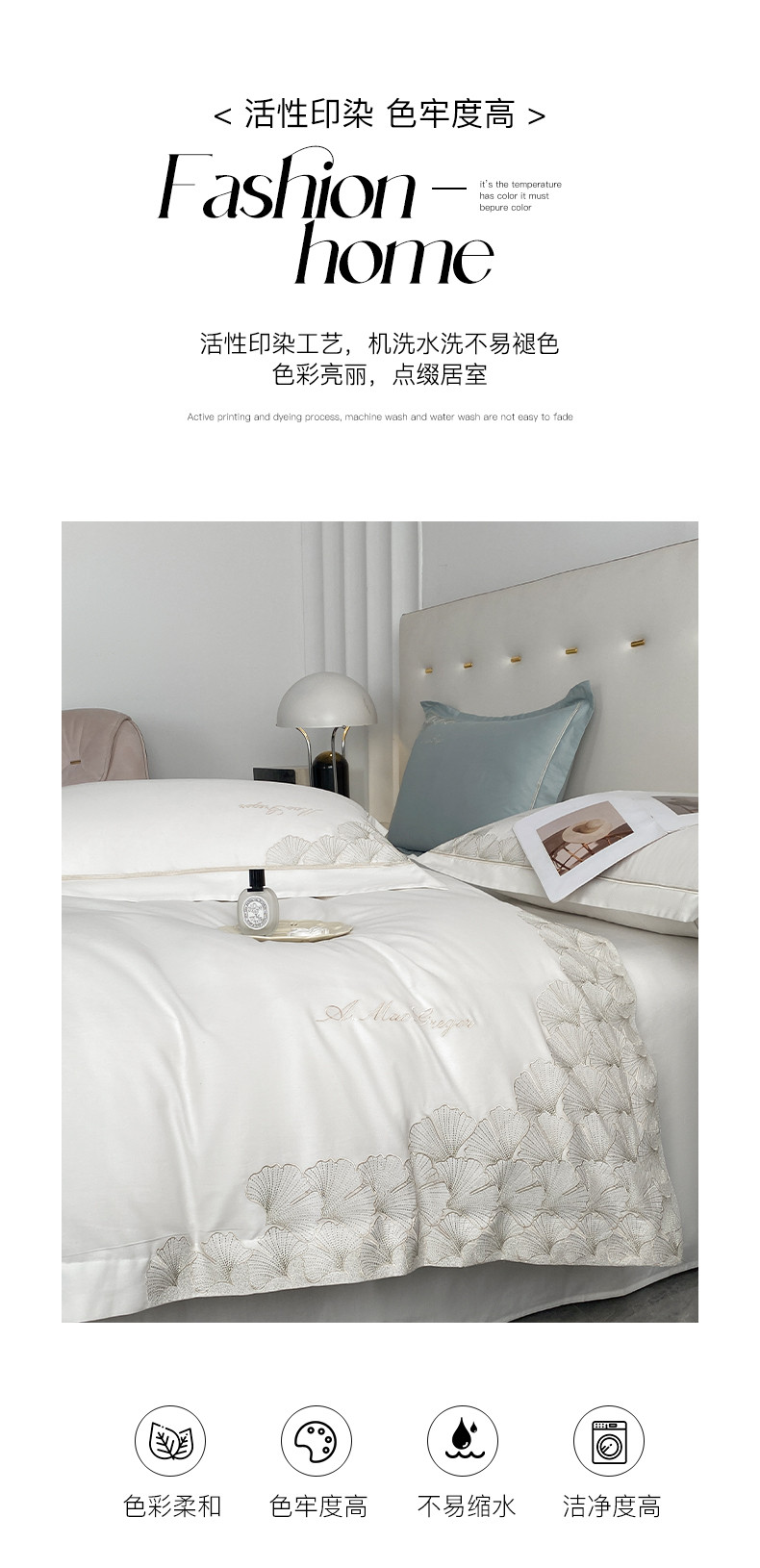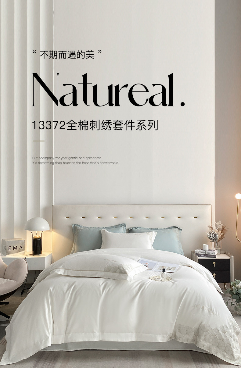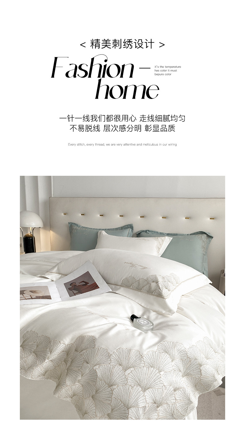 商品名称:理想家家纺 2023新款叶影系列13372全棉刺绣四件套 叶影-白