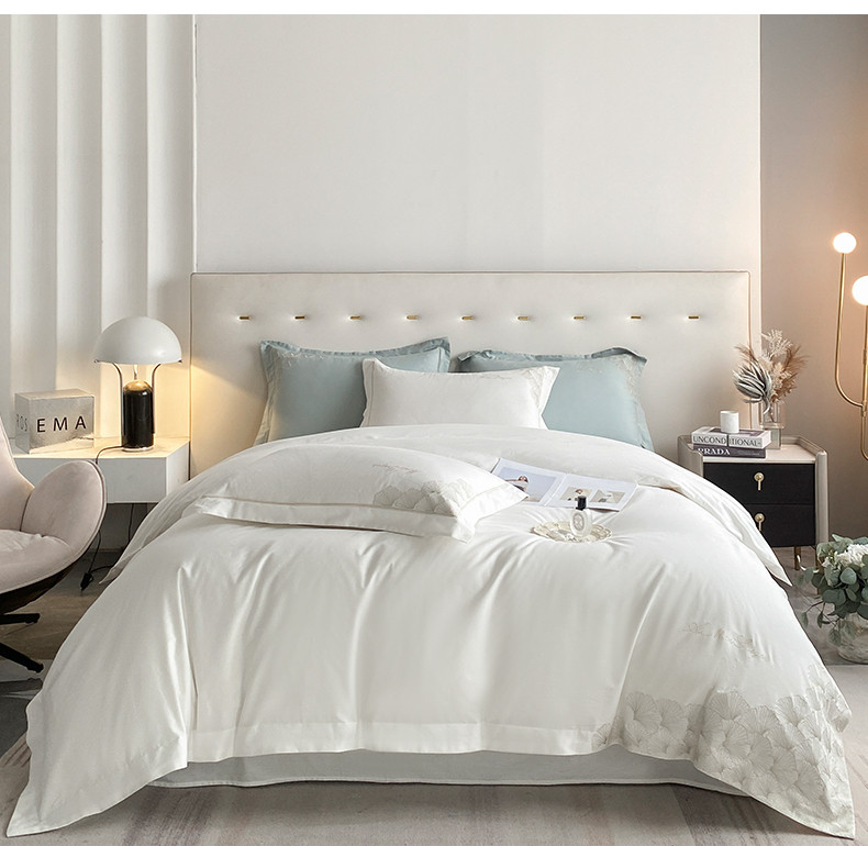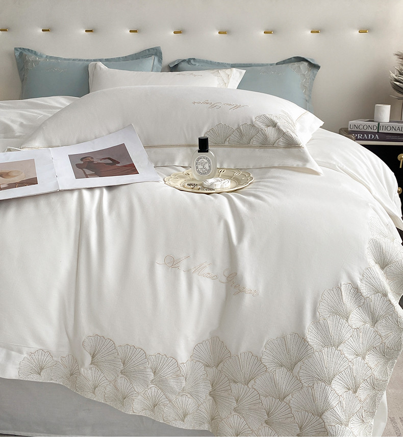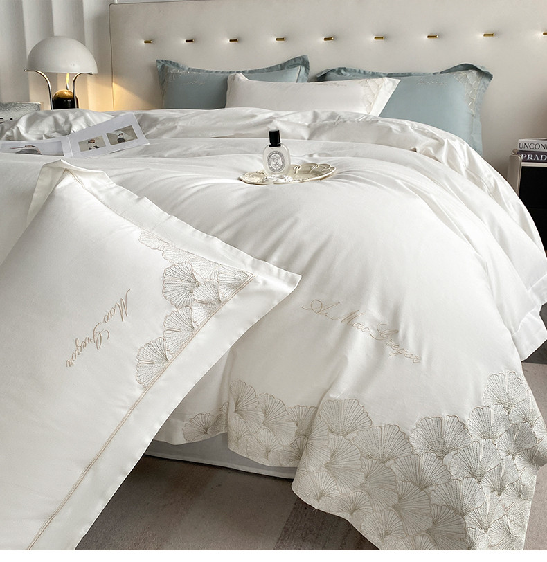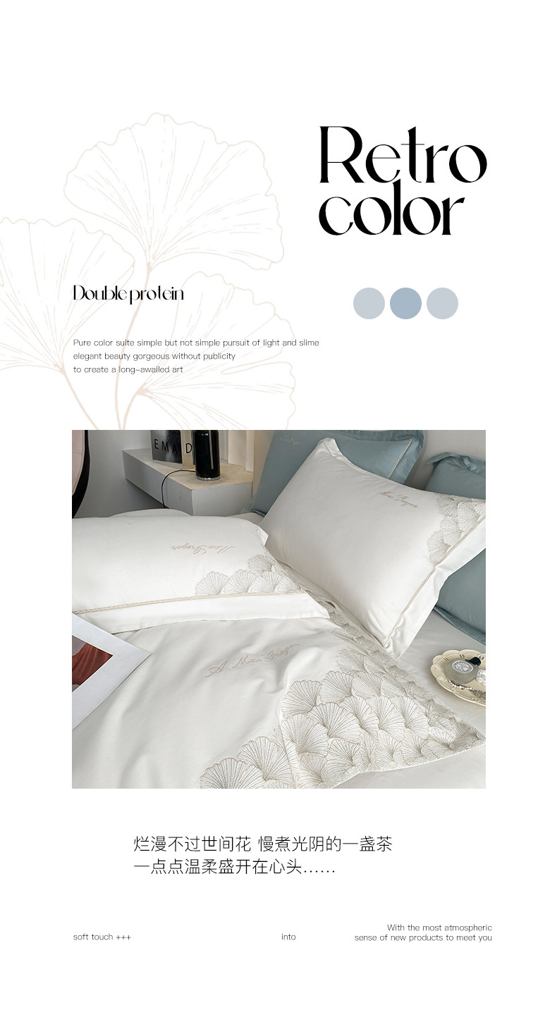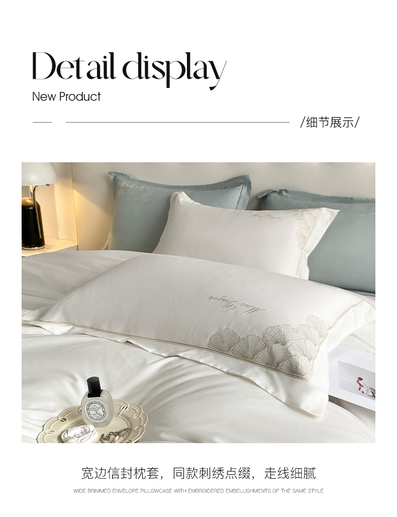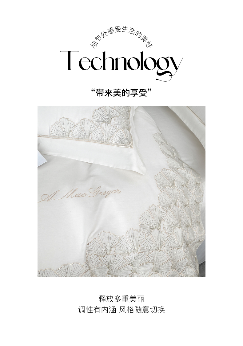商品名称:理想家家纺 2023新款叶影系列13372全棉刺绣四件套 叶影-白