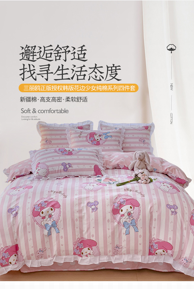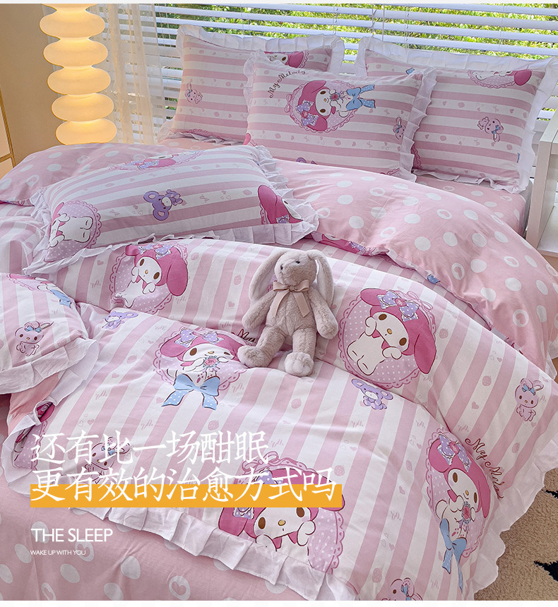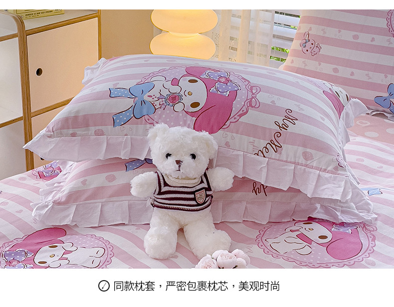 商品名称:桃子 2023新款三丽鸥正版授权韩版花边少女纯棉系列四件套 棉花边-美心美乐蒂