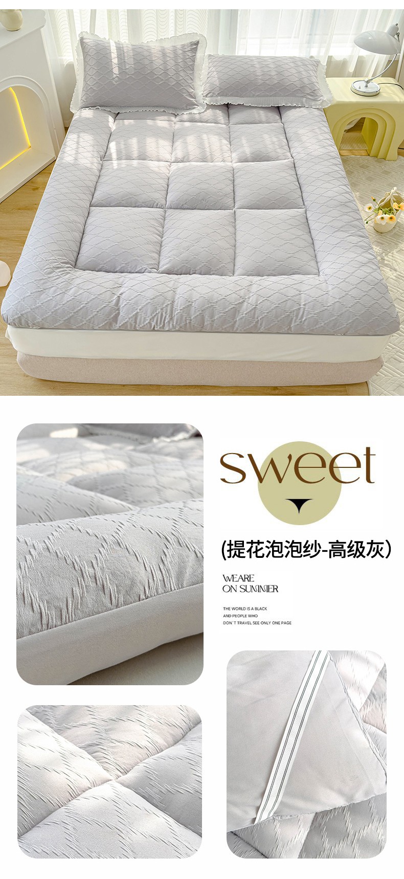 商品名称:蓝冰家纺2024新款A类泡泡纱提花绗缝活性印染羽丝棉床笠床垫款 灰