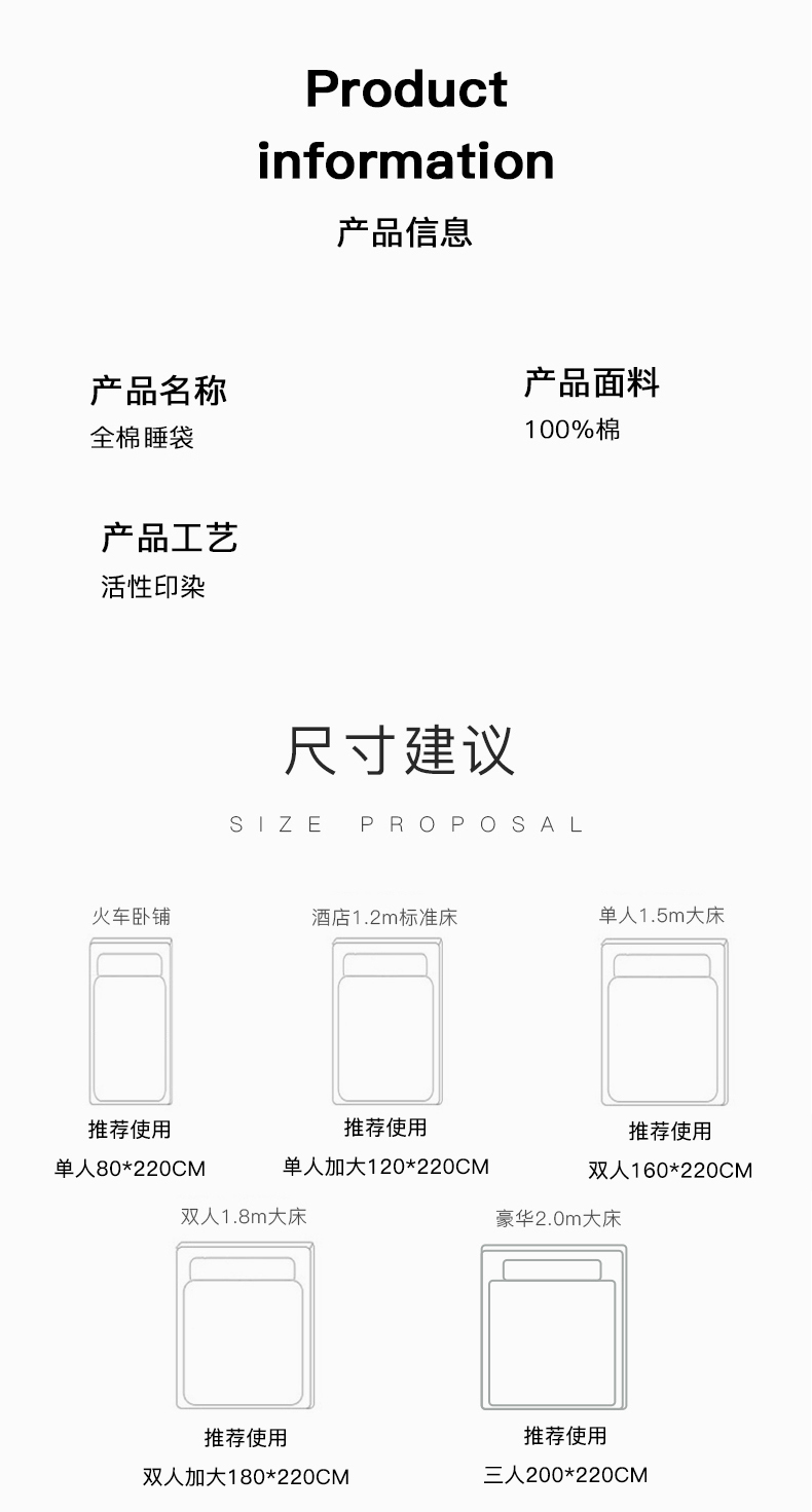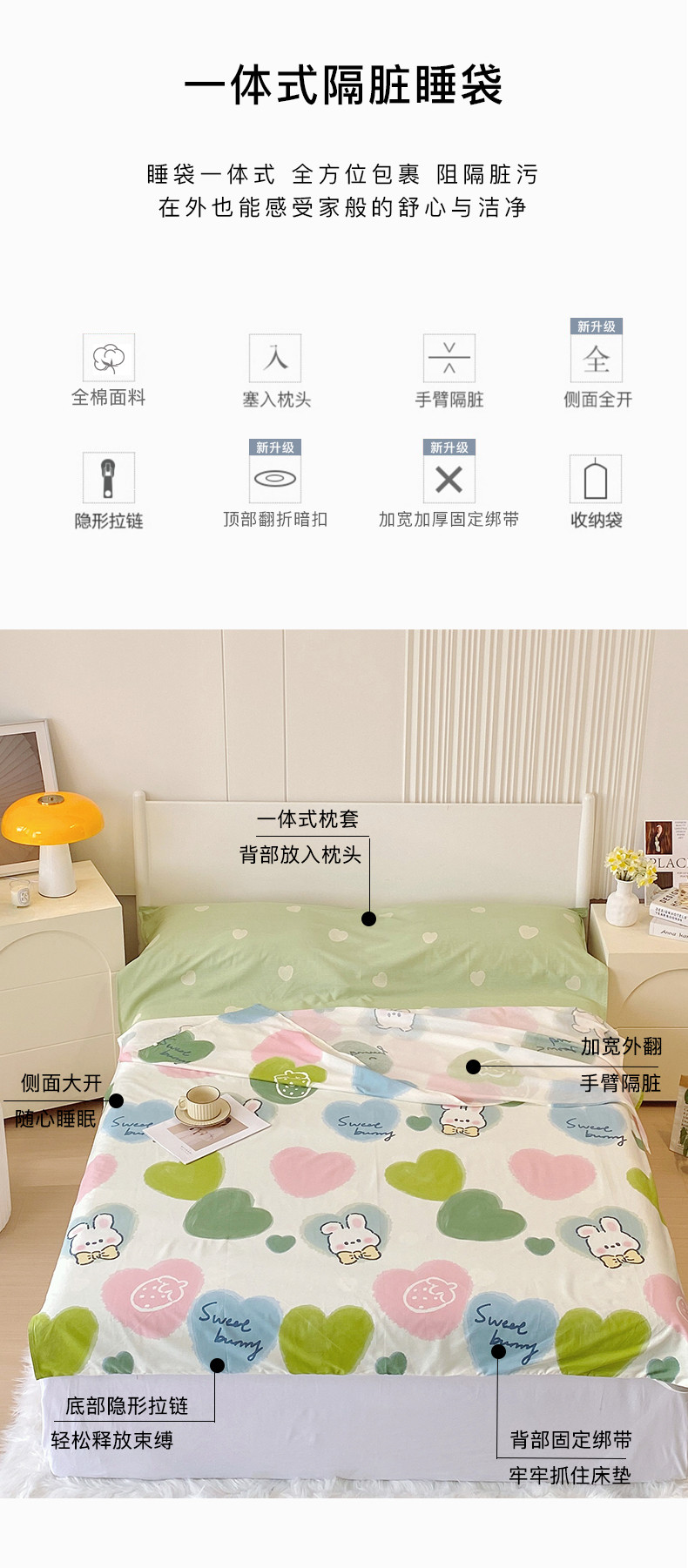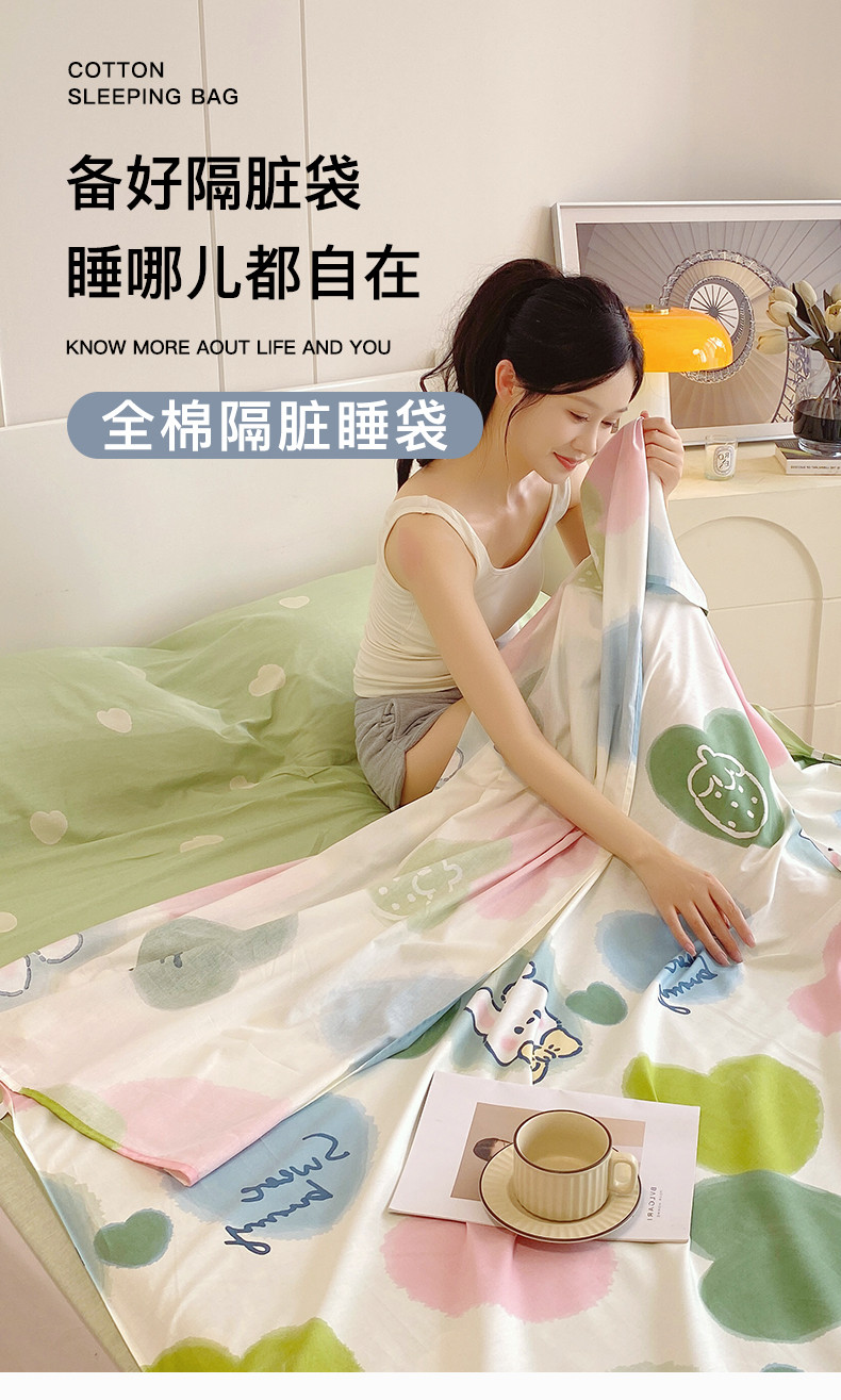 商品名称:金鑫汇 2023新款全棉亲肤印花隔脏睡袋 心心念念