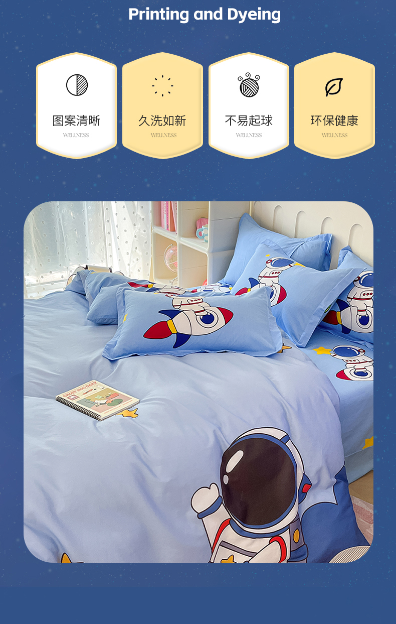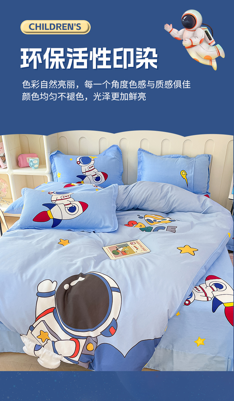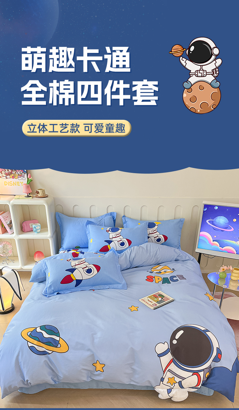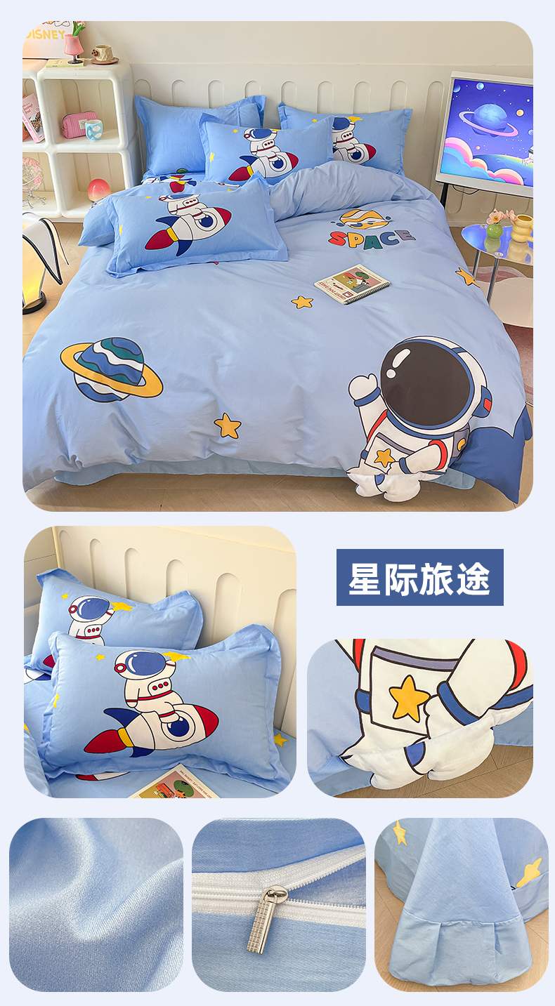 商品名称:孩子王家纺 2023新款全棉卡通学生活性印花大版工艺款四件套 星际旅途