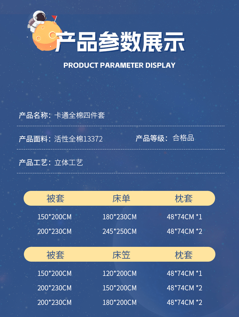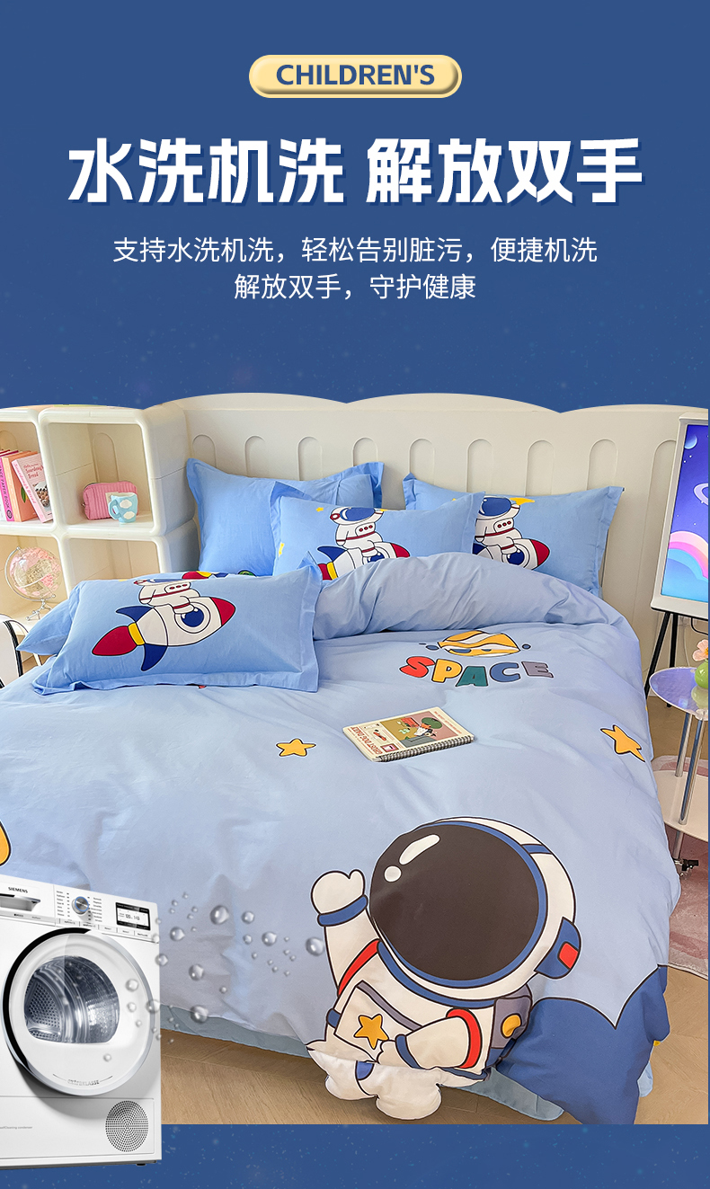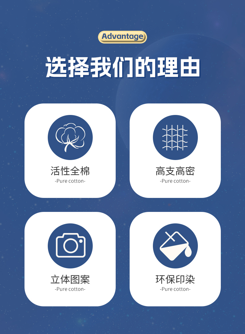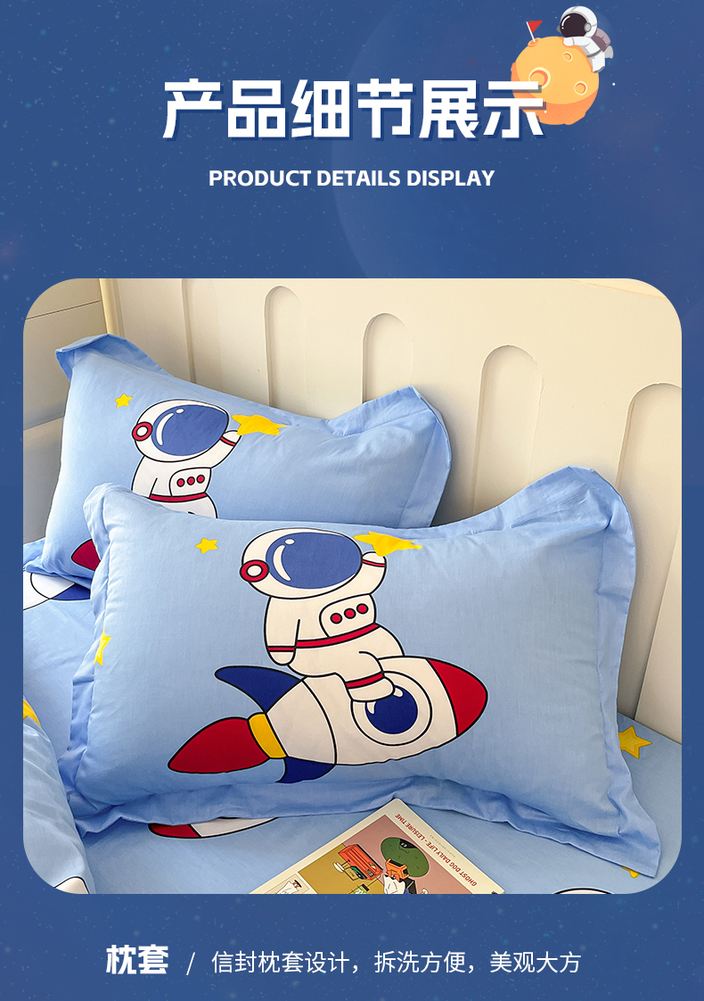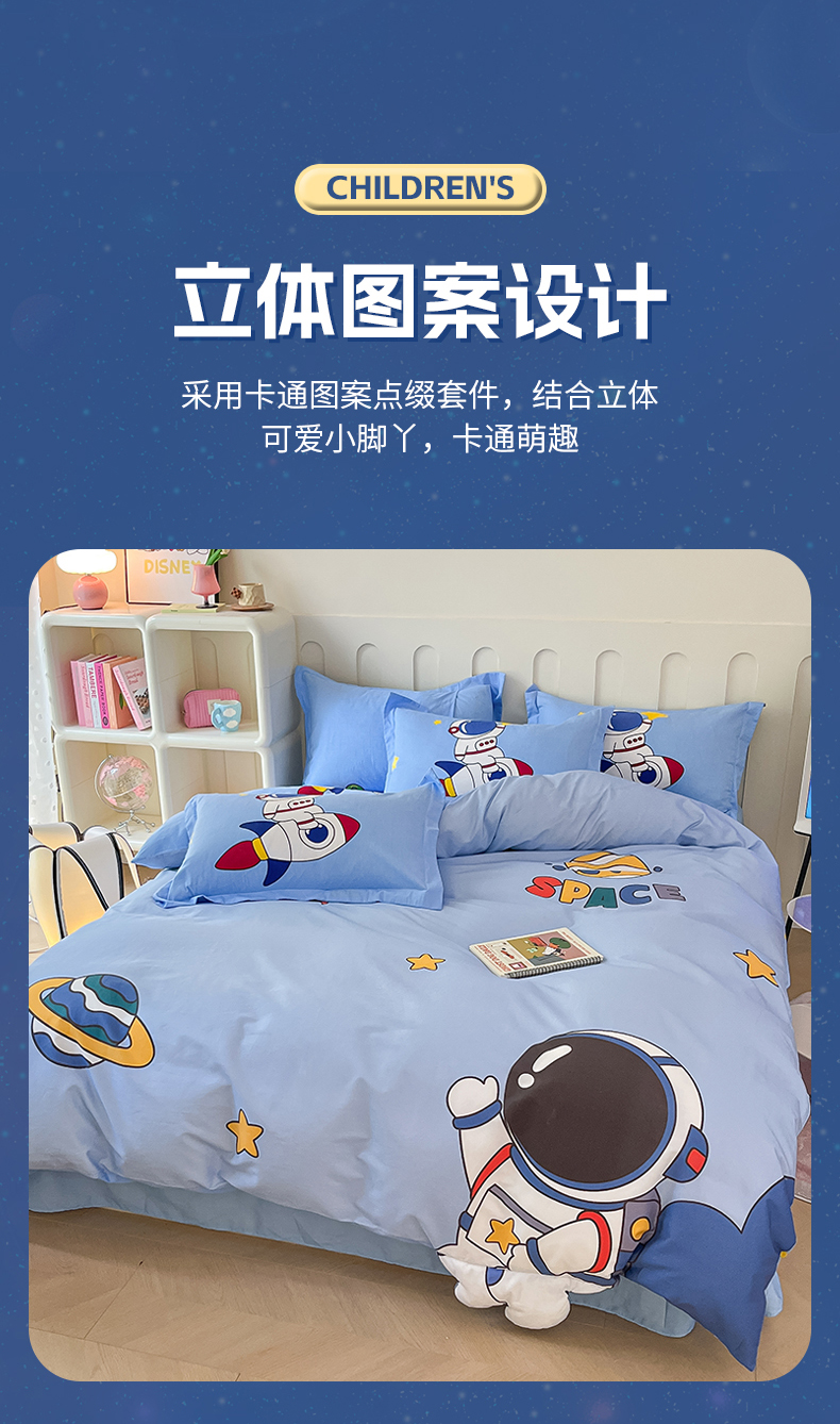 商品名称:孩子王家纺 2023新款全棉卡通学生活性印花大版工艺款四件套 星际旅途