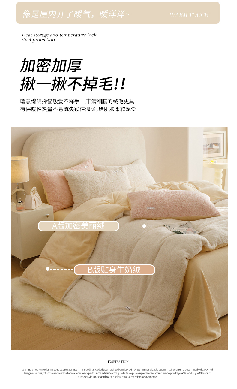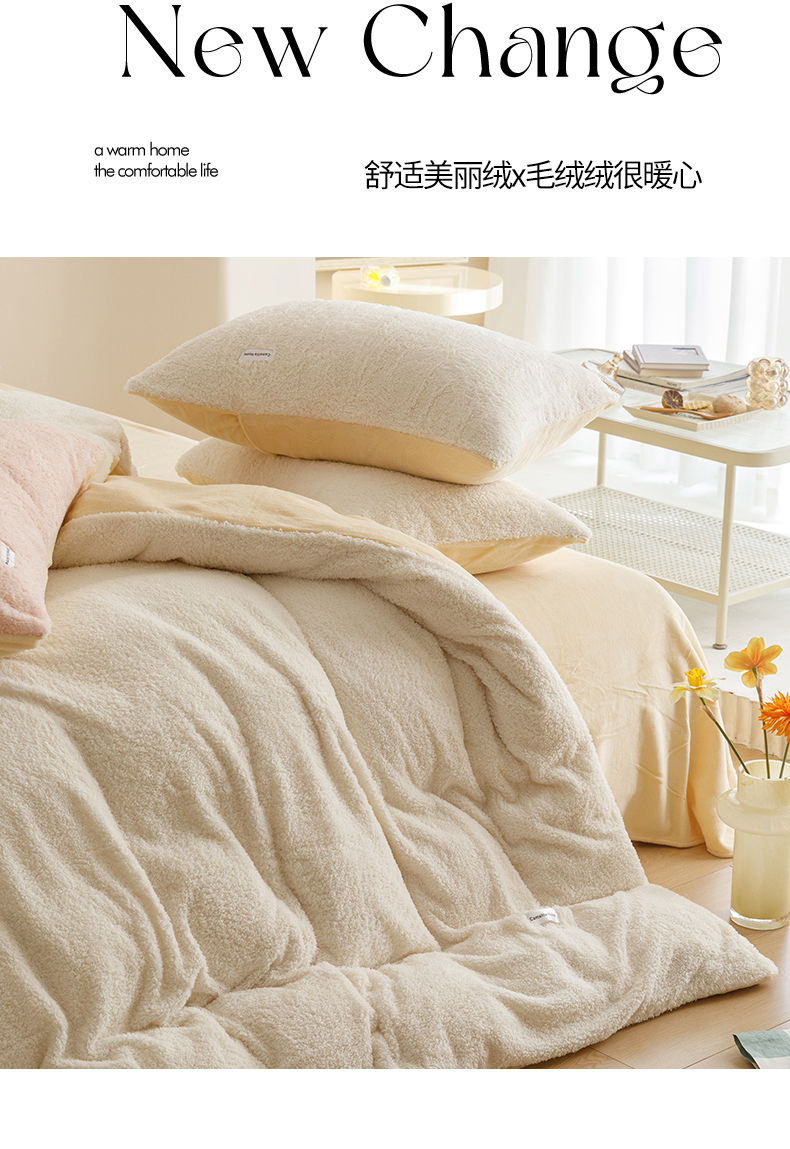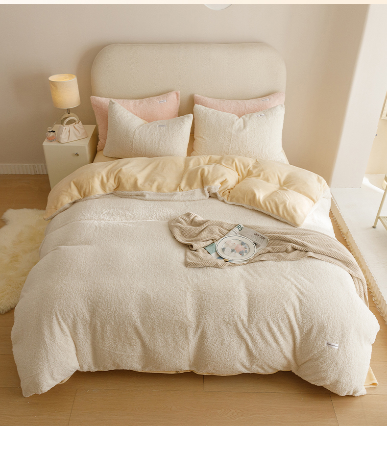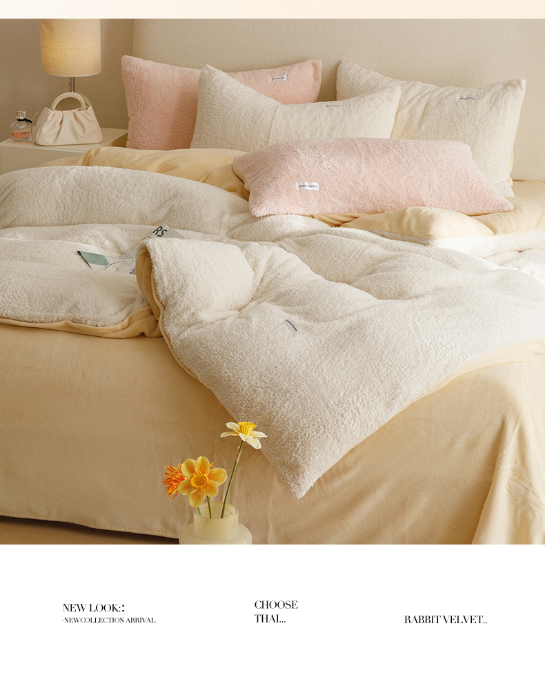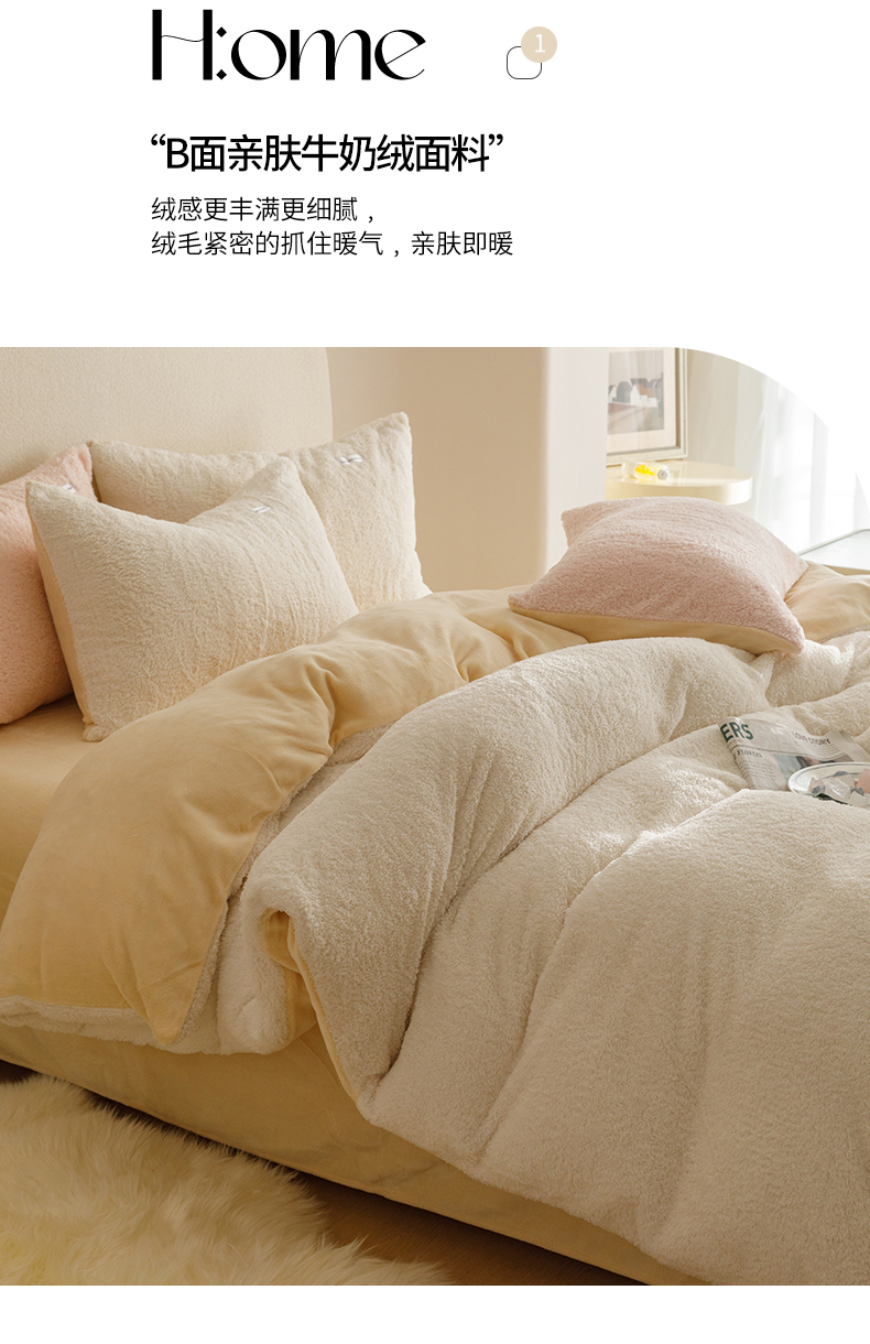 当前位置: 91家纺网 > 商品网购 > 床品套件 > 四件套 > 牛奶绒四件套 > 2023新款小清新纯色双拼美丽绒牛奶绒四件套 奶白拼黄