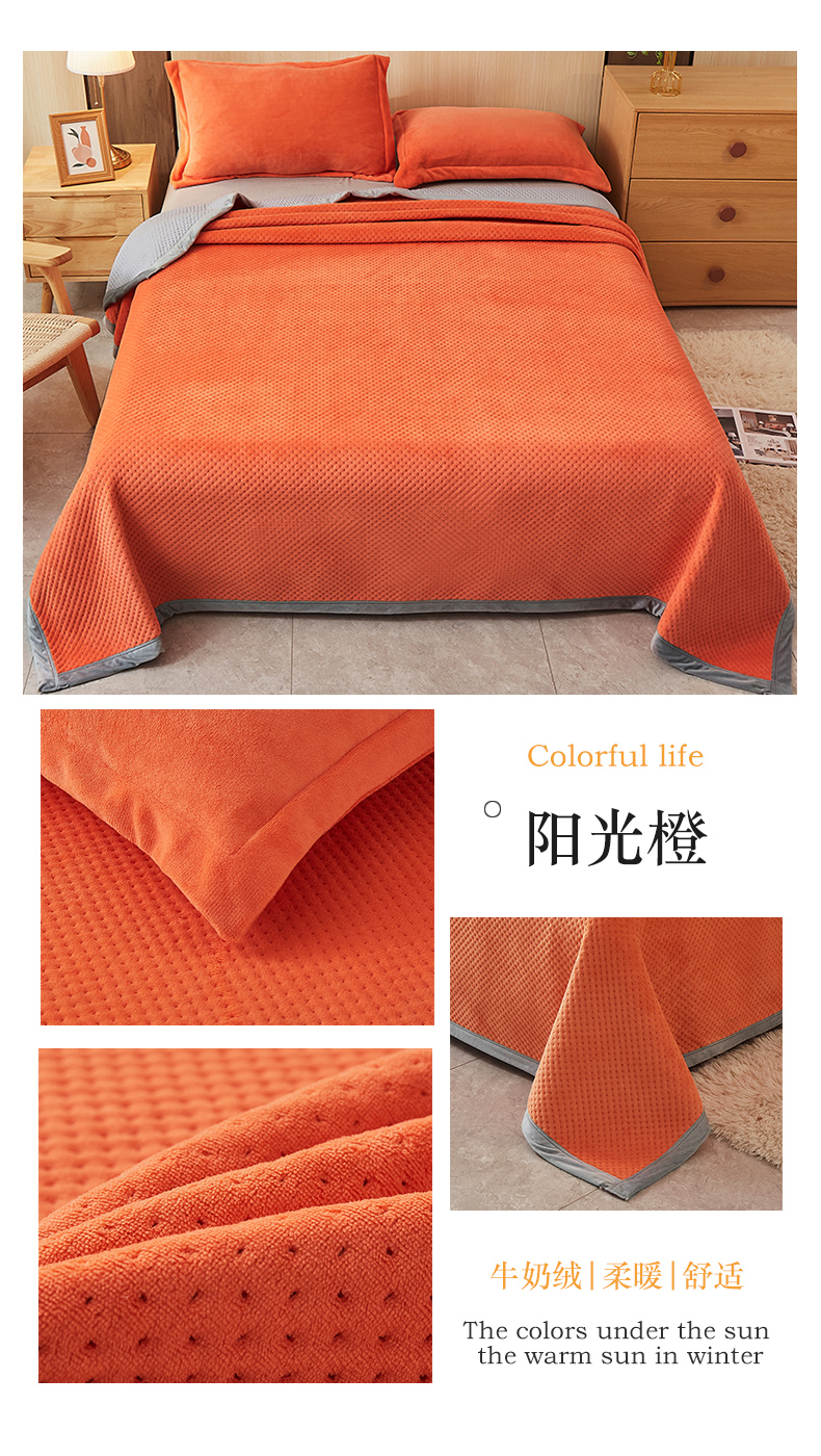• 91家纺网 家纺一手货源 找家纺 胜权 2024款高克重牛奶绒夹棉单床盖单件保暖床盖三件套 阳光橙
