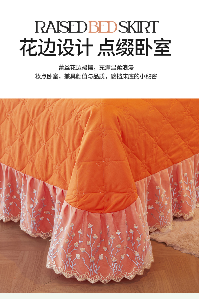 (总)恒爱 2022秋冬水晶绒翩翩花舞夹棉单床裙,大红色,豆沙红,橄榄绿,公主粉,桔色,咖啡色,孔雀绿,拉菲红,罗兰紫,玫红色,美人玉,米白色,米驼色,抹茶绿,浅灰色,紫色