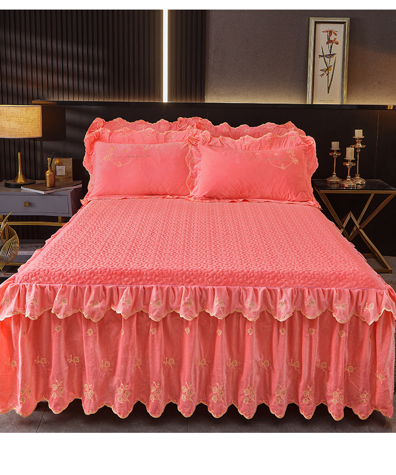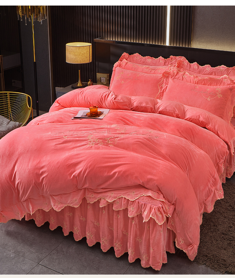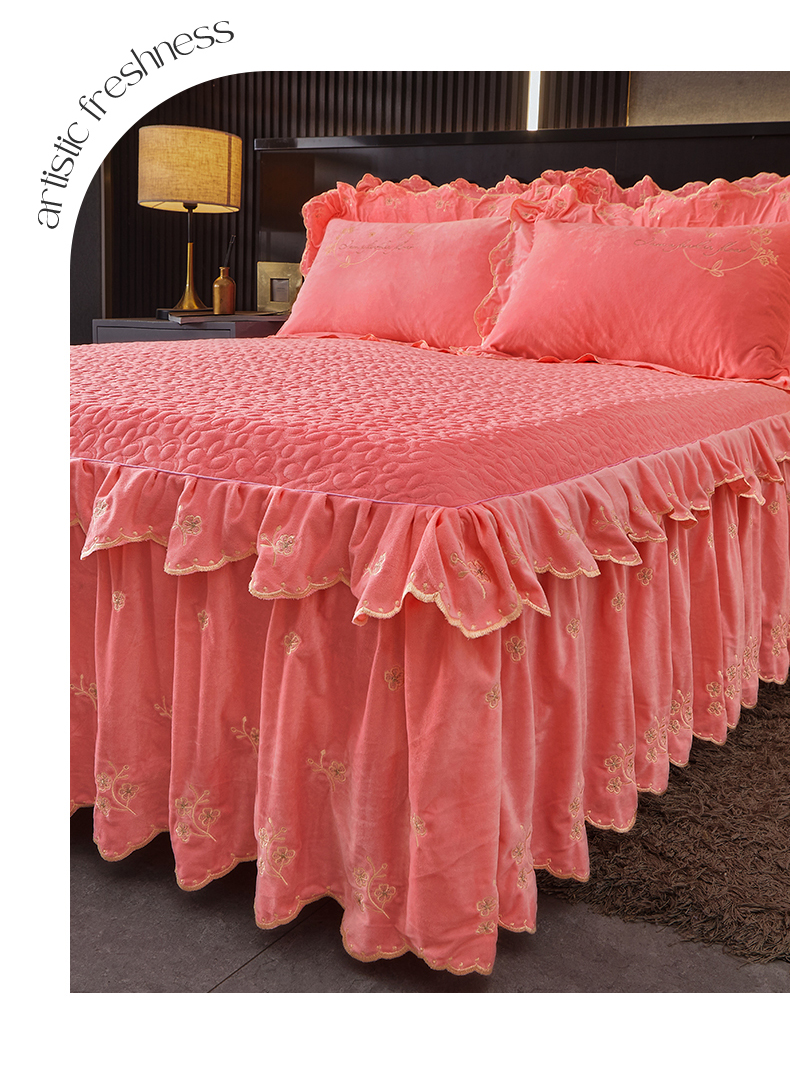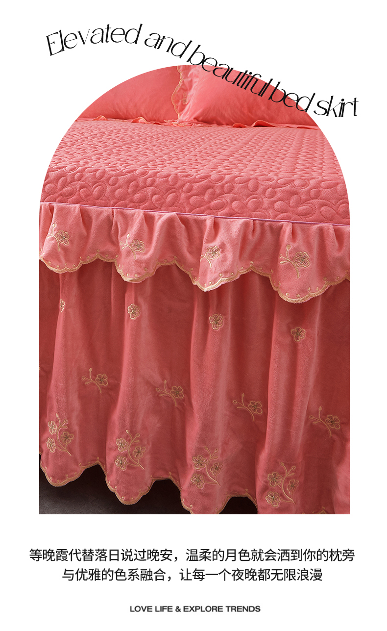 当前位置: 91家纺网 > 商品网购 > 床品套件 > 四件套 > 宝宝绒四件套 > 2023 恒爱家纺 花好月圆宝宝绒床裙四件套 梦想粉