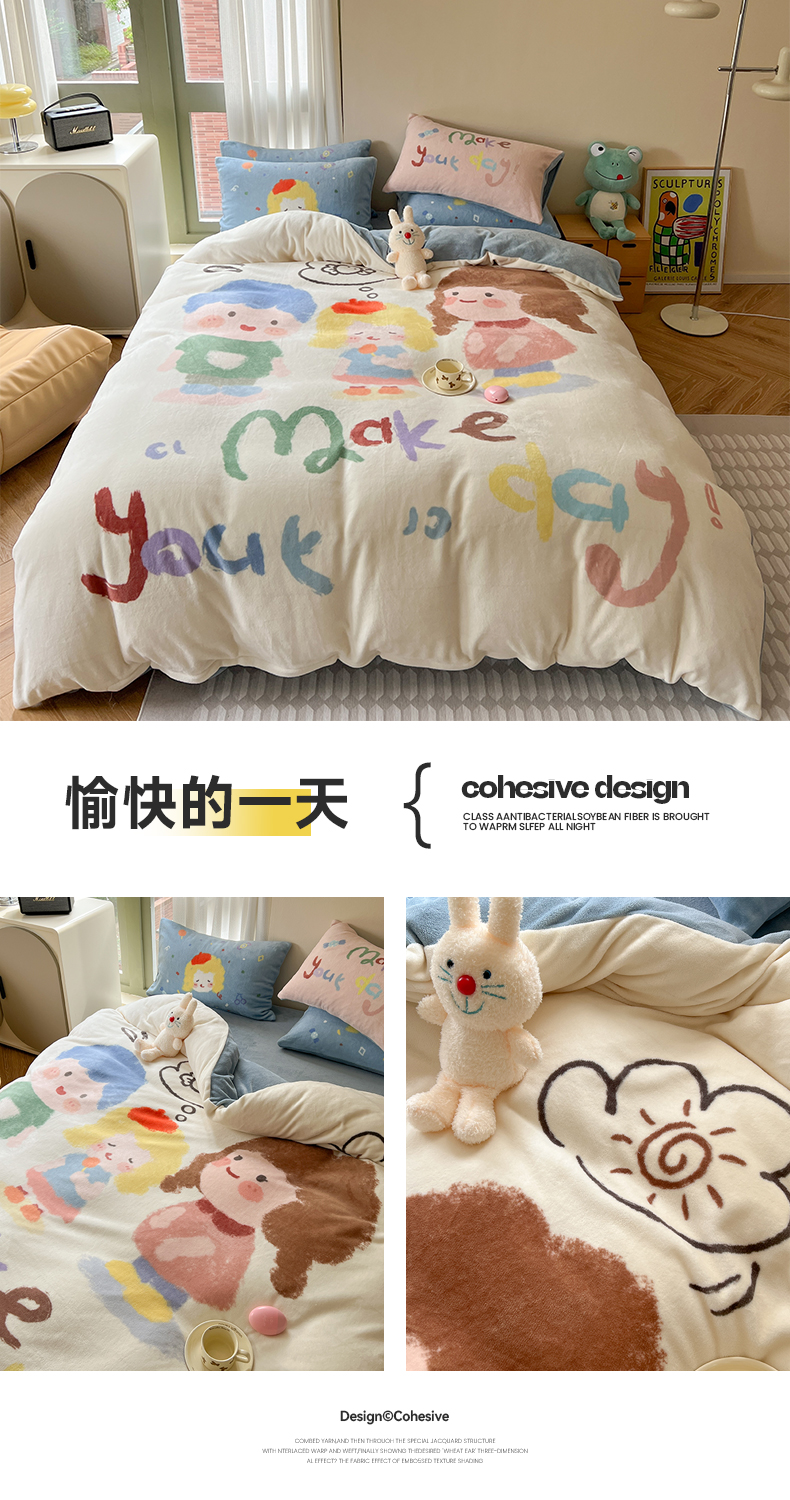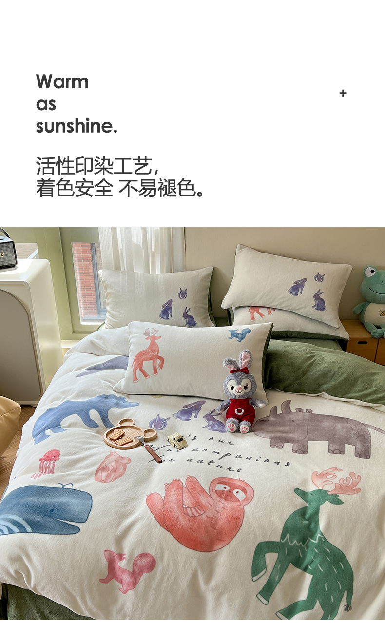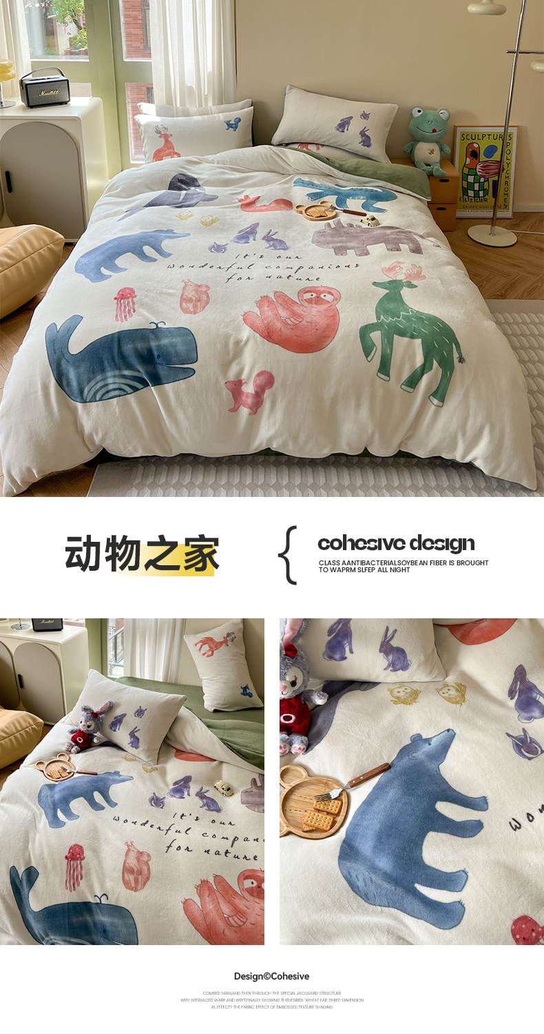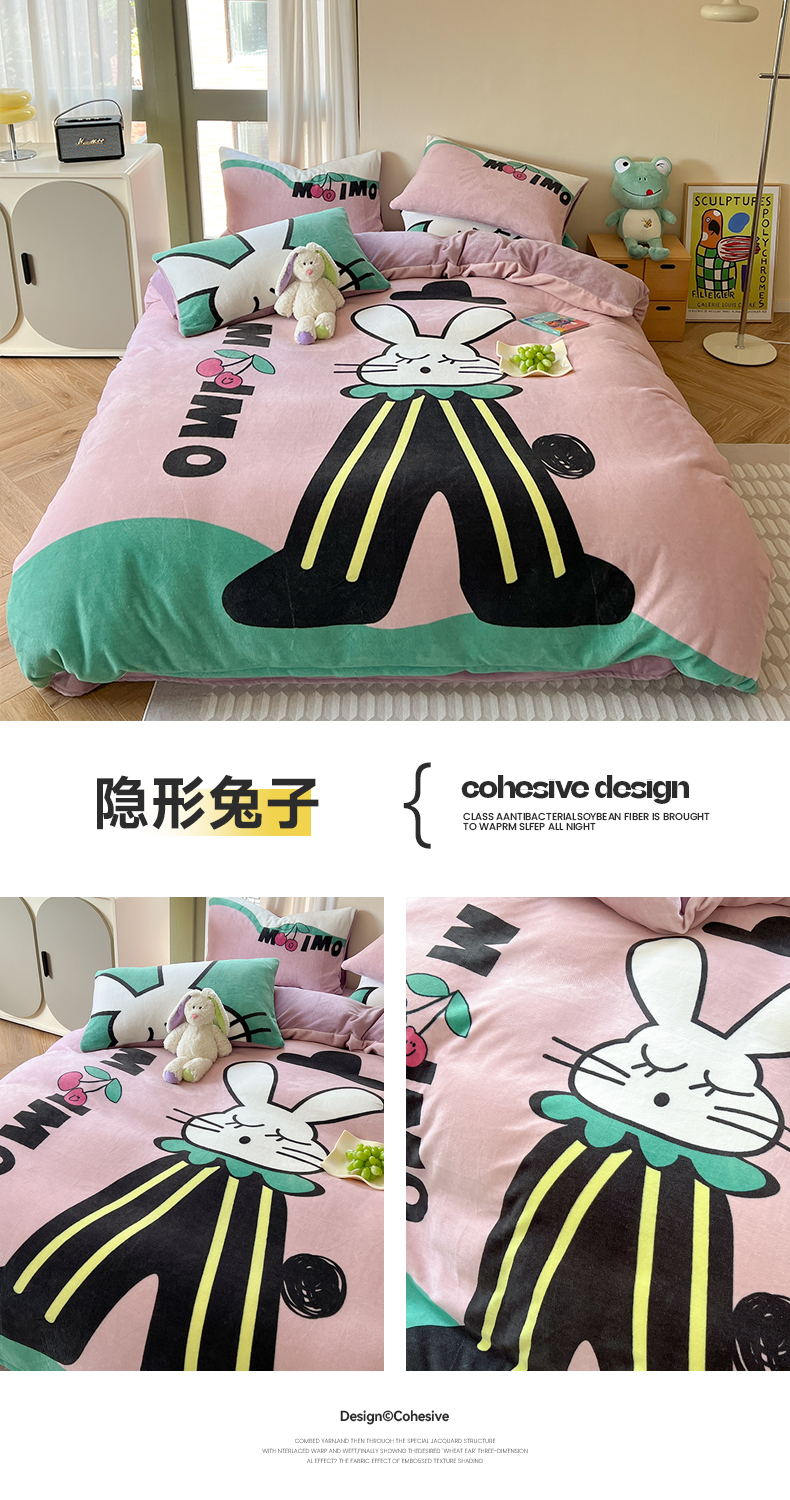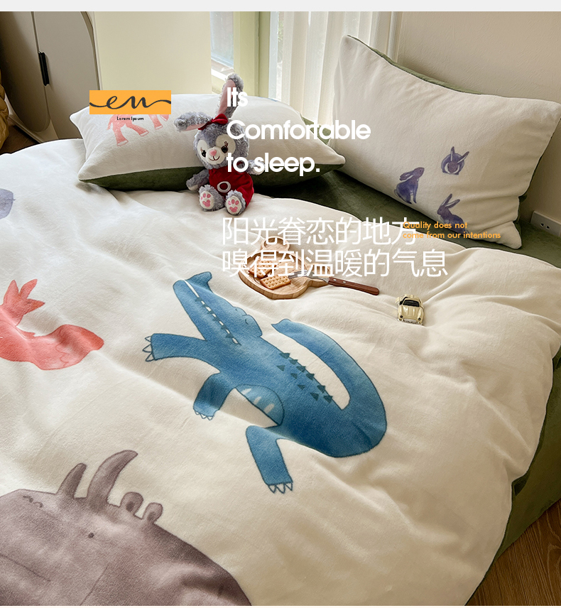 (总)萝莉家纺 2023新款230克高克重软绵绵的泰迪绒四件套,小免蓝,小木马少女粉,小木马水兰,小兔茶粉,小熊奶白,熊豆绿