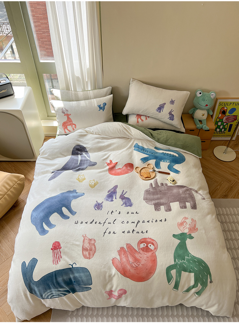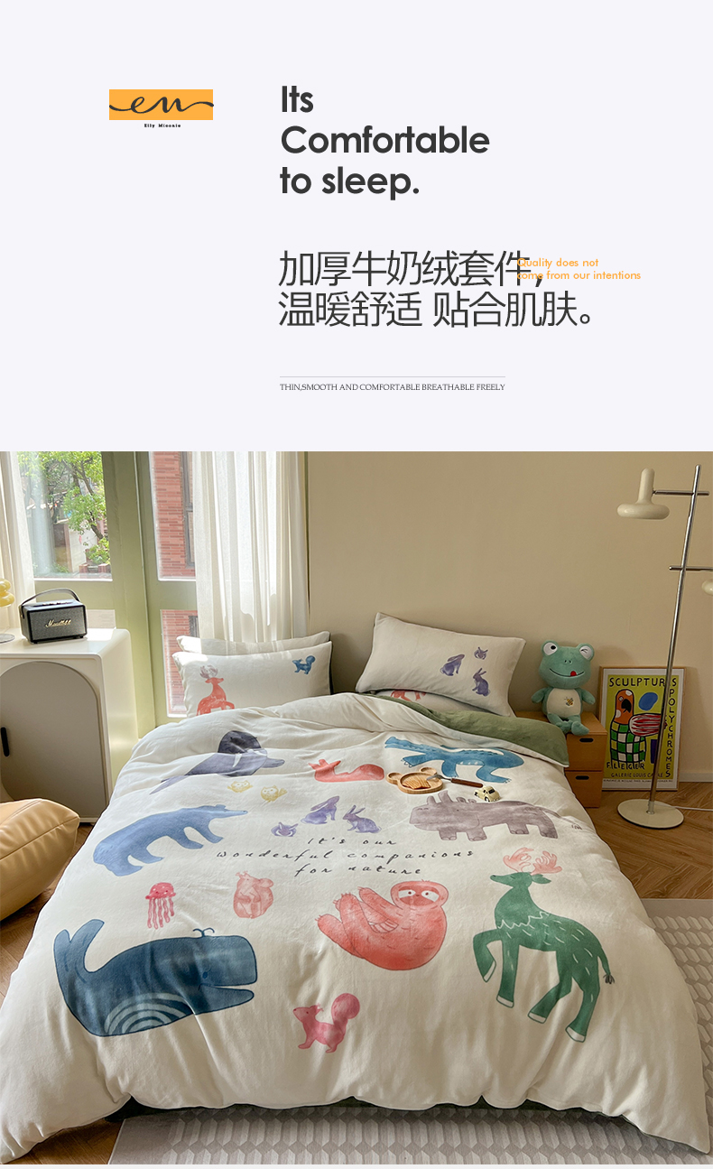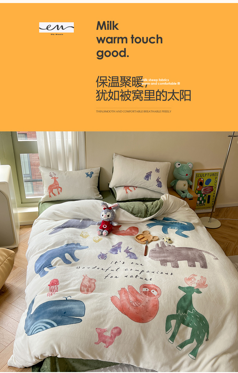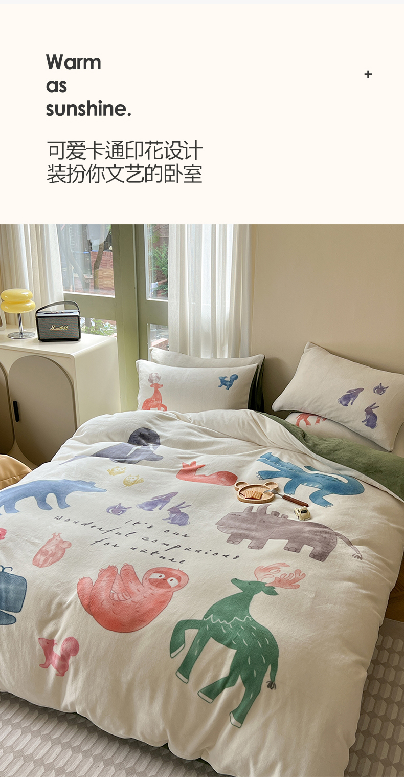 (总)萝莉家纺 2023新款230克高克重软绵绵的泰迪绒四件套,小免蓝,小木马少女粉,小木马水兰,小兔茶粉,小熊奶白,熊豆绿