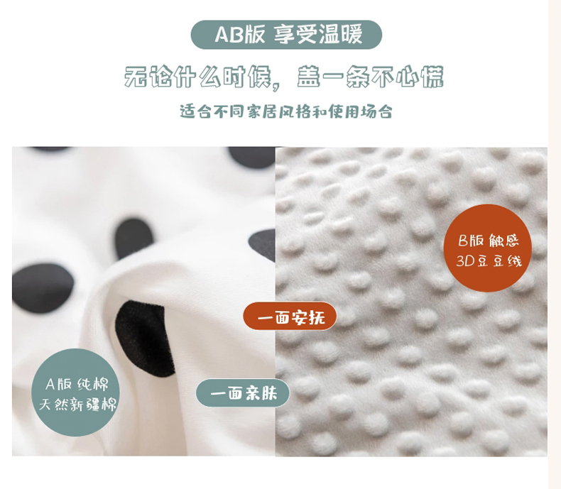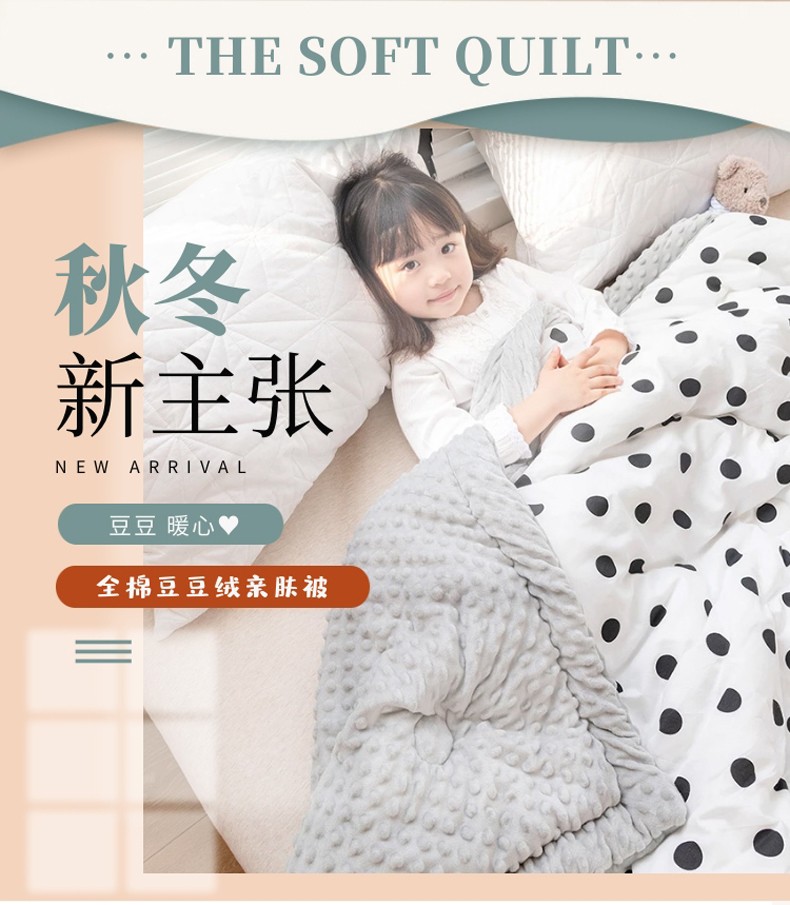 商品名称:十九色 2024新款双人全棉夹棉安抚豆豆毯豆豆被 波点
