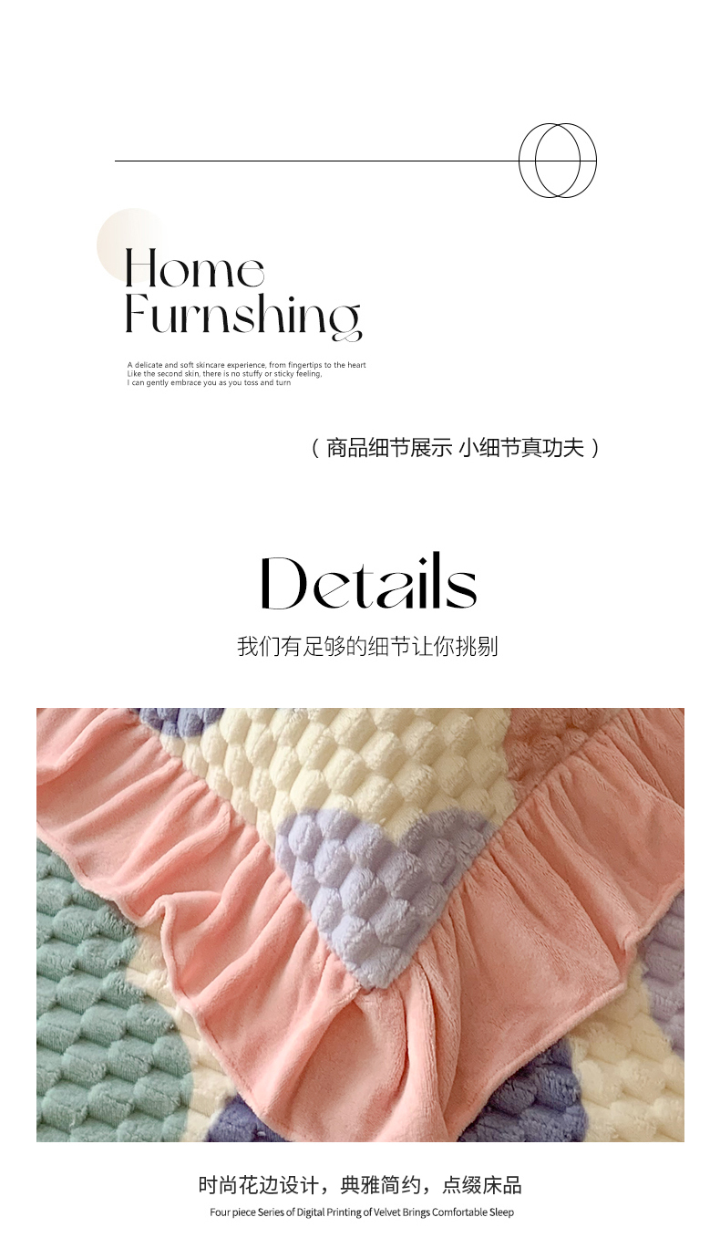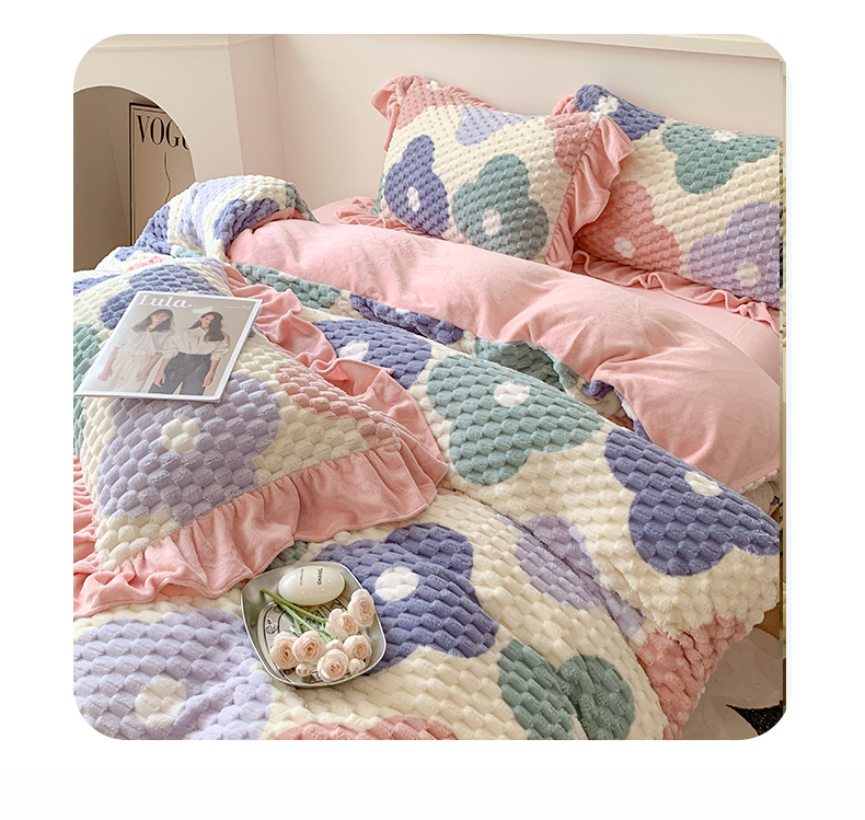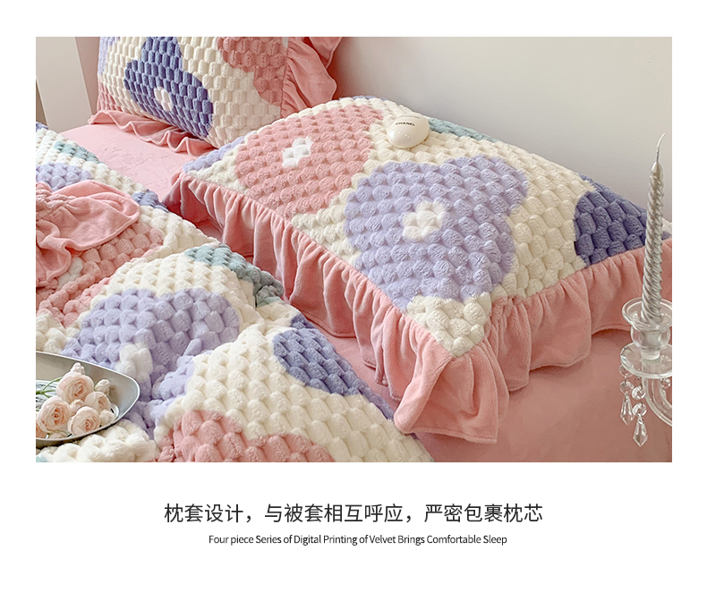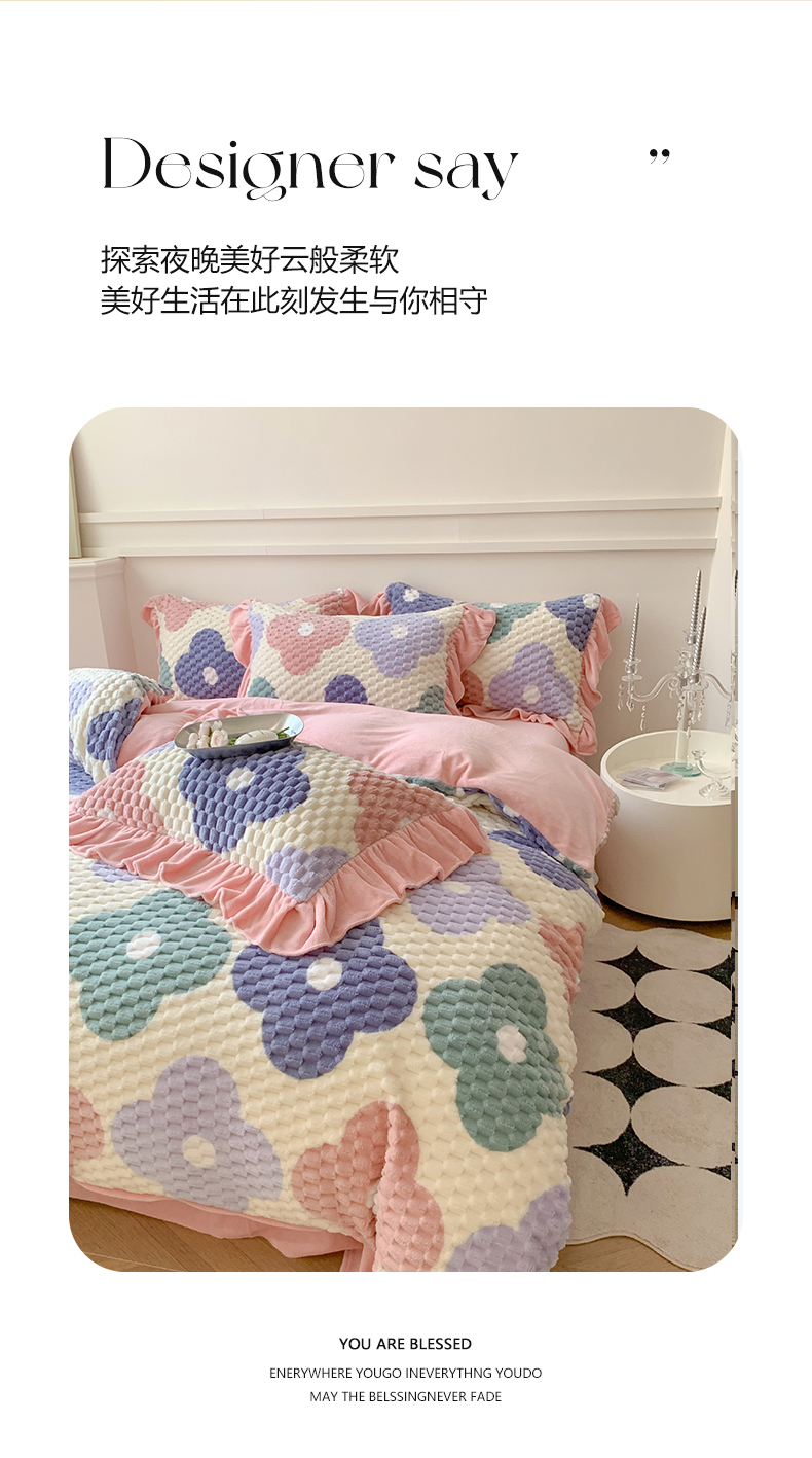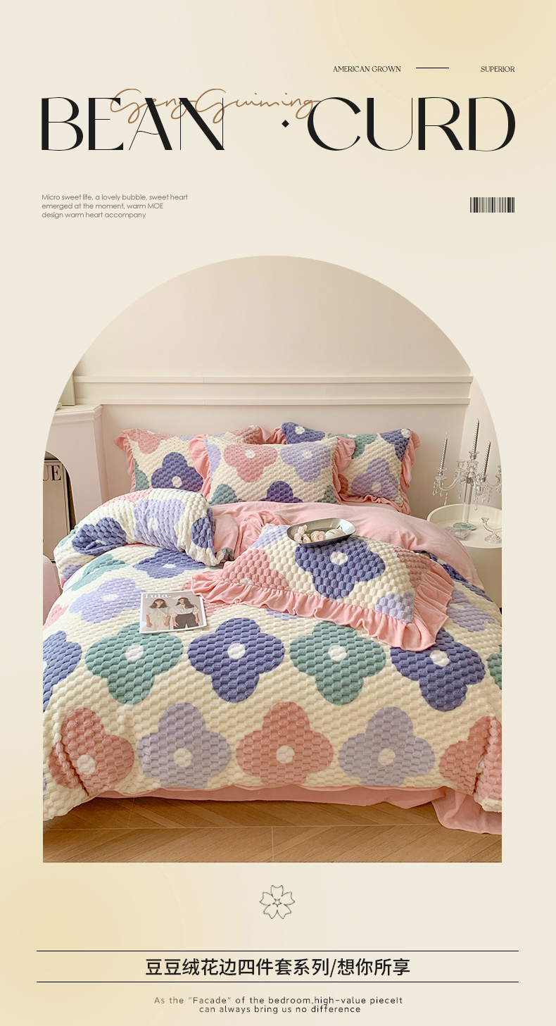 商品名称:潘朵拉 2023年新款豆豆绒花边牛奶绒四件套 花城