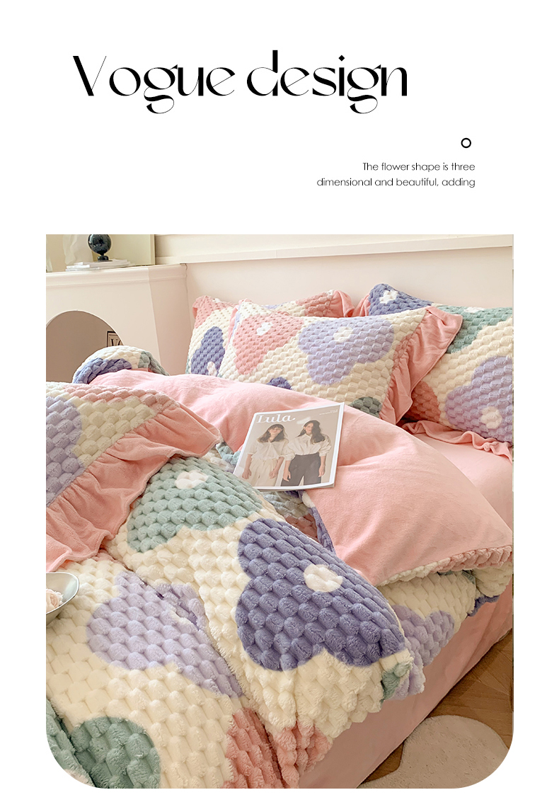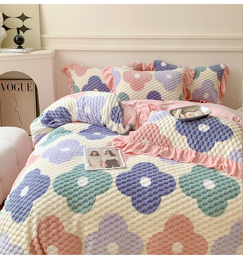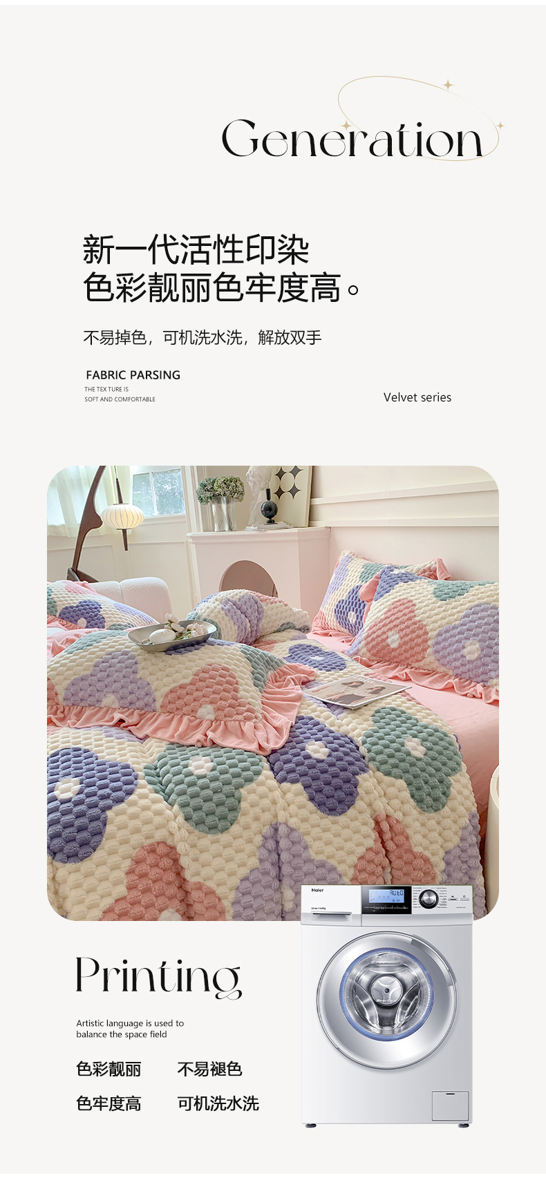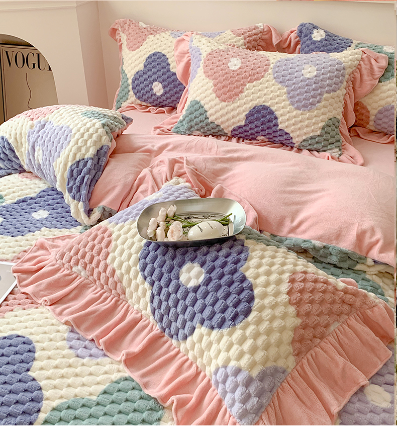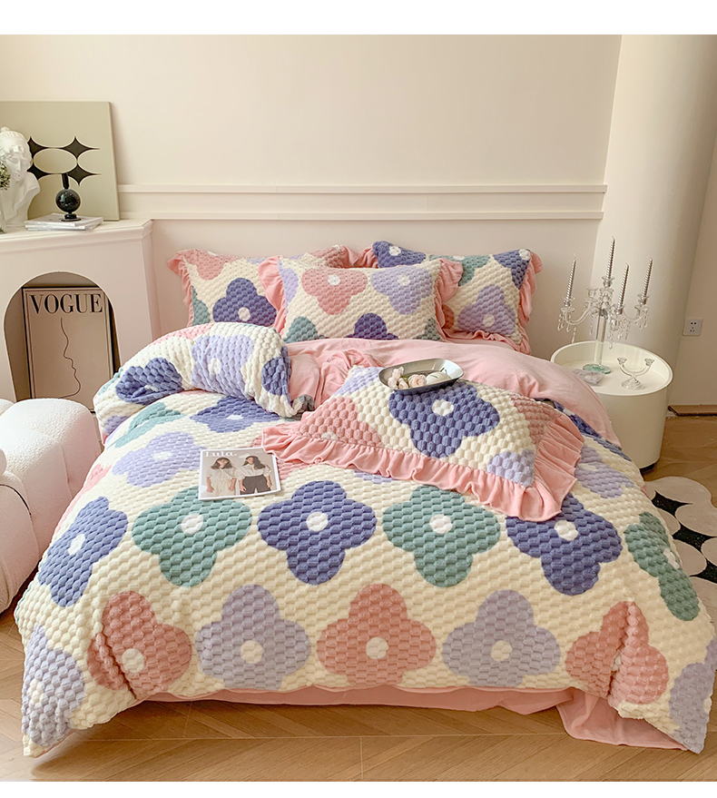 商品名称:潘朵拉 2023年新款豆豆绒花边牛奶绒四件套 花城