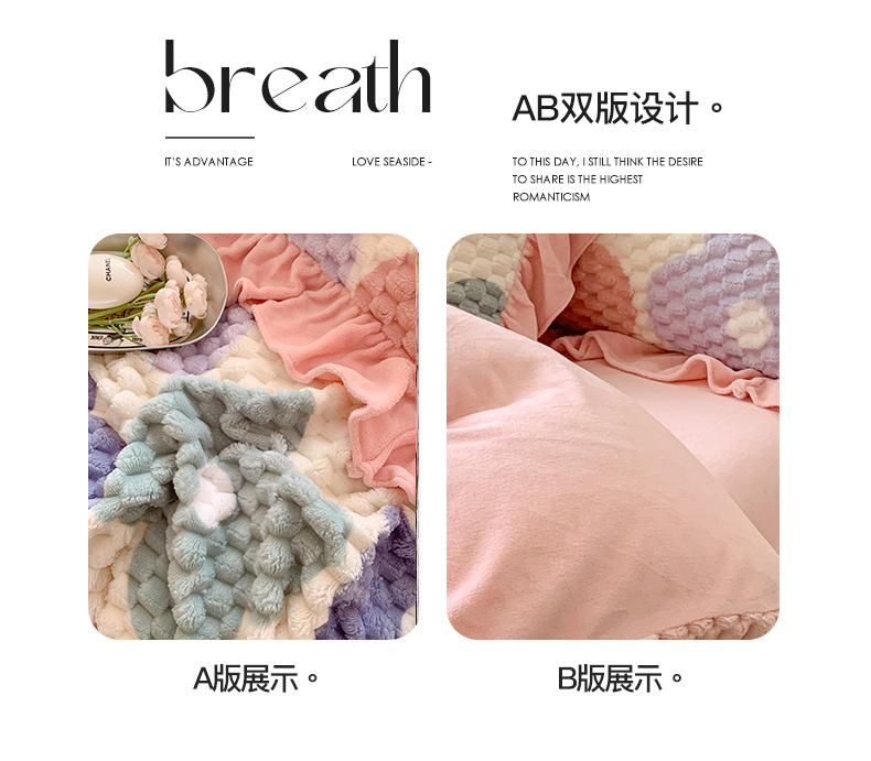(总)潘朵拉 2023年新款豆豆绒花边牛奶绒四件套,仙芽,兰溪,半眠,向晚,小奶兔,樱桃丸子,粉萝,紫烟,花城,薄荷味,青雅
