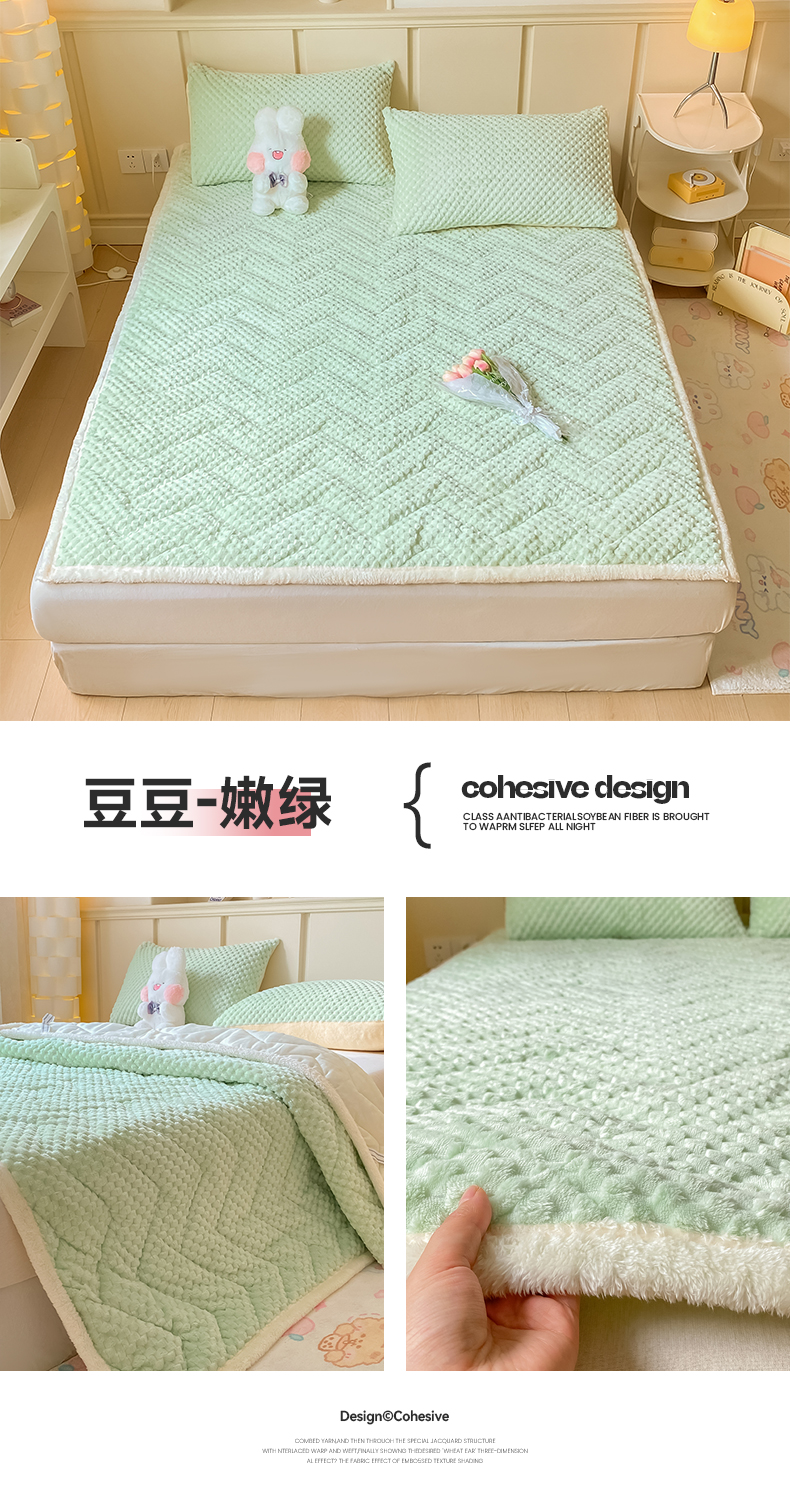 澳梵家居 2023新款豆豆绒夹棉床护垫 豆豆-嫩绿