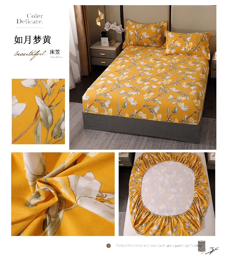 商品名称:晶缦 2023新款格林系列全棉活性磨毛多规格床笠 如月梦黄