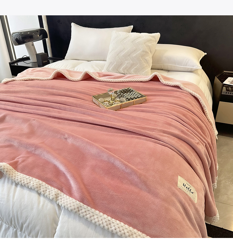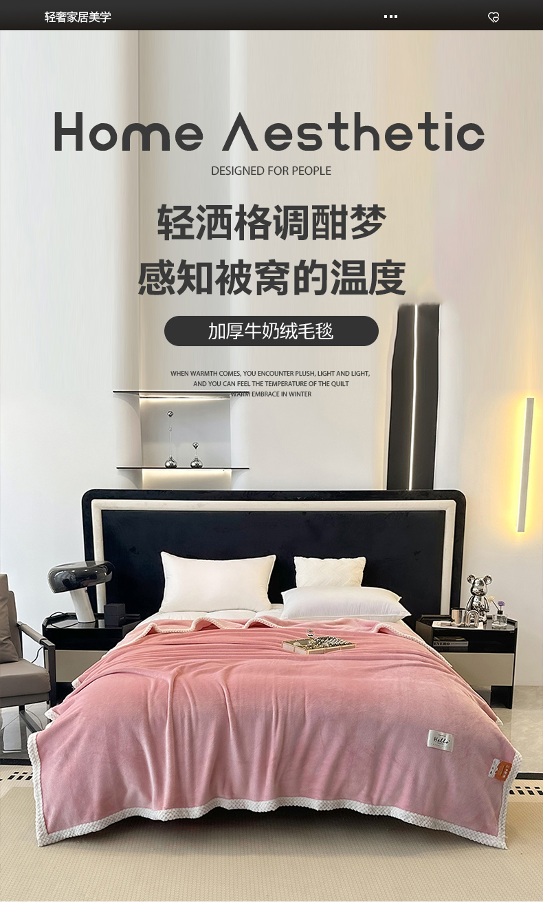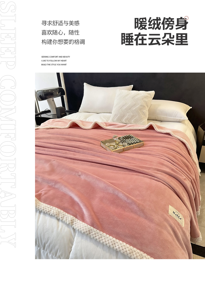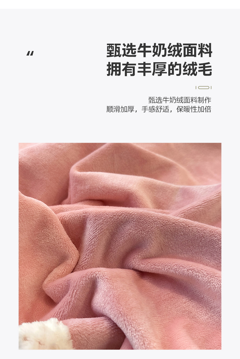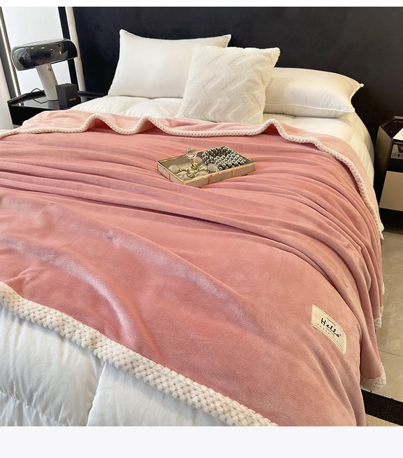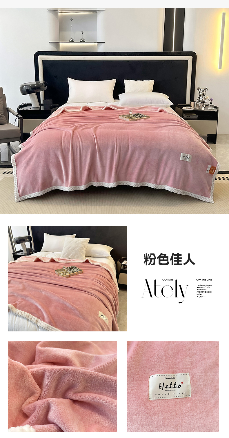 商品名称:2023新款400g高克重纯色双面牛奶绒毛毯盖毯毯子 粉色佳人