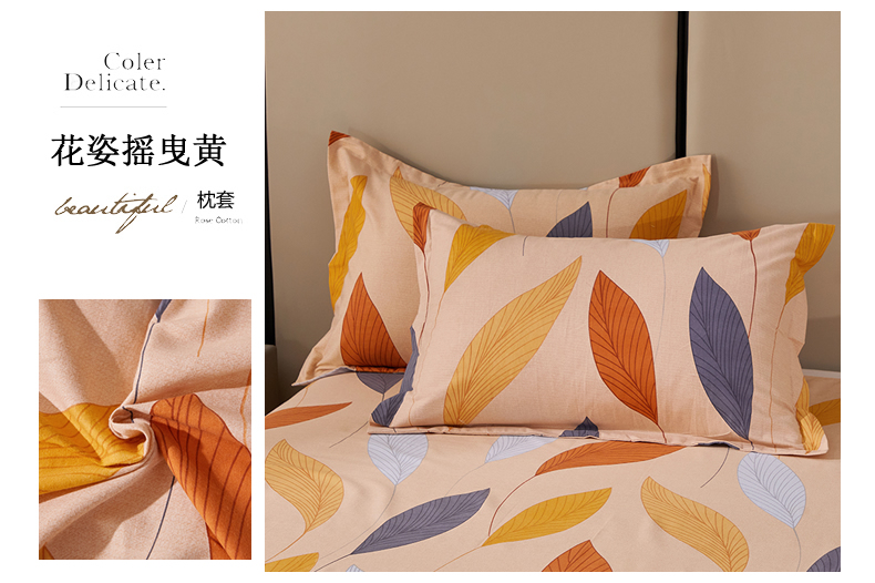 商品名称:晶缦 2023新款格林系列全棉活性磨毛枕套 花姿摇曳黄
