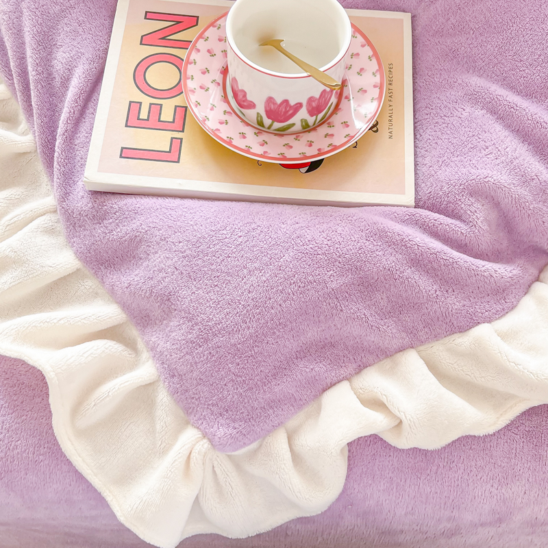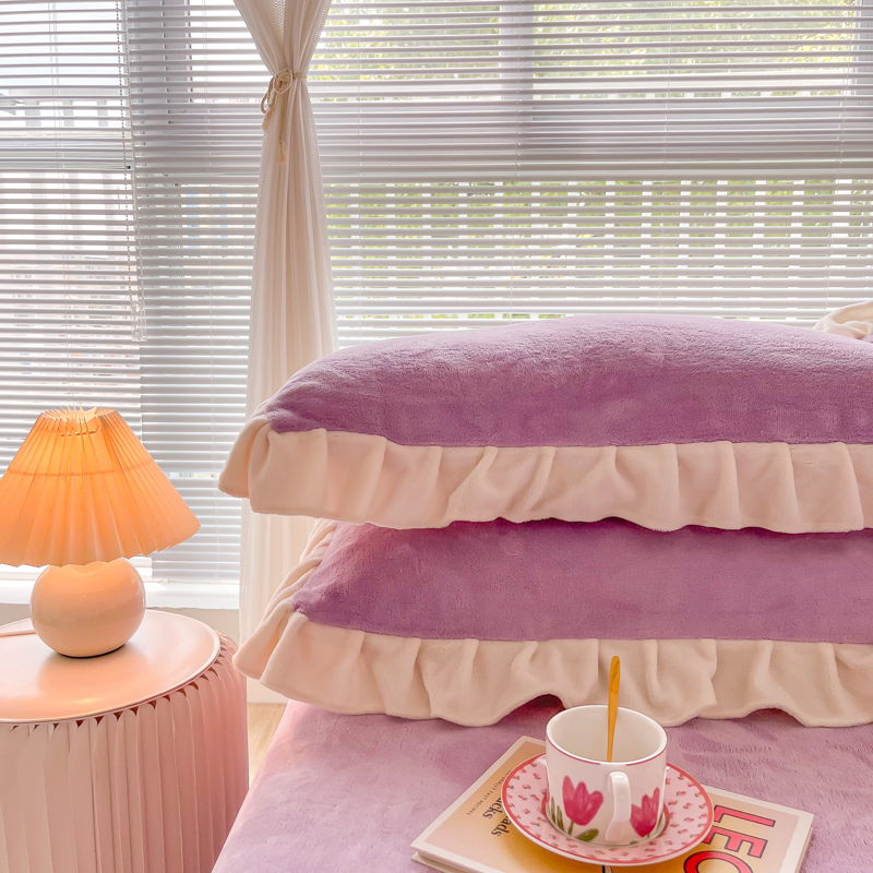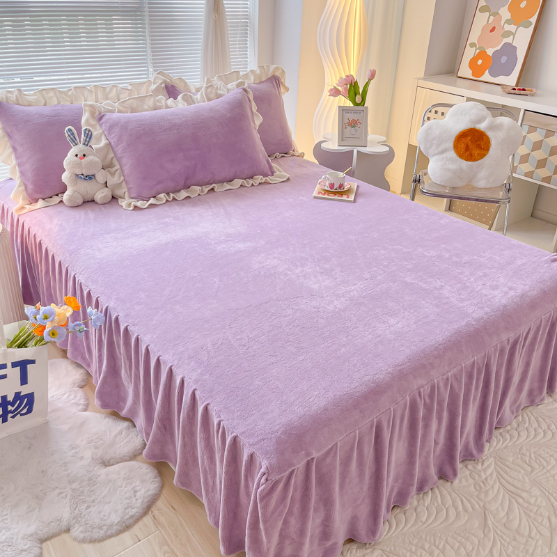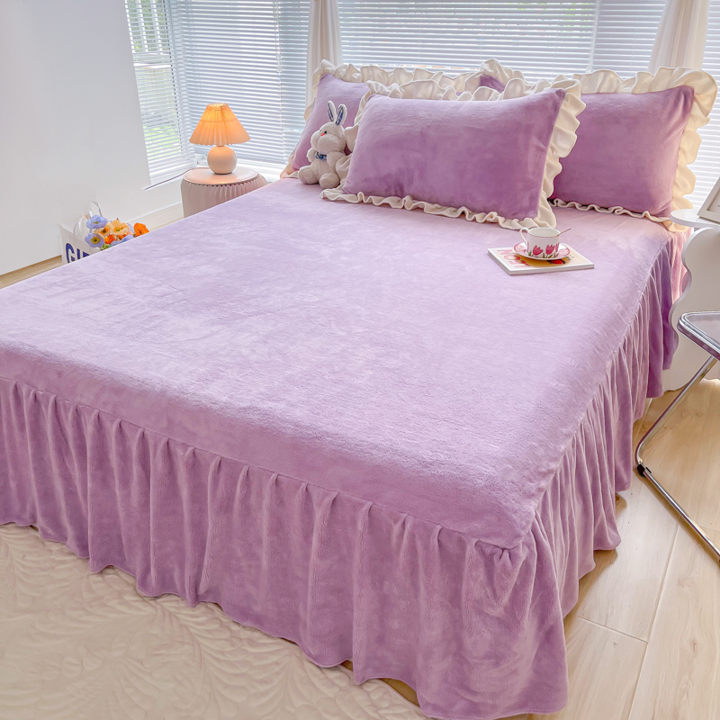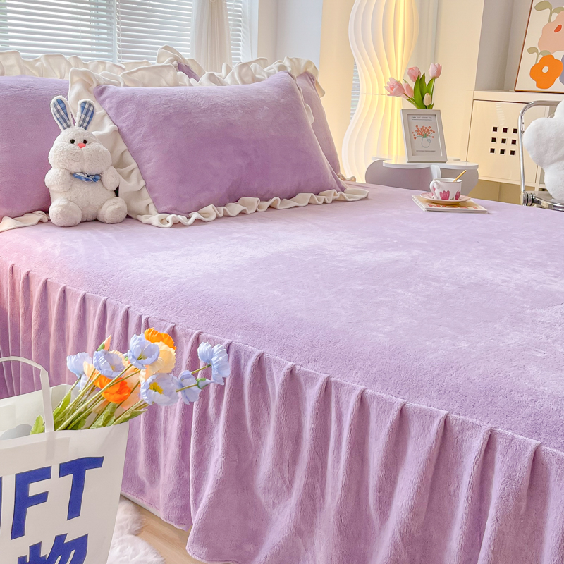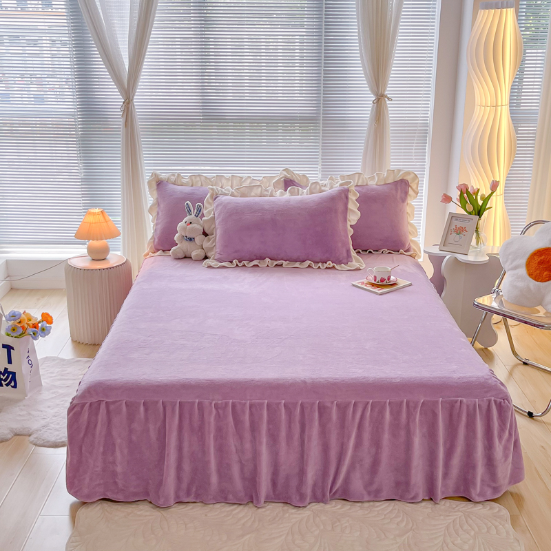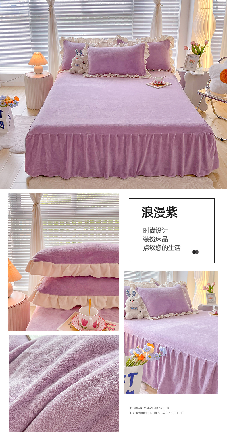 商品名称:十里居 2023新款纯色韩版花边牛奶绒单床裙三件套 浪漫紫