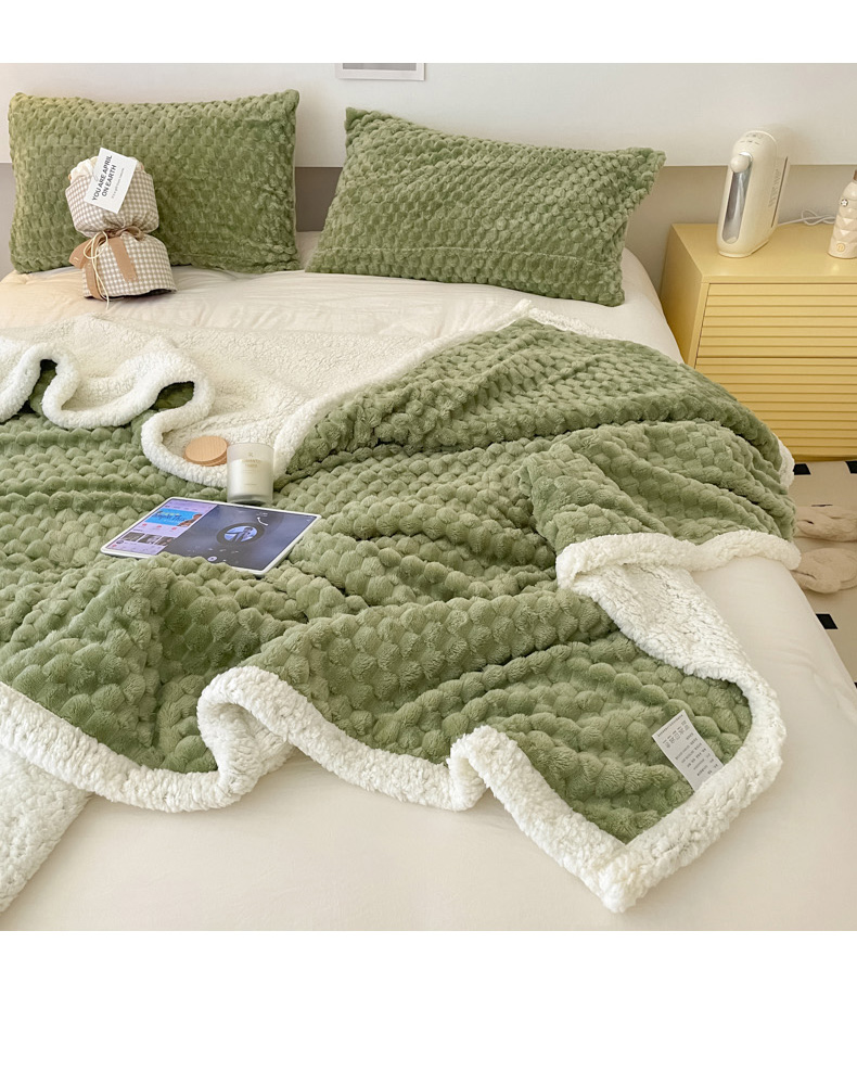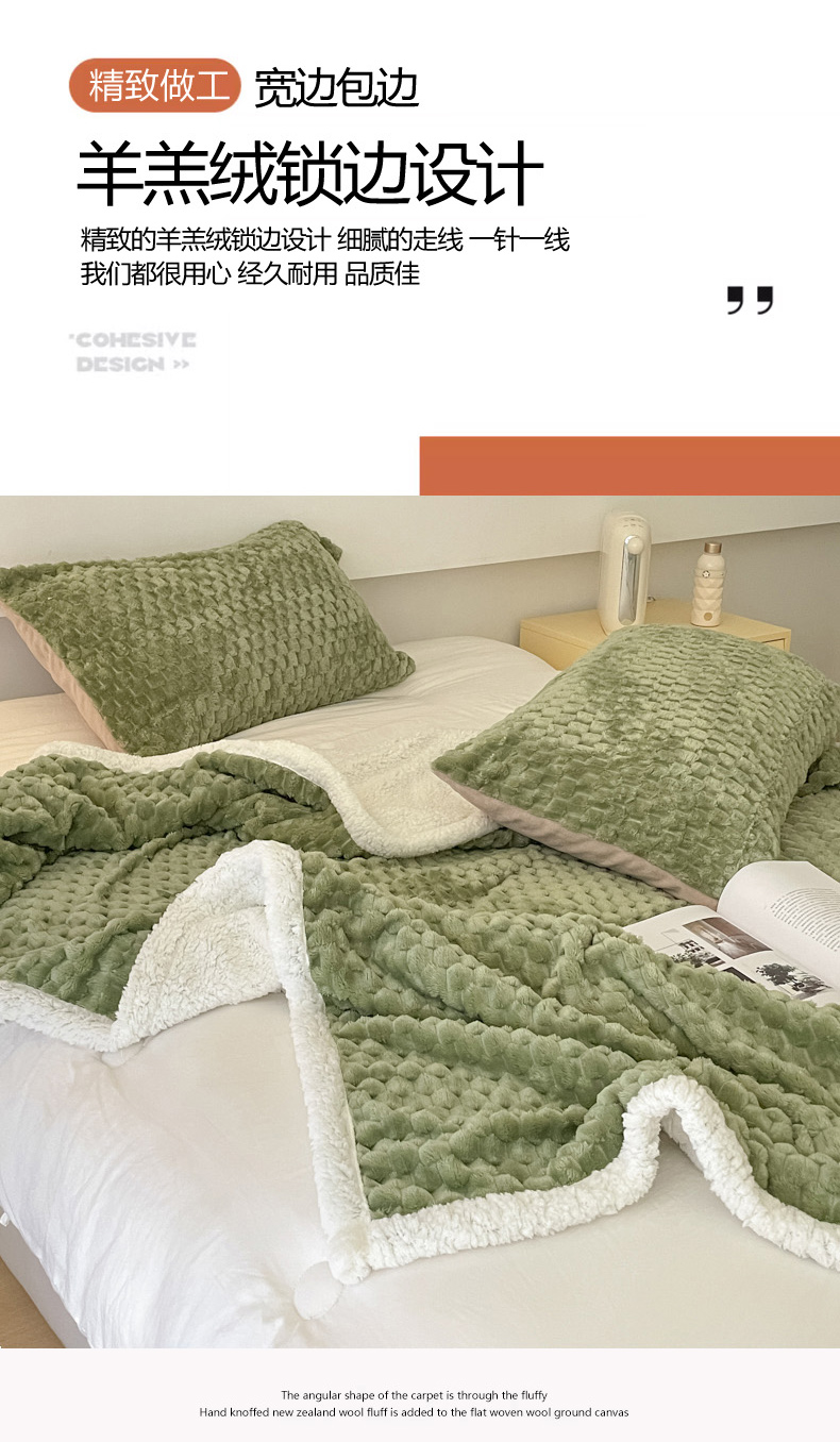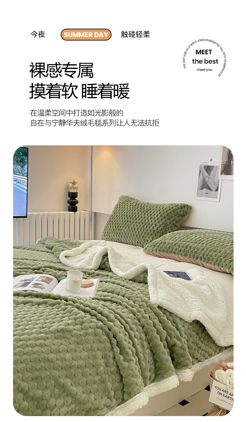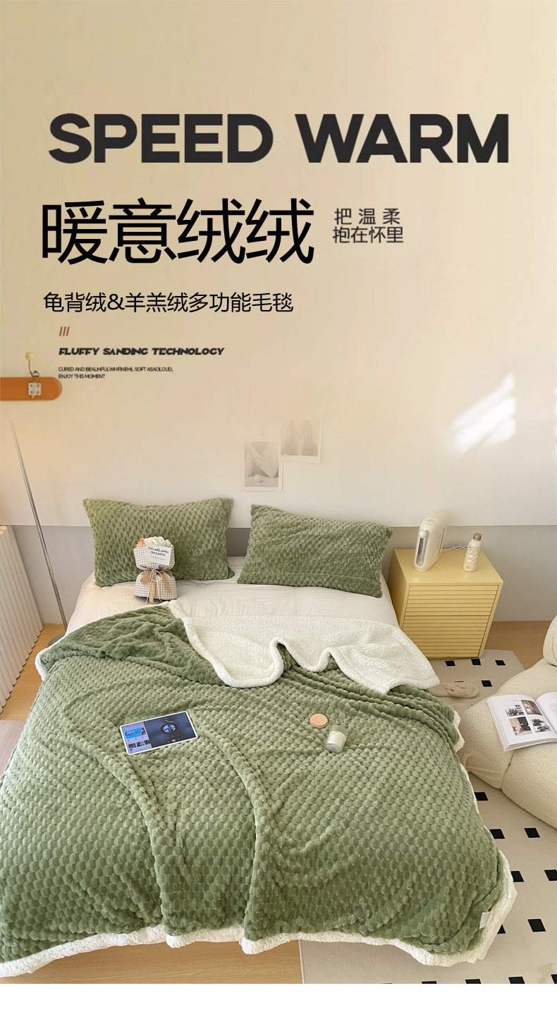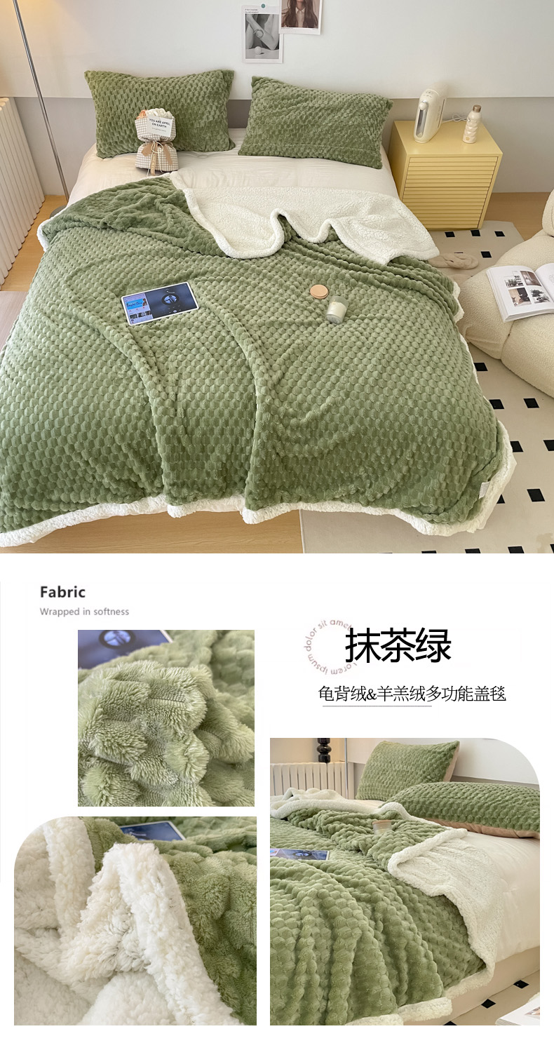 商品名称:沐慕 2023新款纯色简约龟背绒拼羊羔绒毛毯 抹茶绿