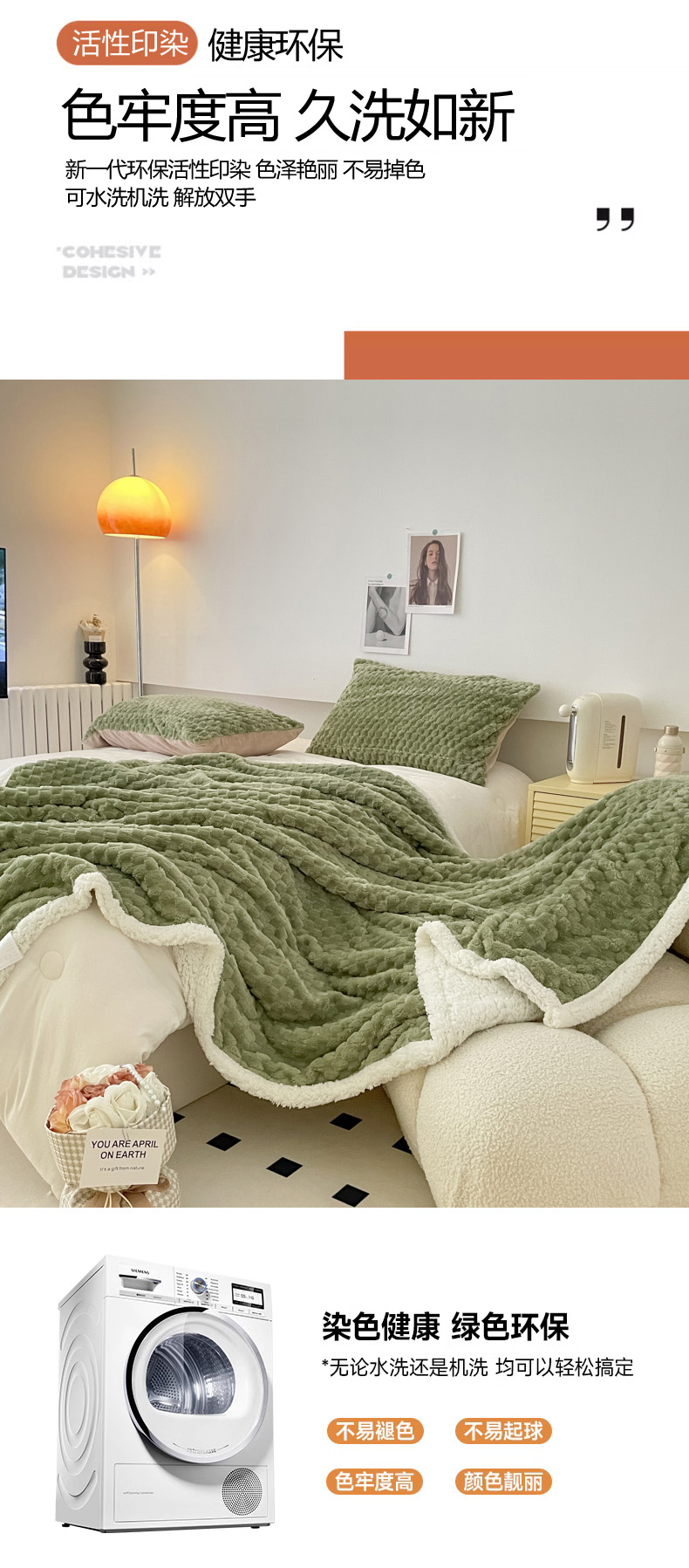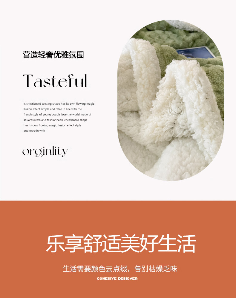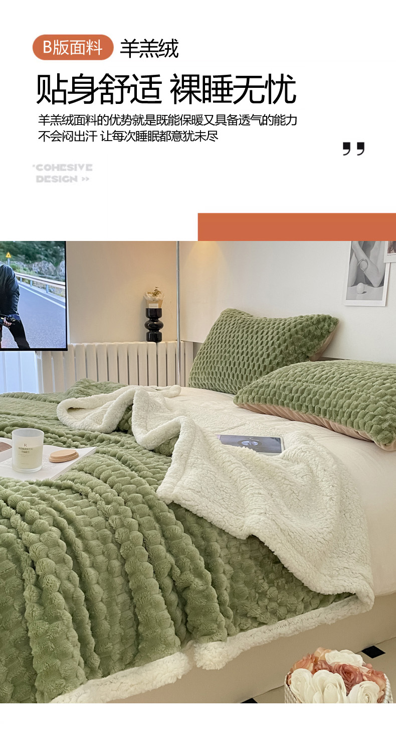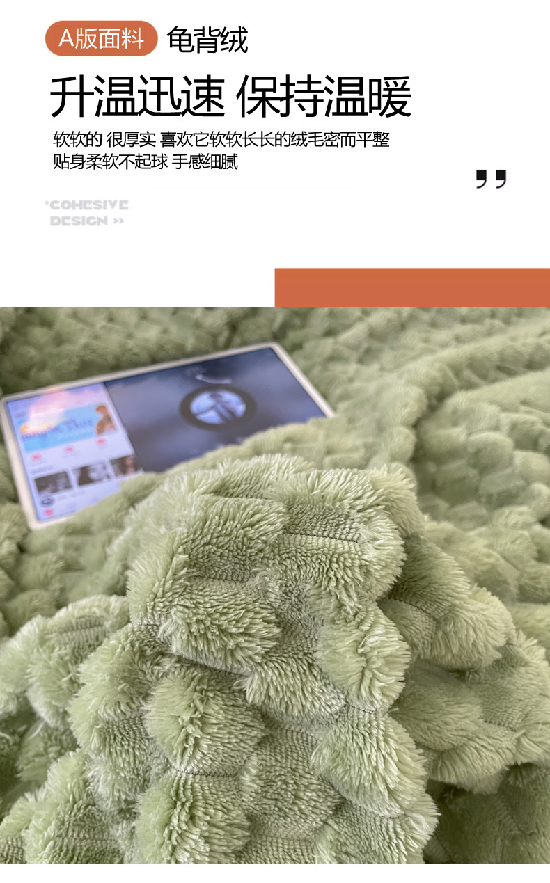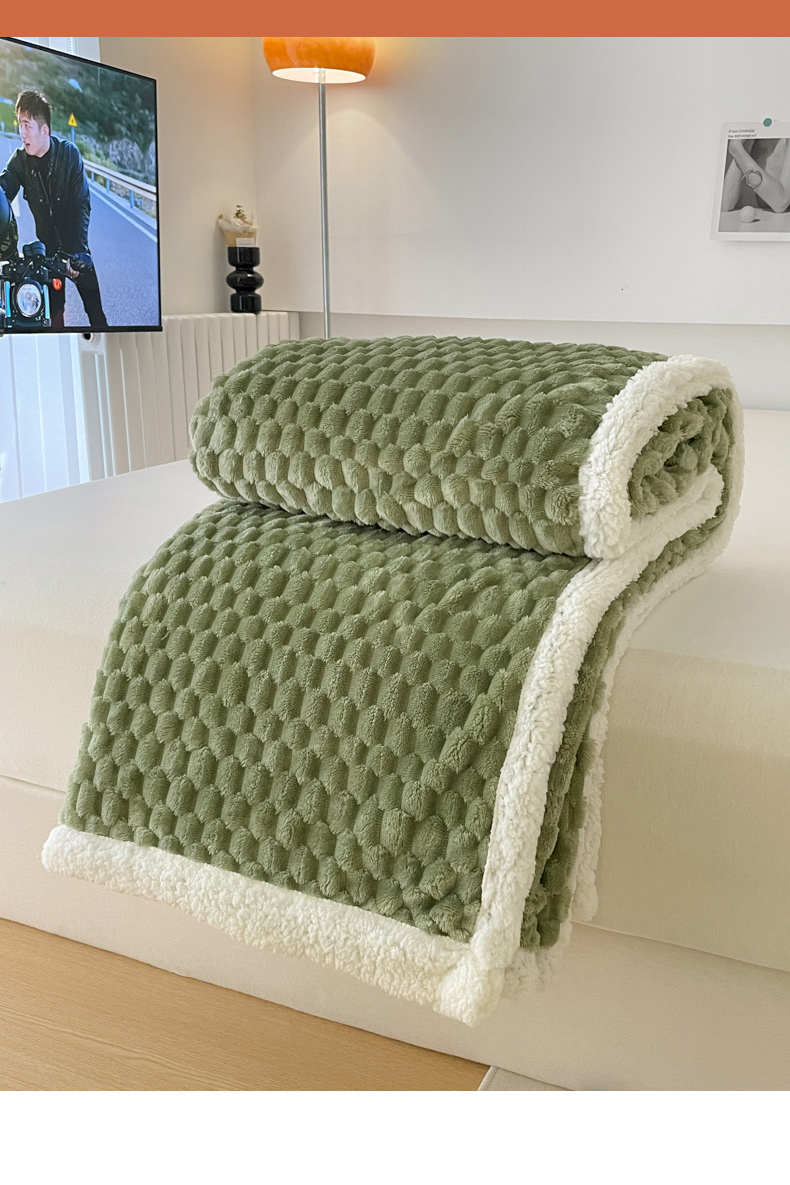 商品名称:沐慕 2023新款纯色简约龟背绒拼羊羔绒毛毯 抹茶绿
