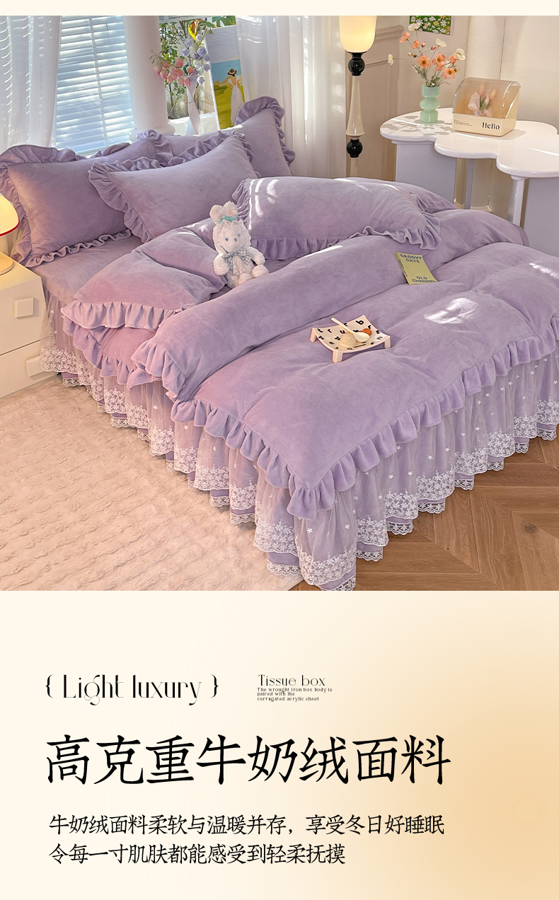 【8斤重】2025新款秋冬加厚牛奶绒床裙款四件套法式浪漫蕾丝花边工艺-遇见系列 遇见-浪漫紫