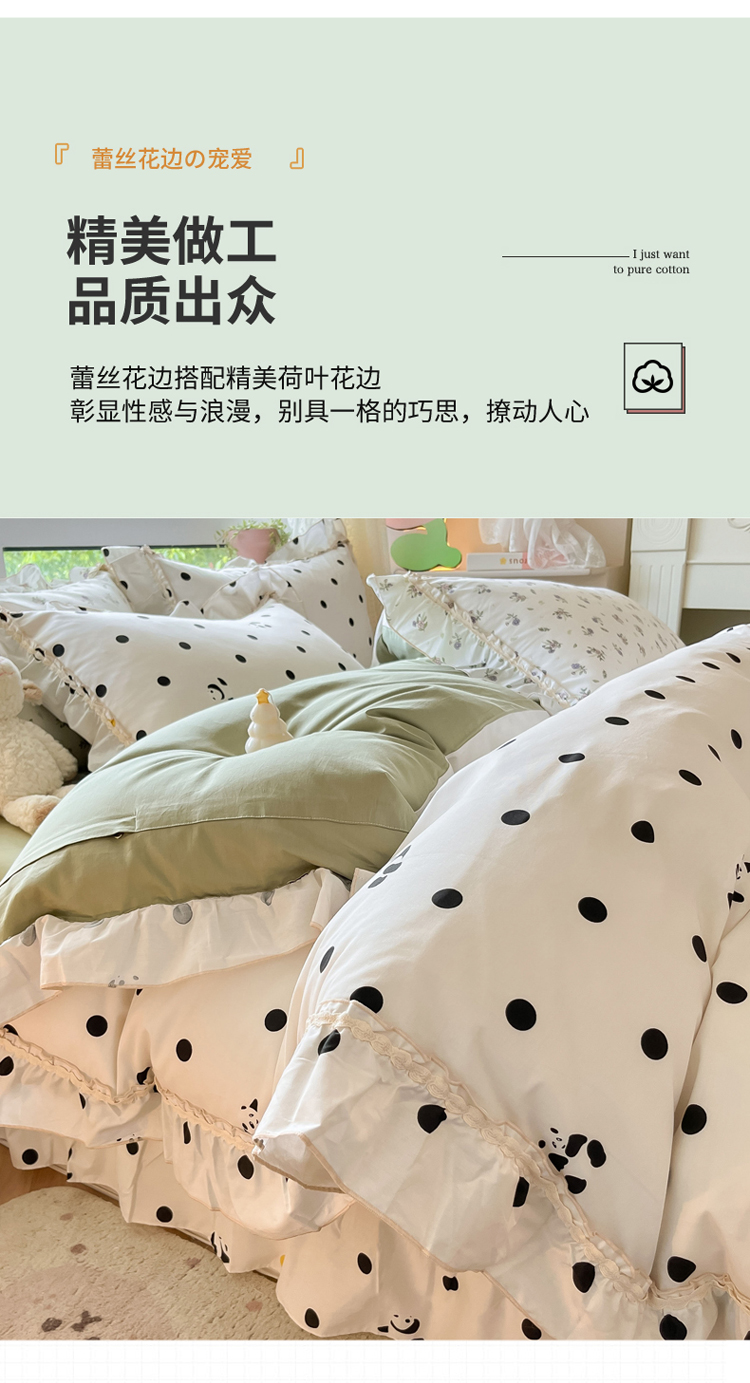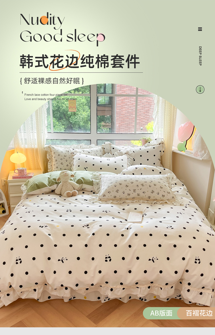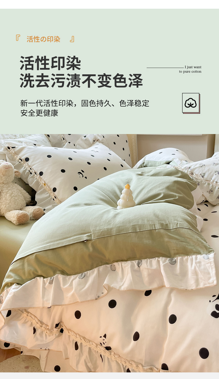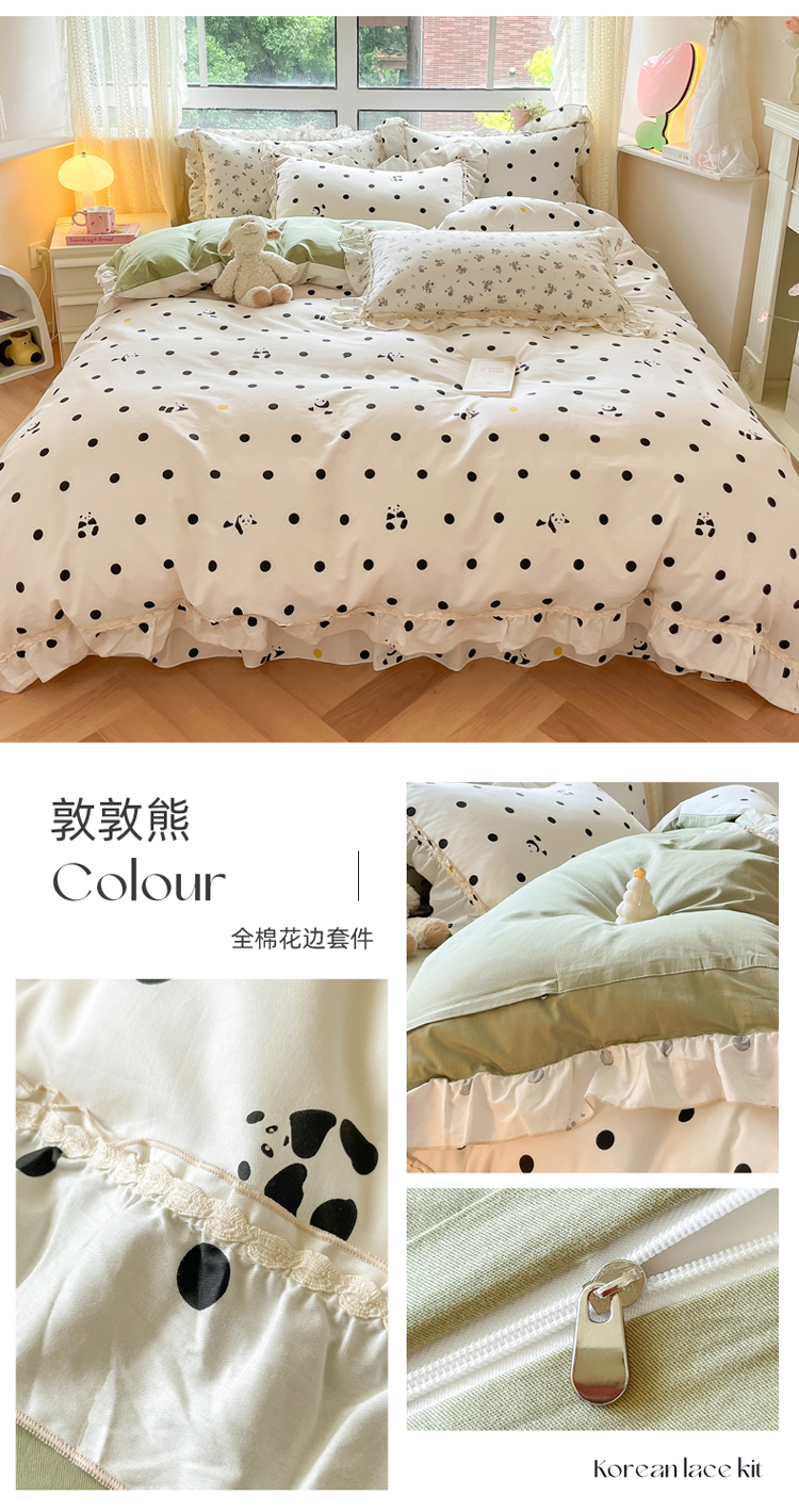 商品名称:艾唯希家纺 2024新款全棉韩式花边四件套纯棉公主风田园系列 敦敦熊
