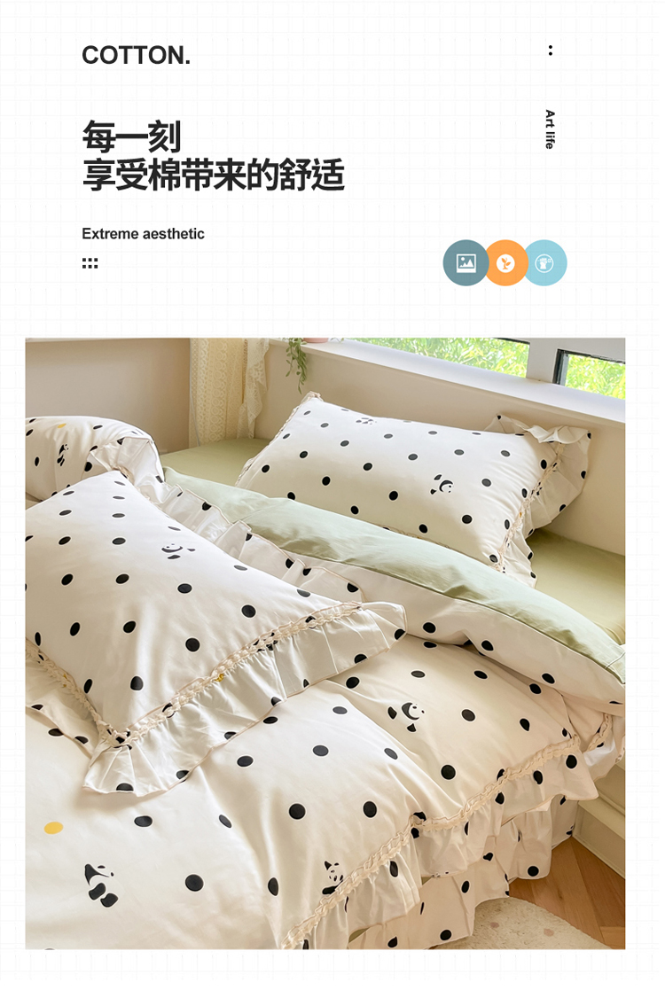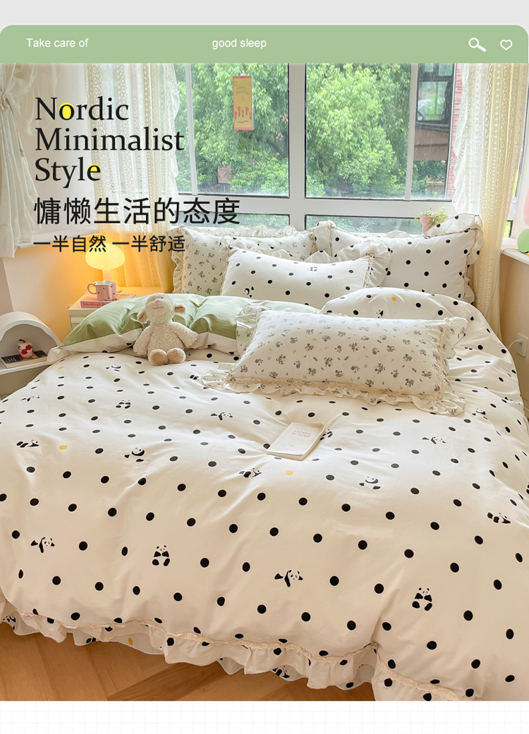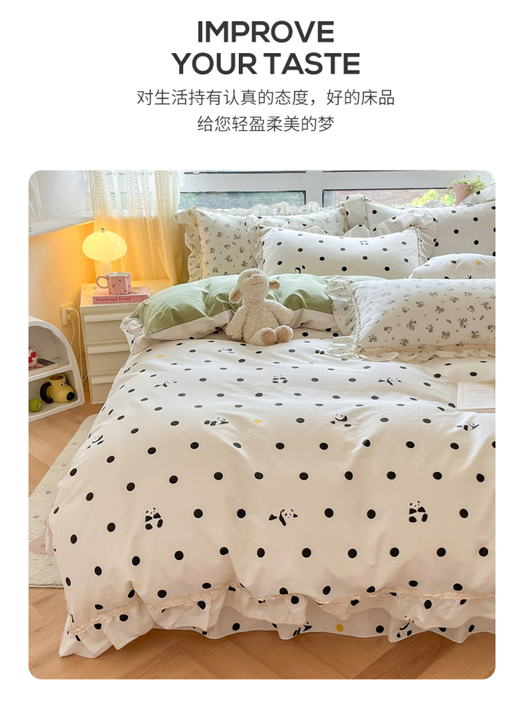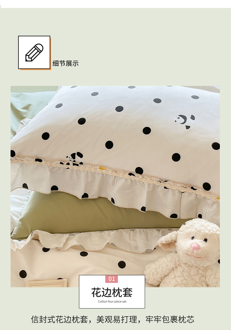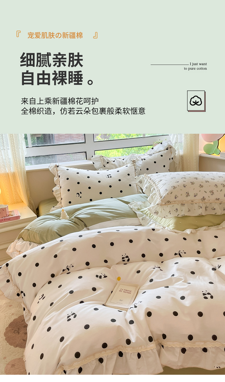 商品名称:艾唯希家纺 2024新款全棉韩式花边四件套纯棉公主风田园系列 敦敦熊
