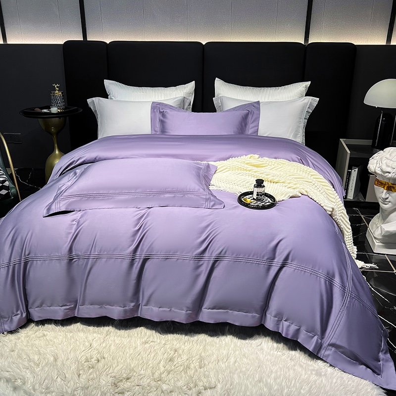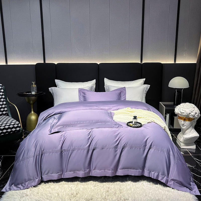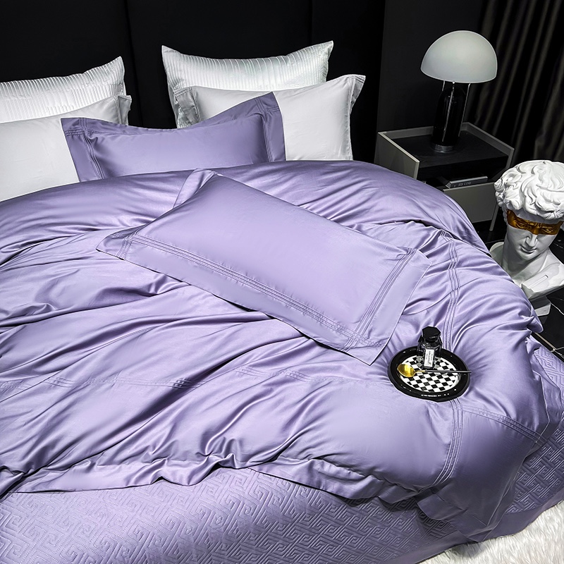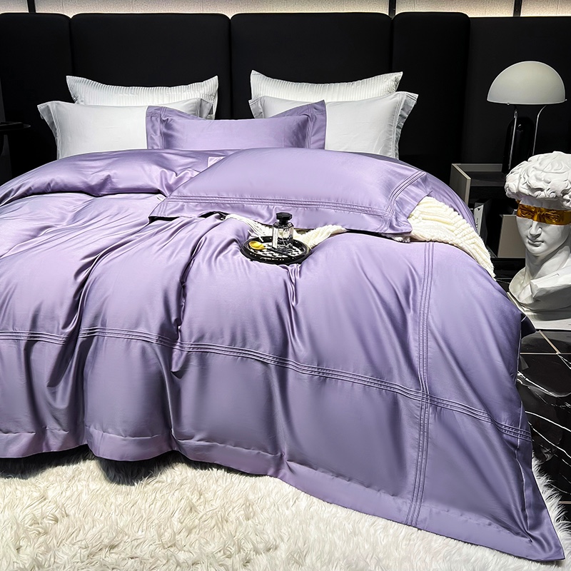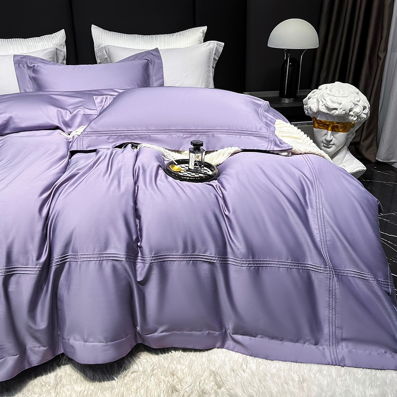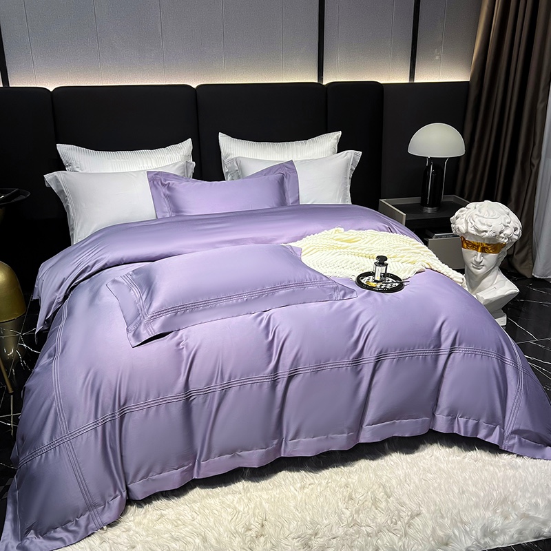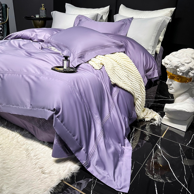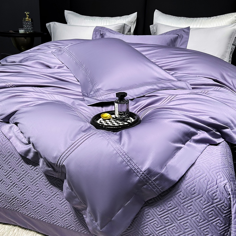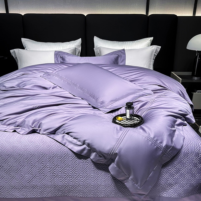 淼铭2025新款A类长绒棉床盖四件套 紫罗兰