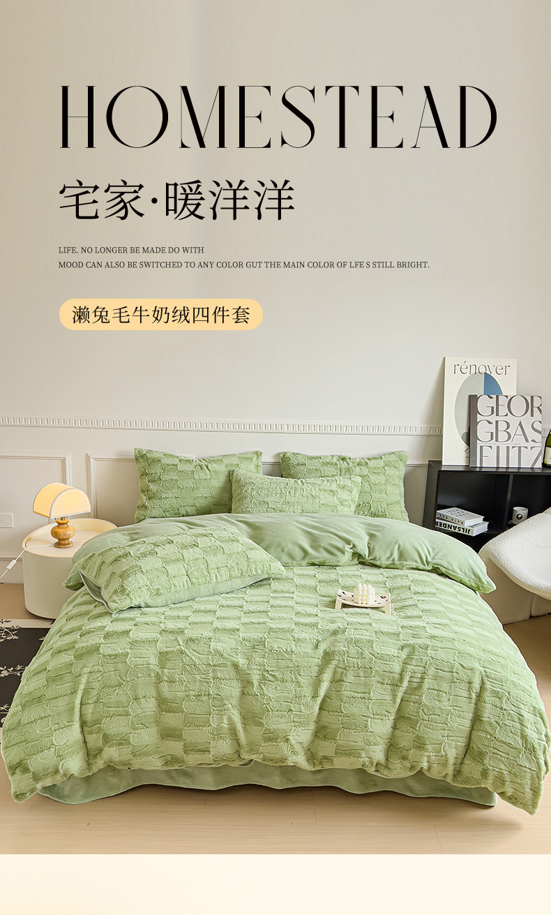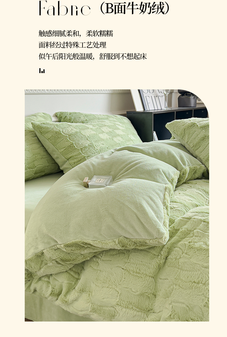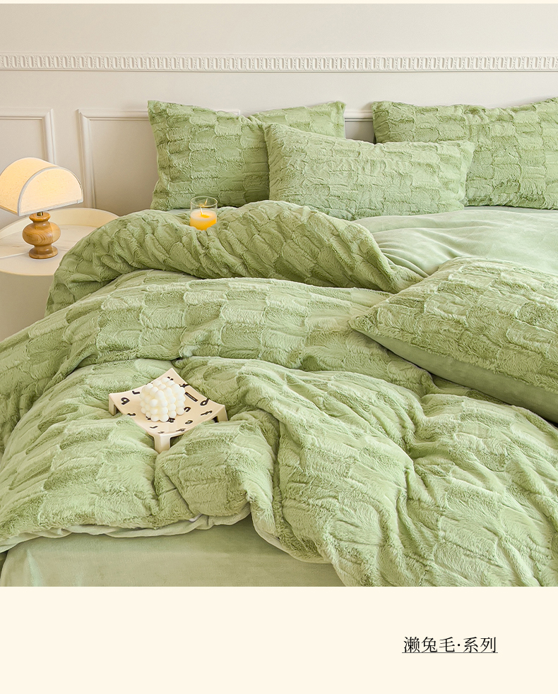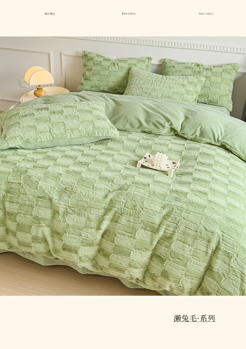 商品名称:木堇 2023新款兔毛绒牛奶绒四件套 濑兔毛--山茶绿