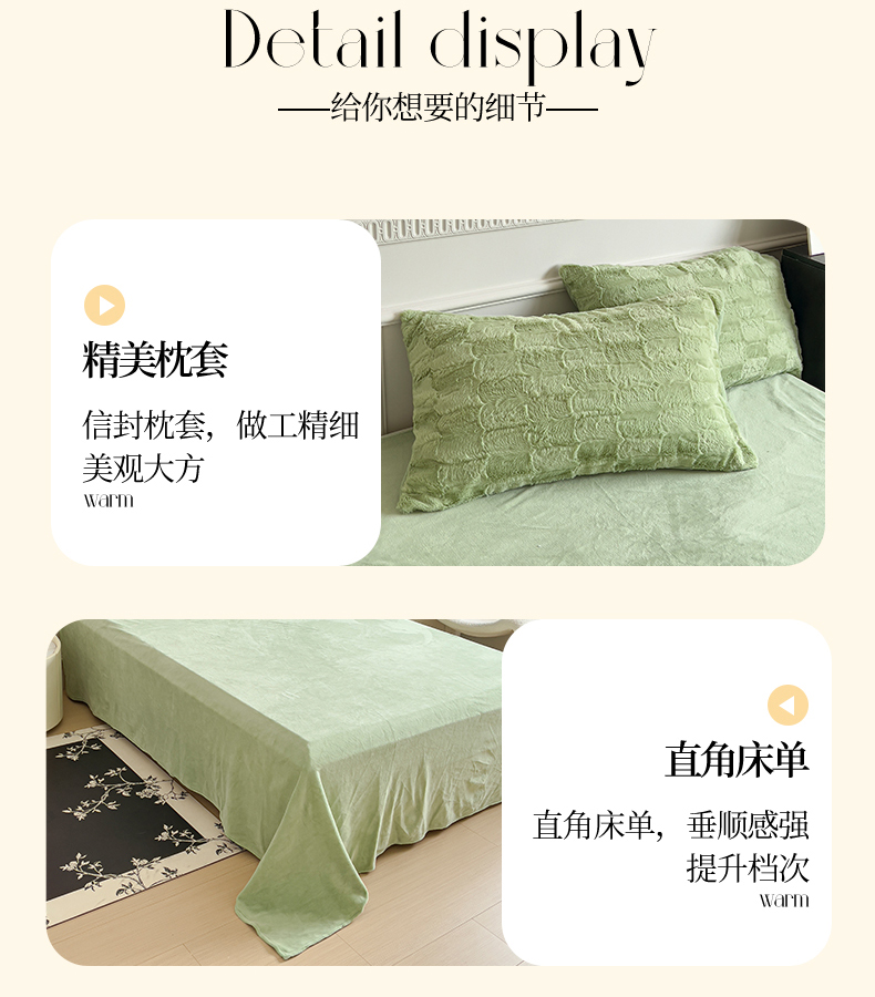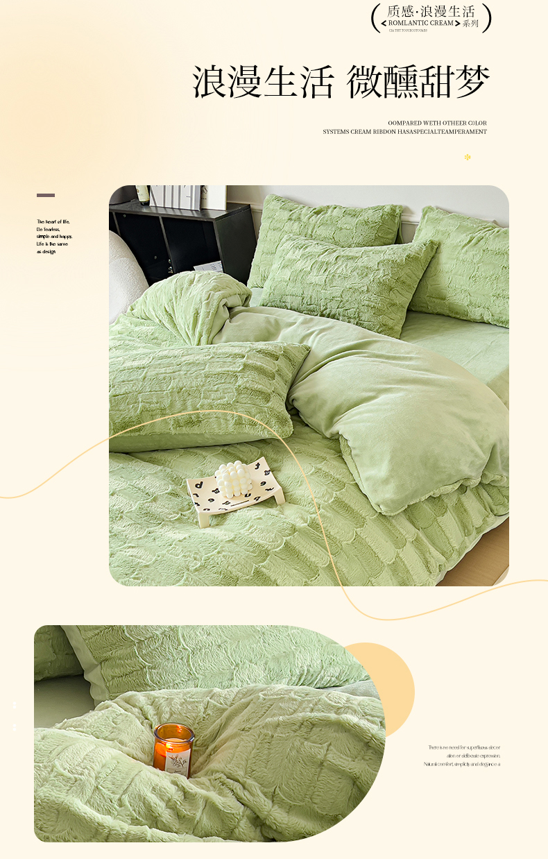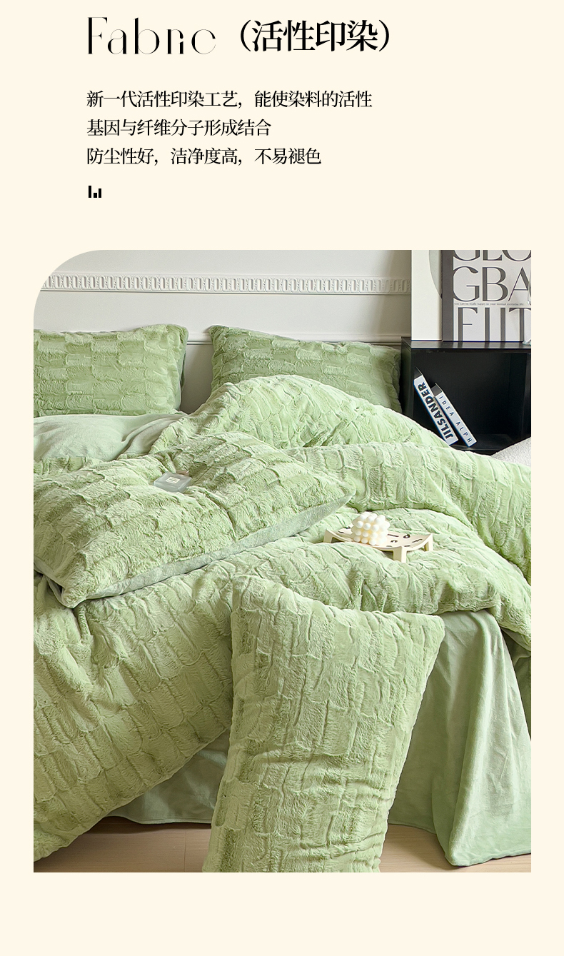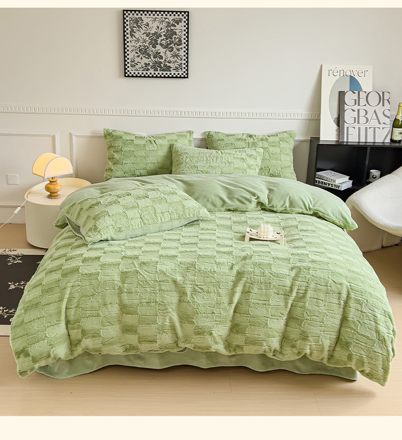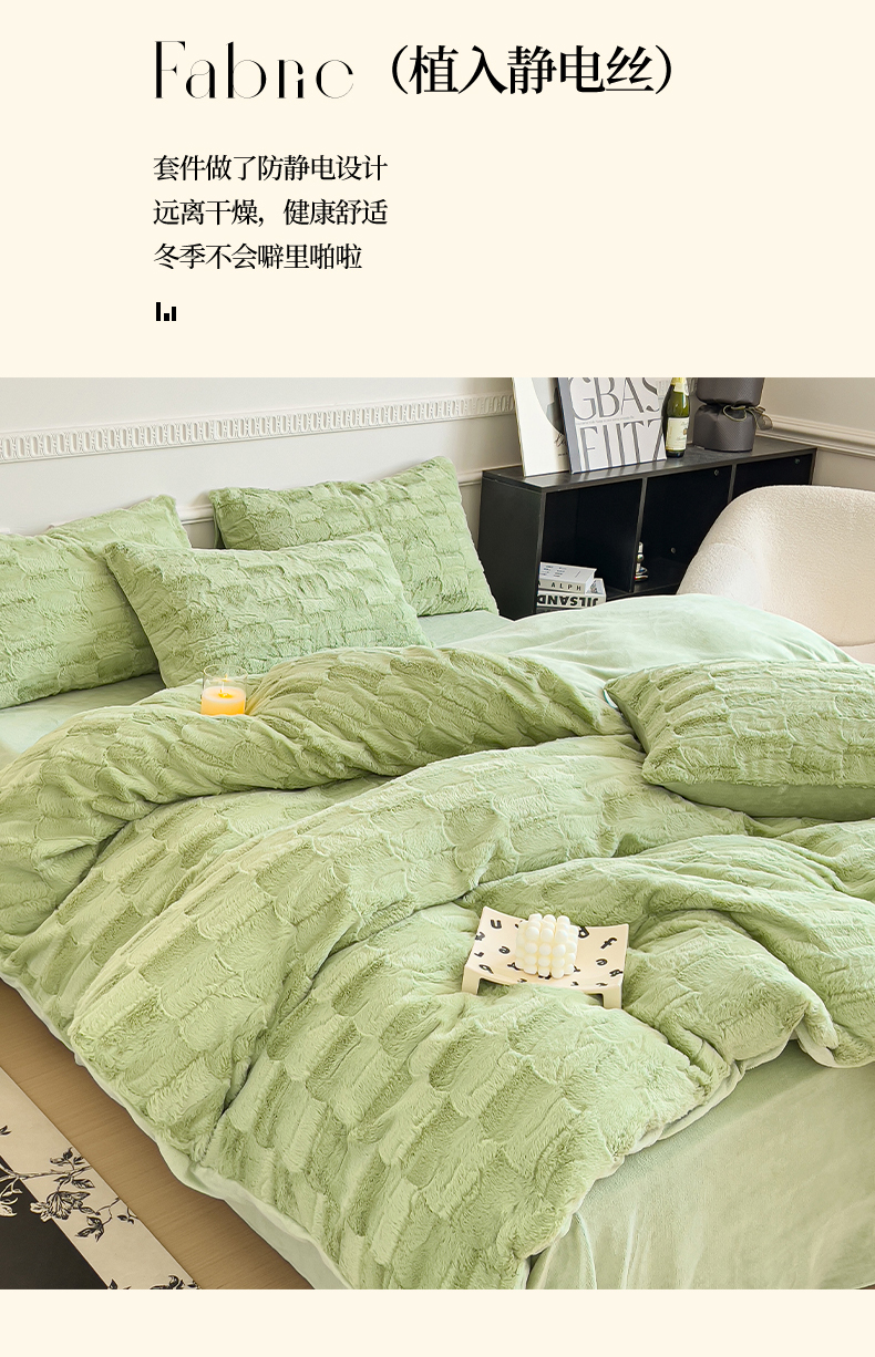 商品名称:木堇 2023新款兔毛绒牛奶绒四件套 濑兔毛--山茶绿