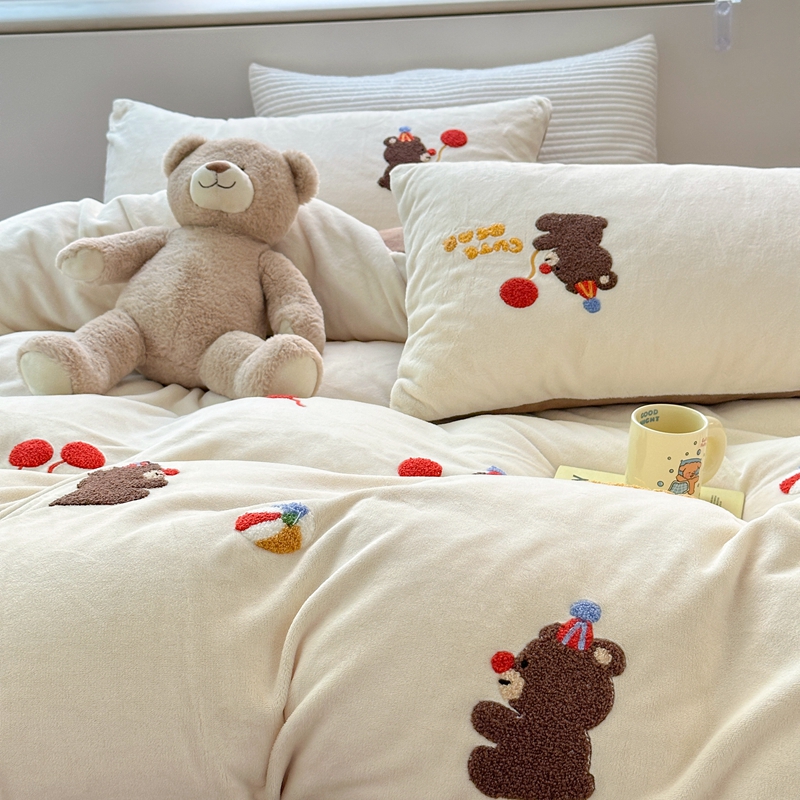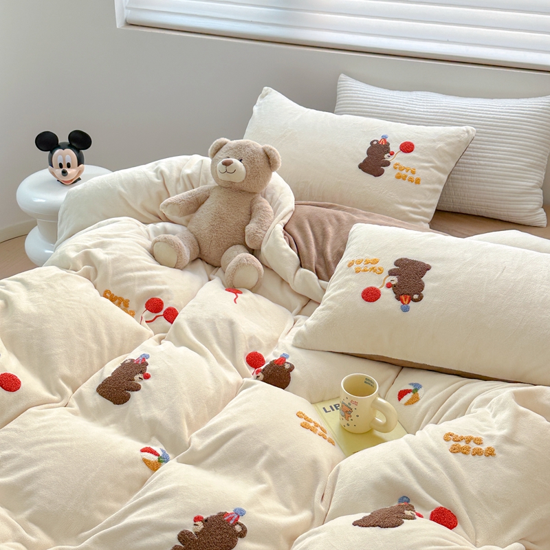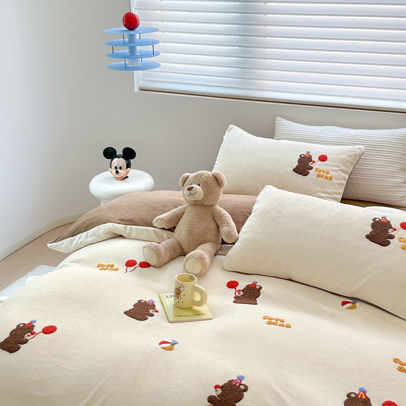 商品名称:星期八 2023新款牛奶绒毛巾绣四件套 气球熊