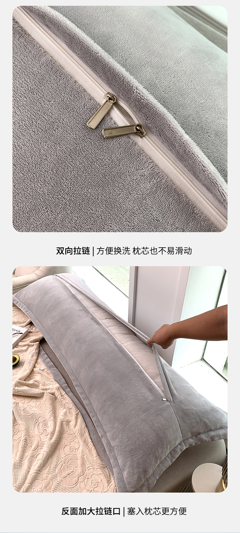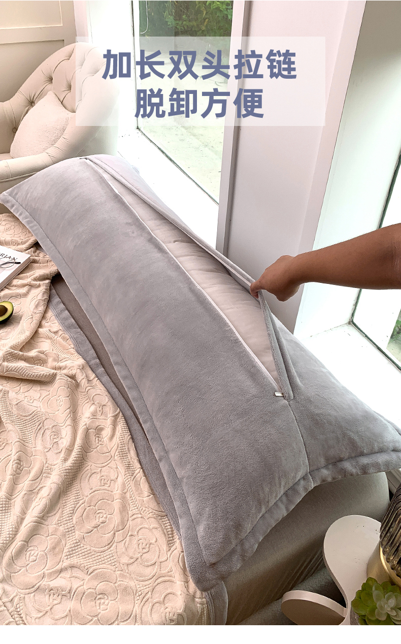 (总)爱港家纺 2025新款牛奶绒夹棉衍缝长枕套,红满福,暖桃粉,青柠绿,青雾蓝,云际灰