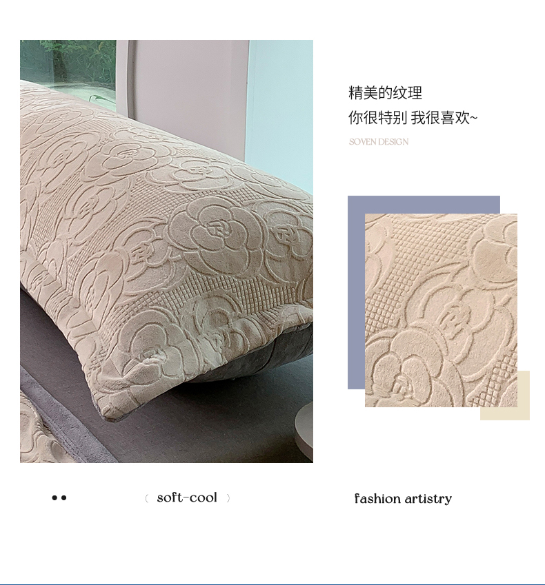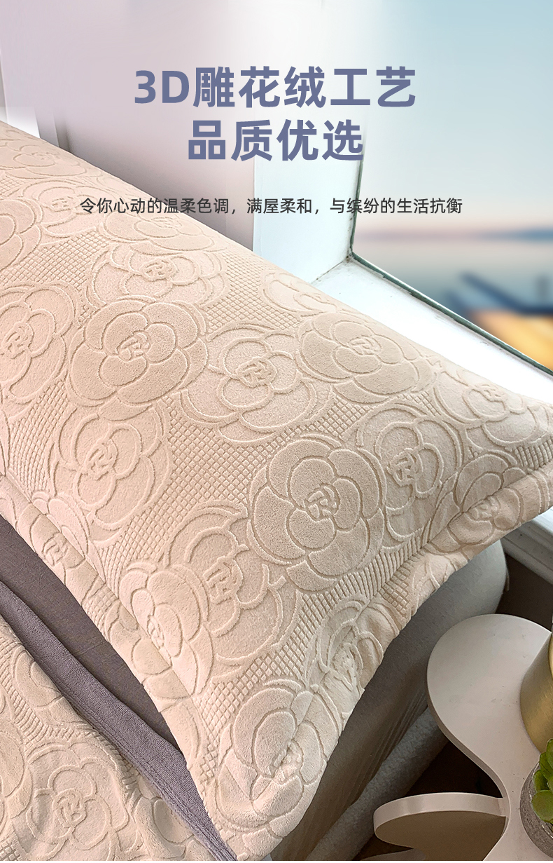 商品名称:爱港 2023新款3D消光烂花牛奶绒长枕套,情侣双人枕套,男生保暖枕套 甜蜜白