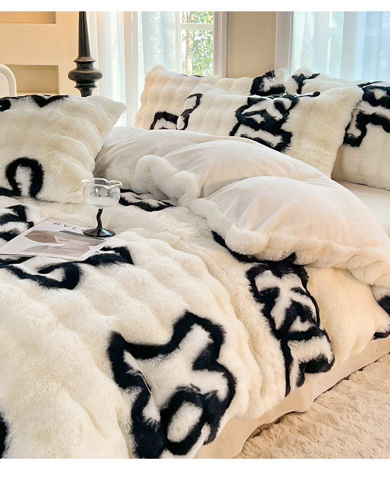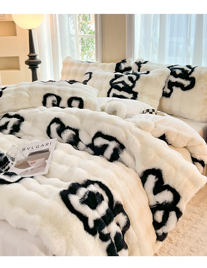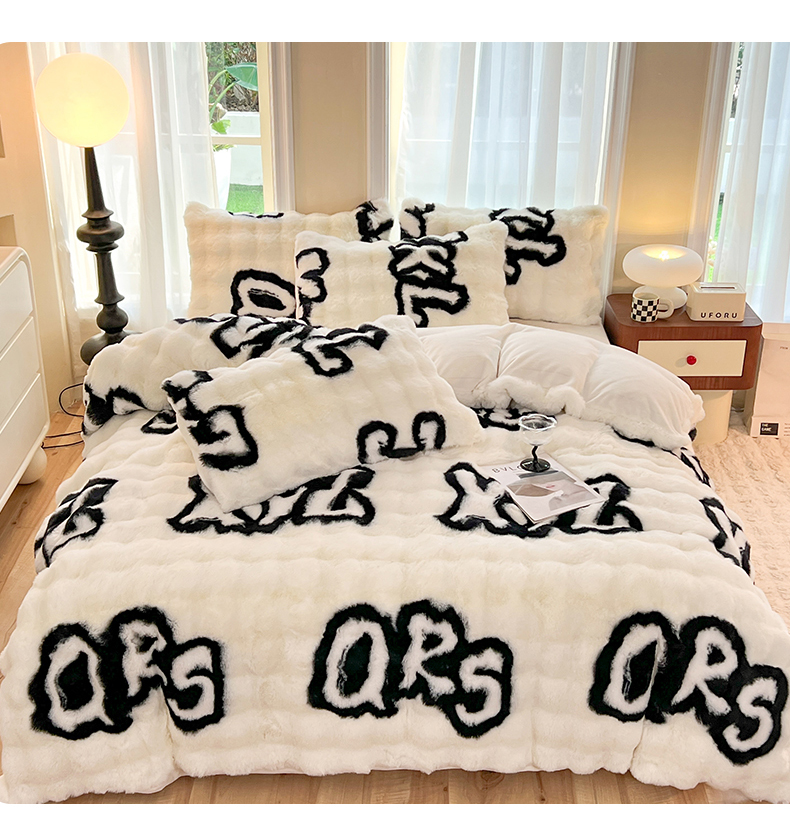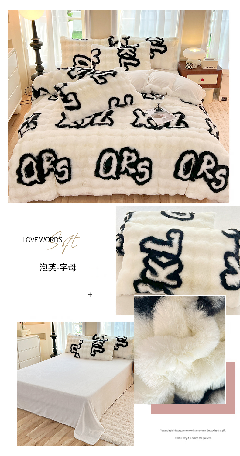 商品名称:妖妖 2023新款兔毛牛奶绒四件套-泡芙 泡芙-字母