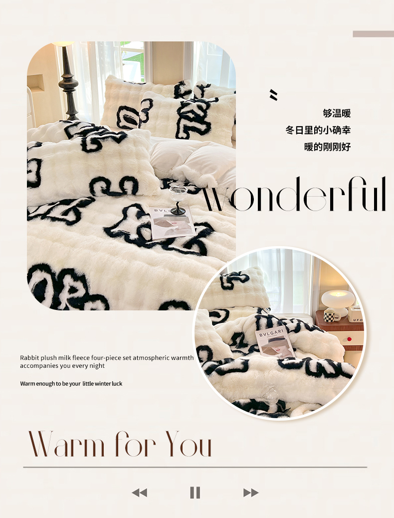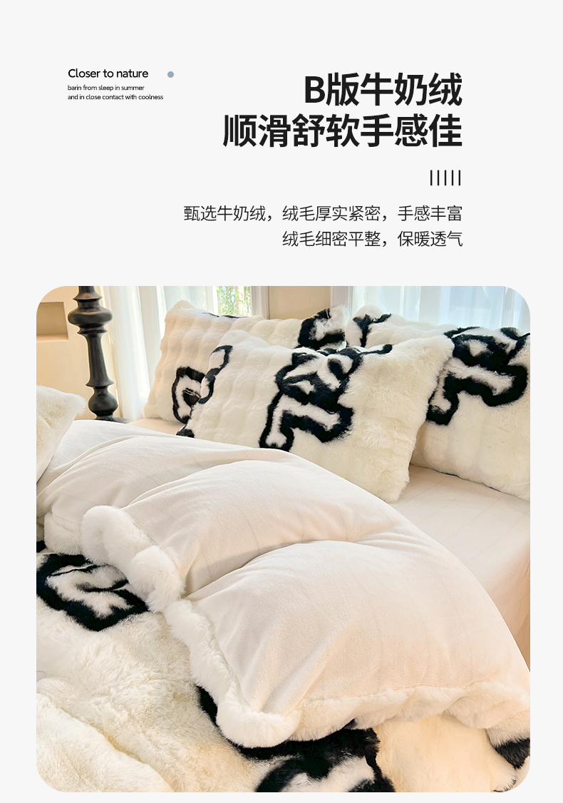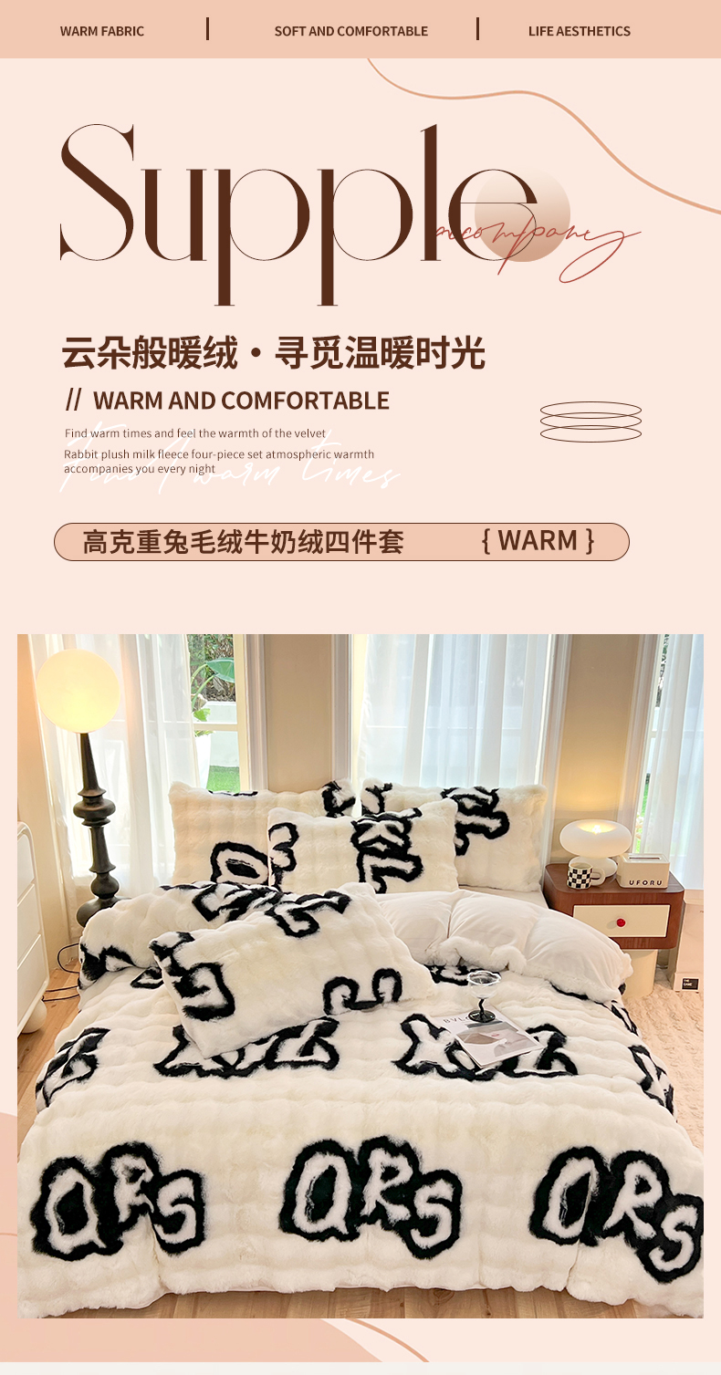 商品名称:妖妖 2023新款兔毛牛奶绒四件套-泡芙 泡芙-字母