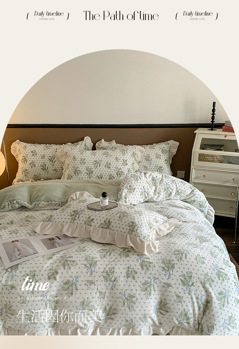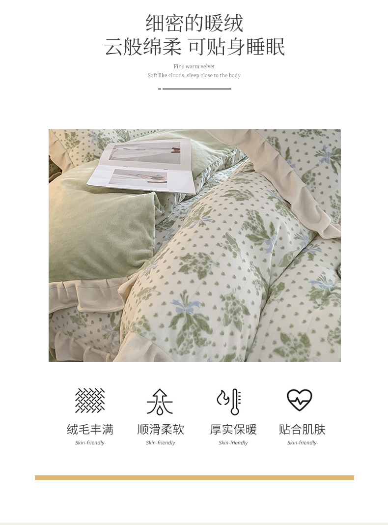 (总)潘朵拉 2023年新款豆豆绒花边牛奶绒四件套,仙芽,兰溪,半眠,向晚,小奶兔,樱桃丸子,粉萝,紫烟,花城,薄荷味,青雅