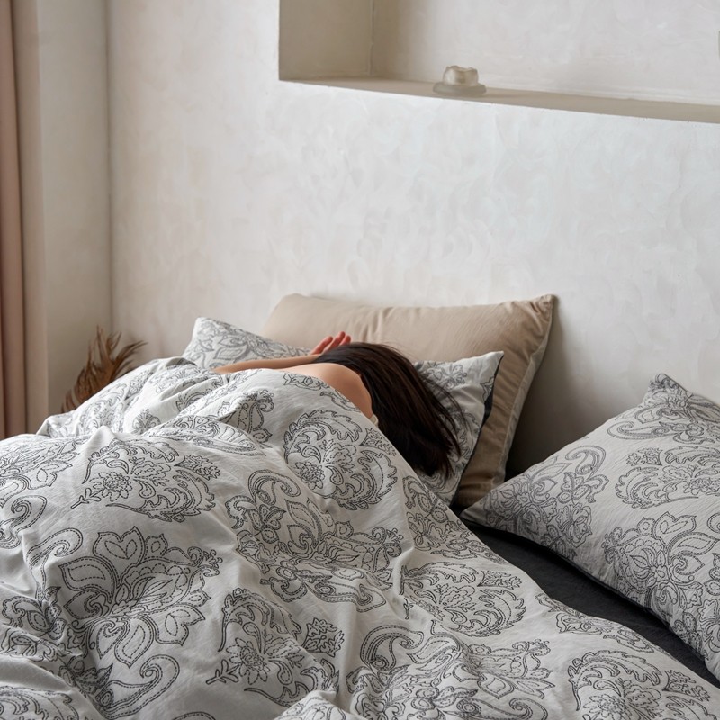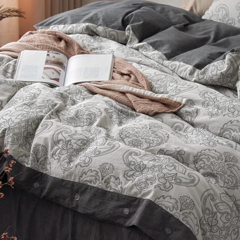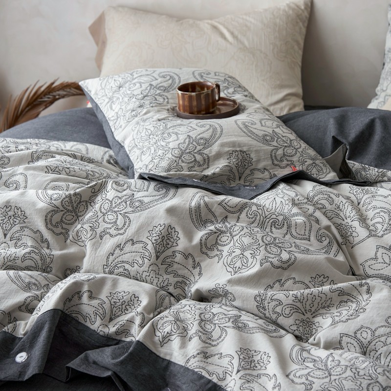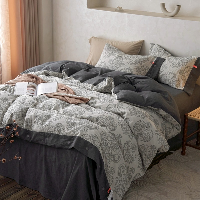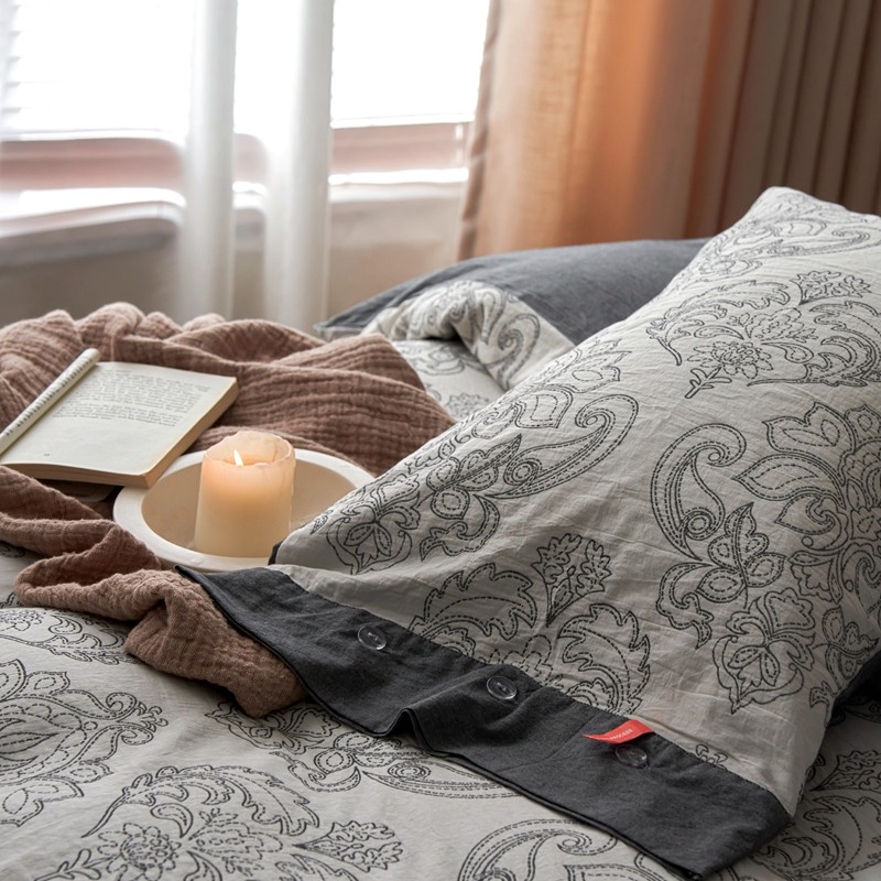 当前位置: 91家纺网 > 商品网购 > 床品套件 > 四件套 > 提花四件套 > 安莱生活 2023新款双层纱大提花纽扣款波拿系列工艺款四件套 波拿-深灰