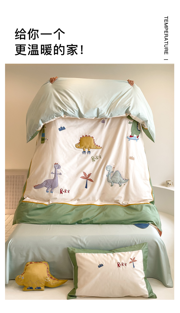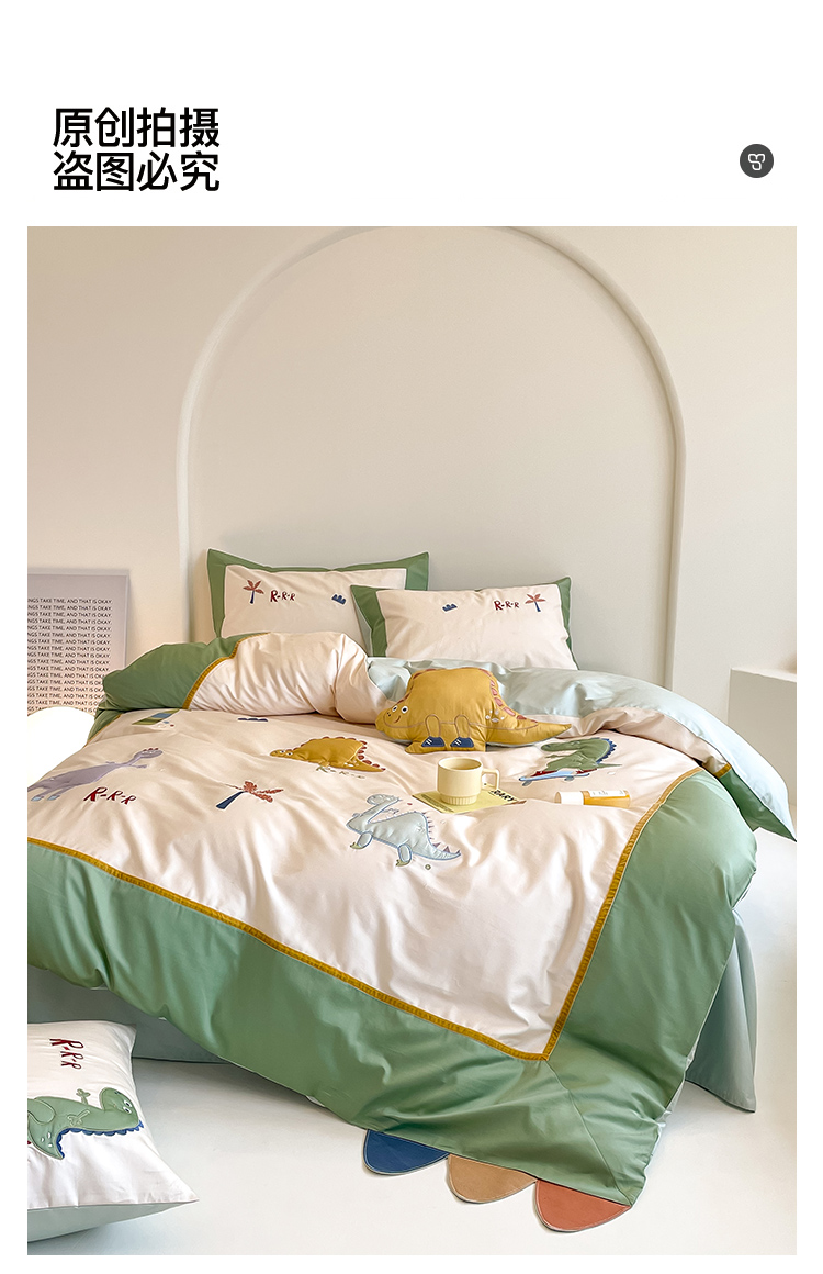西西家居 2023新款100支全棉澳棉儿童卡通四件套 恐龙总动员