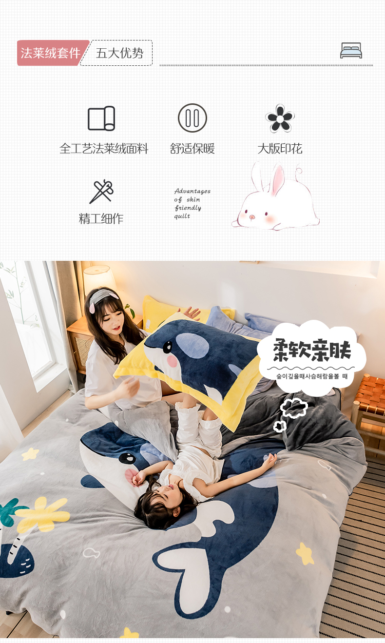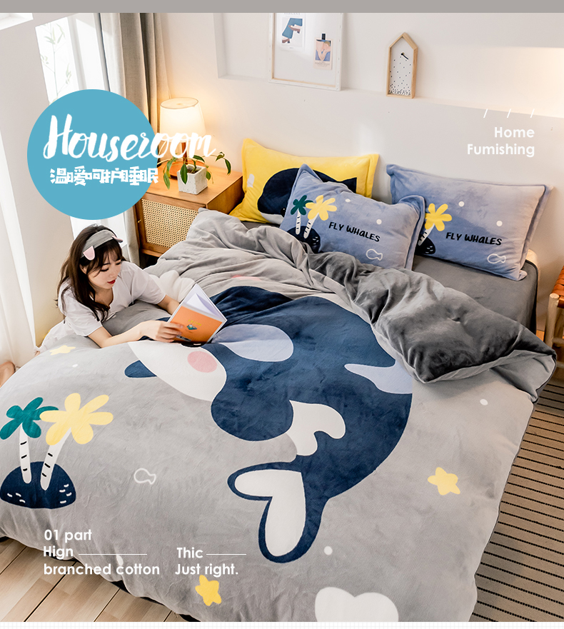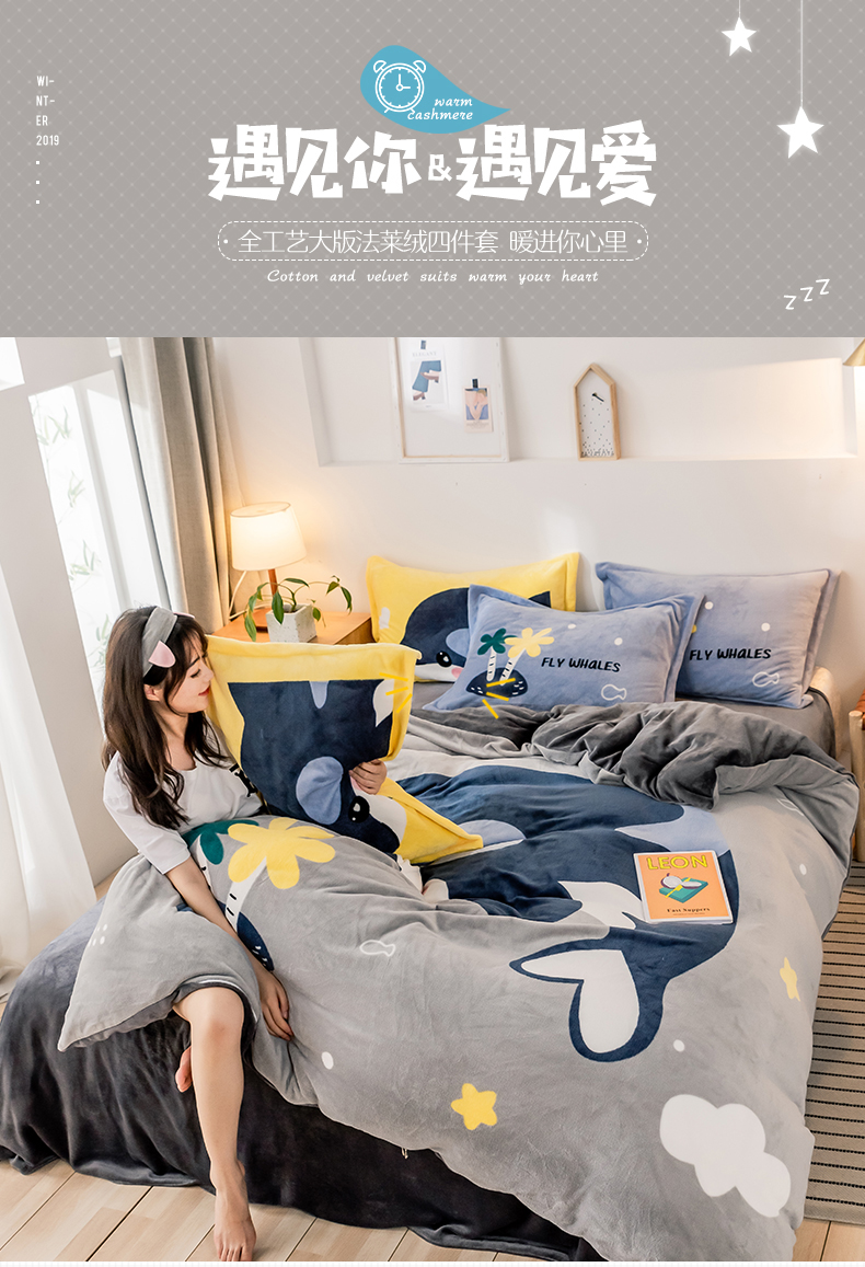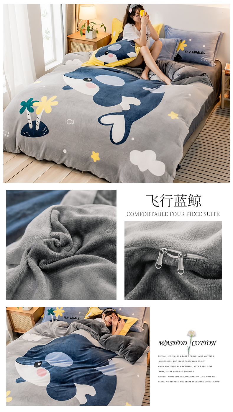 当前位置: 91家纺网 > 商品网购 > 床品套件 > 四件套 > 牛奶绒四件套 > 宅部落 2023新款大版卡通牛奶绒四件套法莱绒 13.飞行蓝鲸