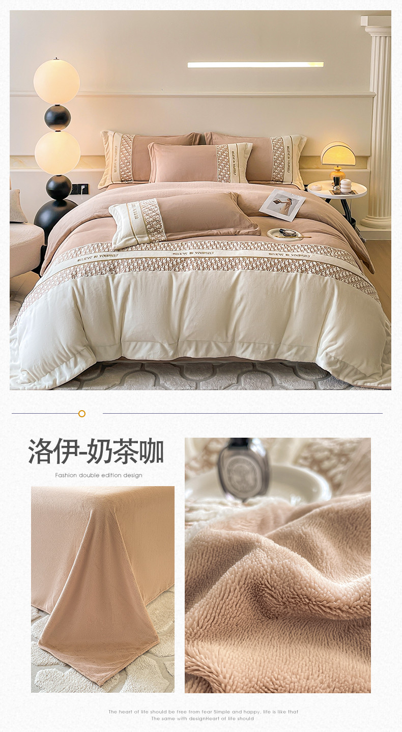 当前位置: 91家纺网 > 商品网购 > 床品套件 > 四件套 > 牛奶绒四件套 > 慕色家纺 2023新款牛奶绒绣花四件套-洛伊 洛伊-奶茶咖