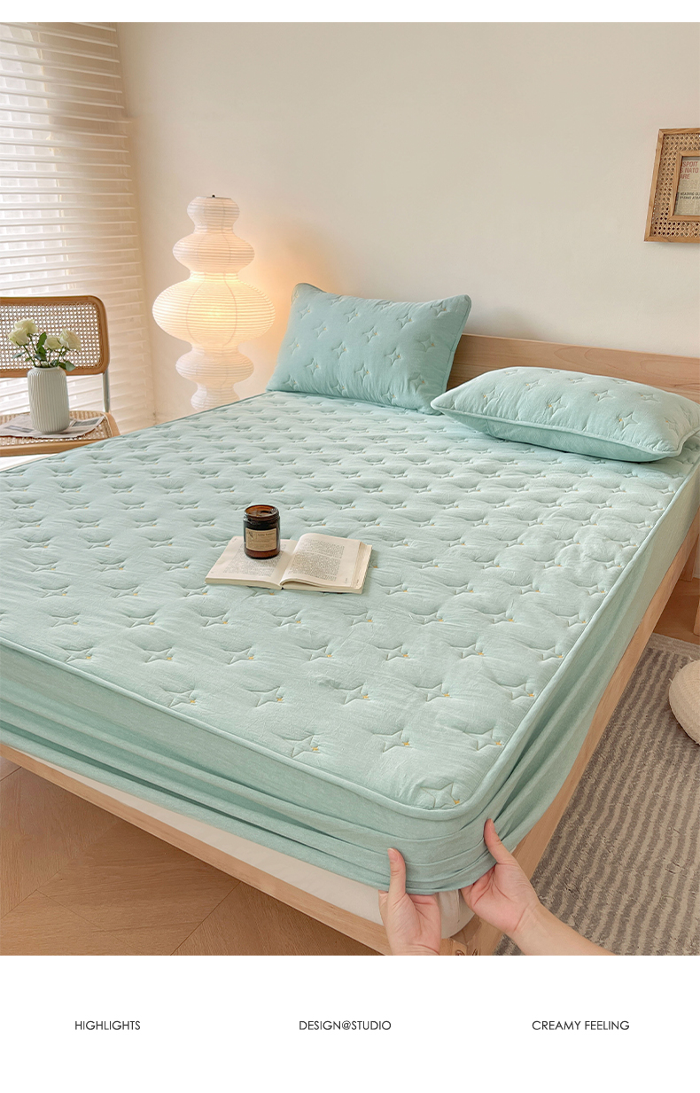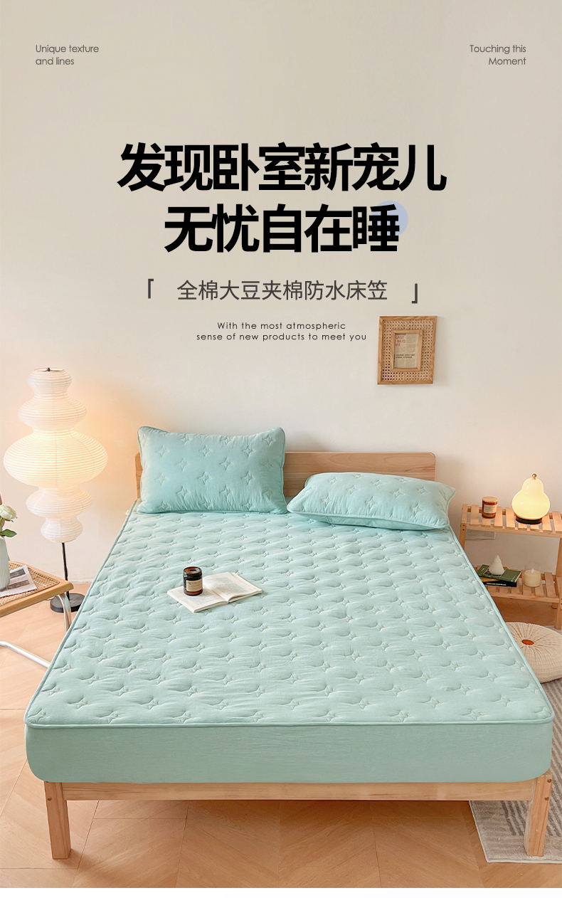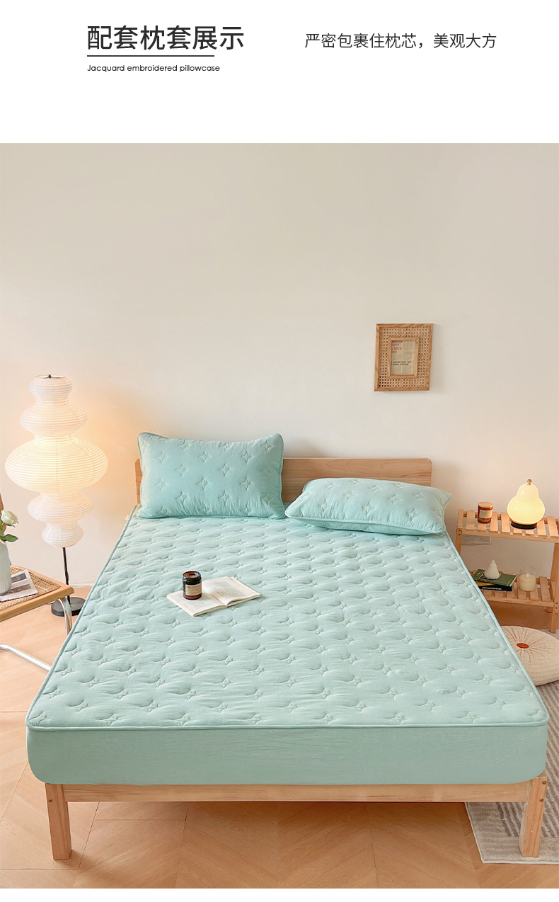 尊康家纺(原磊科) 2024新款全棉色织大豆夹棉床笠防水床笠-浓情蜜意 绿色