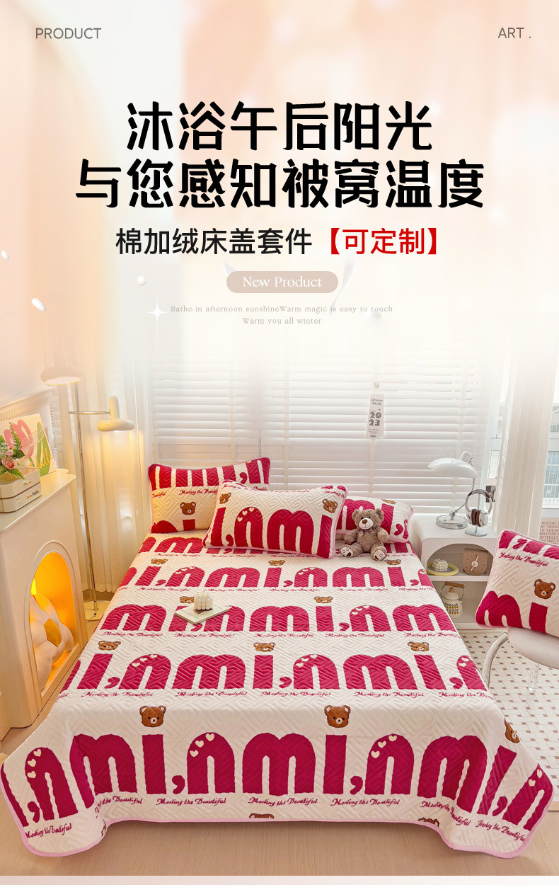 (总)羽爱 2024新款棉加绒床盖套件,彩韵,草莓乐园,好运兔,花香,花叶漫舞,欢乐萌宠,恐龙宝宝,烂漫花影,迷你熊-黑,迷你熊-红,莫兰迪,七彩爱心,青柠薄荷,甜甜果,温馨小花,熊宝,熊猫宝贝,洛可可,元气恐龙,汪星人,蝴蝶谷,欢喜小兔,满心欢喜,南瓜派,欧风花影,笑脸熊仔,幸运草莓,果酱熊,可爱恐龙