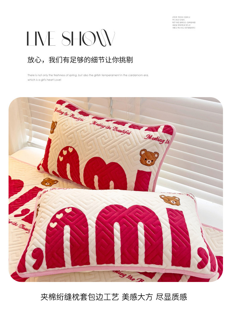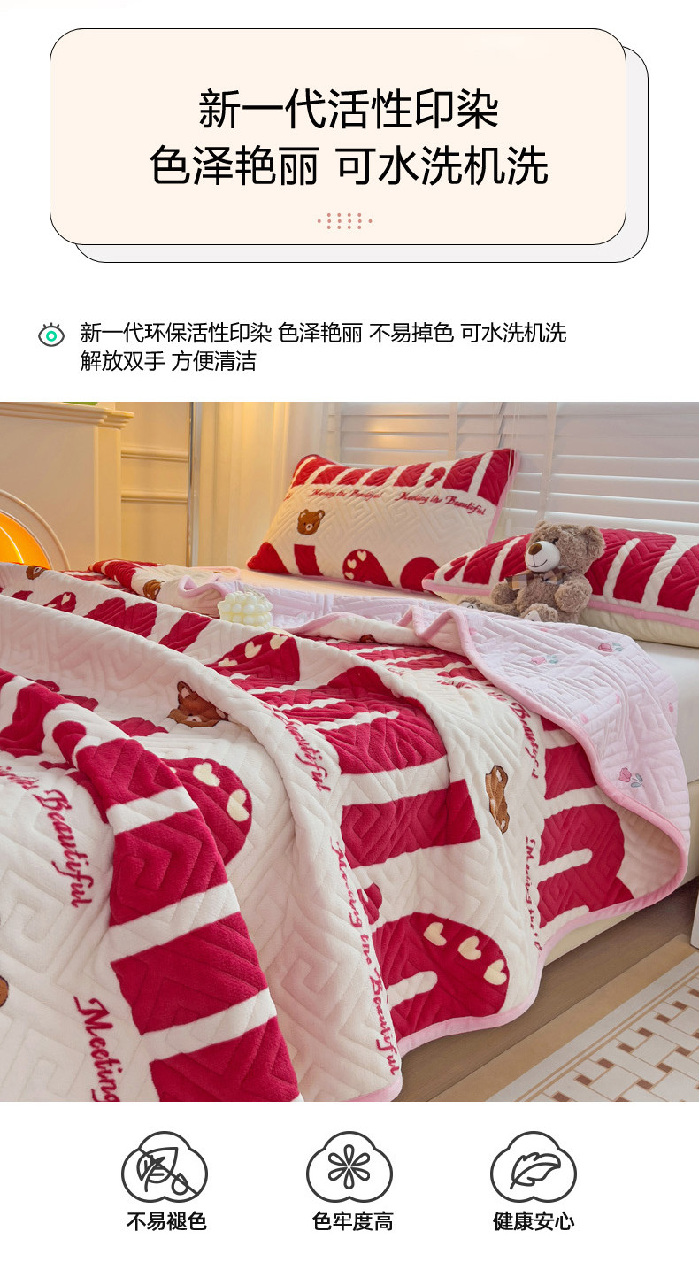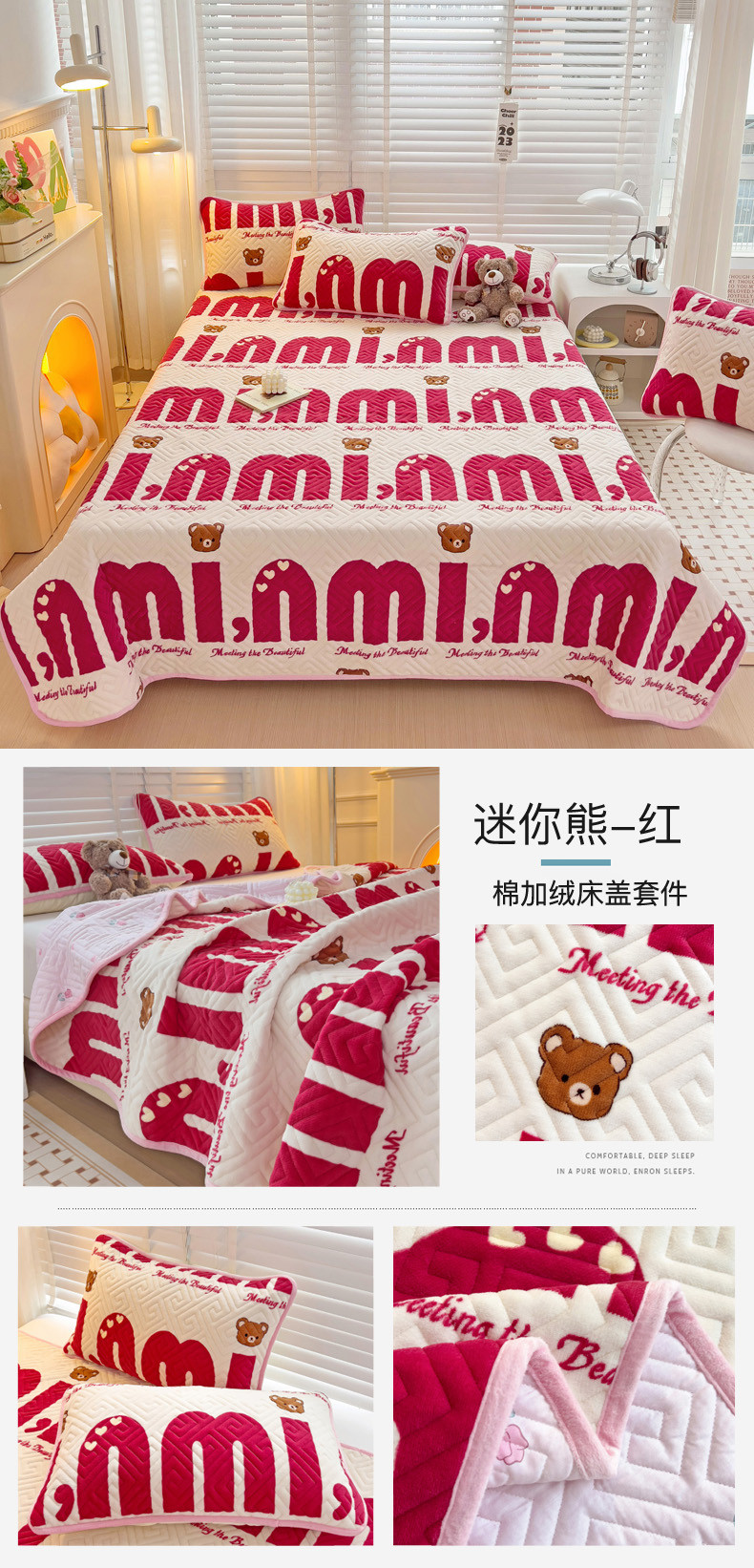商品名称:羽爱 2024新款棉加绒床盖套件 迷你熊-红