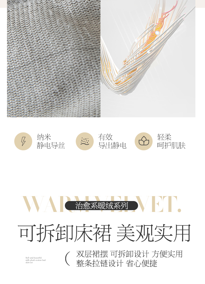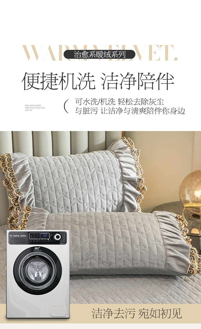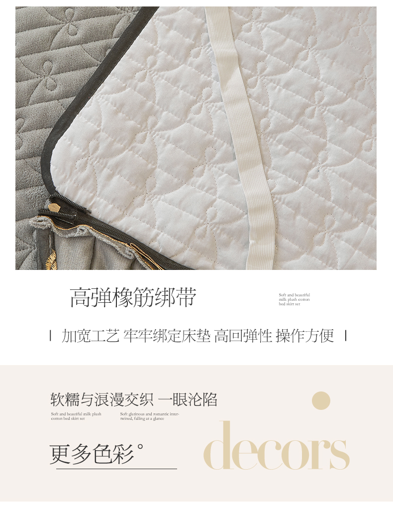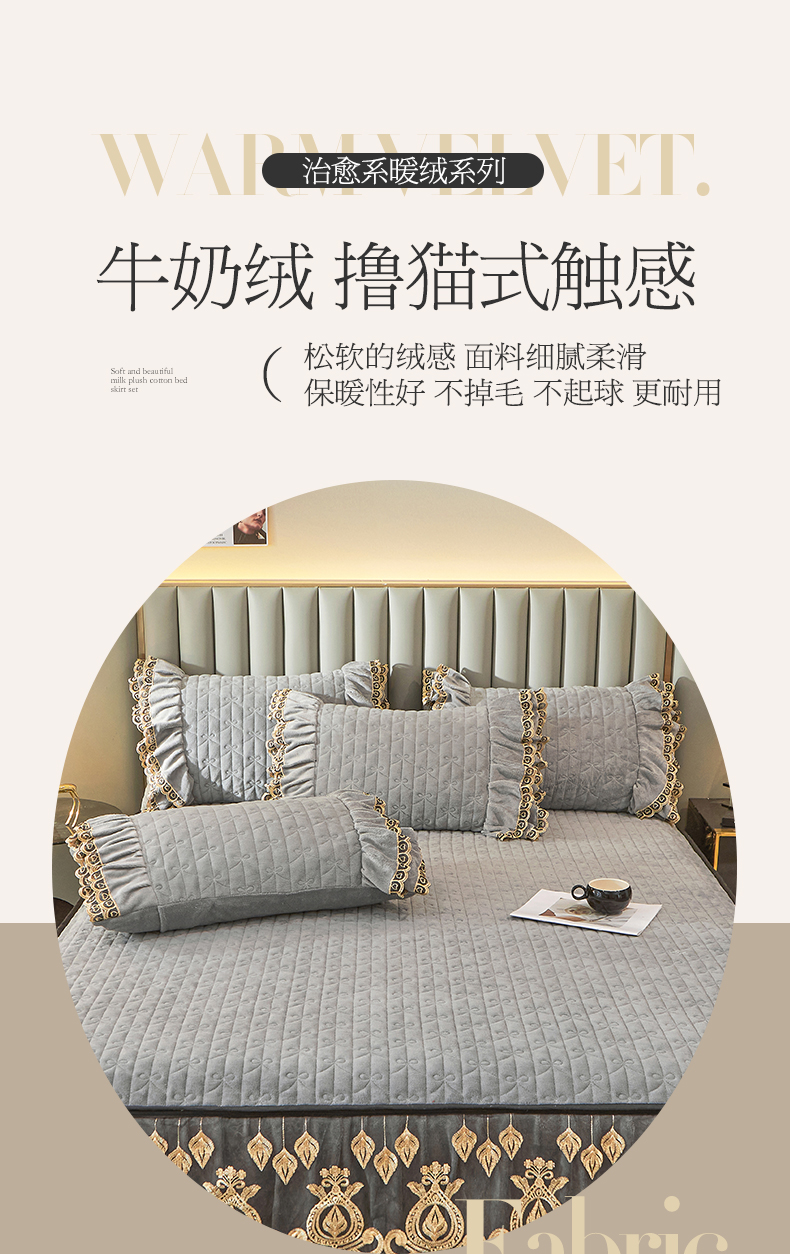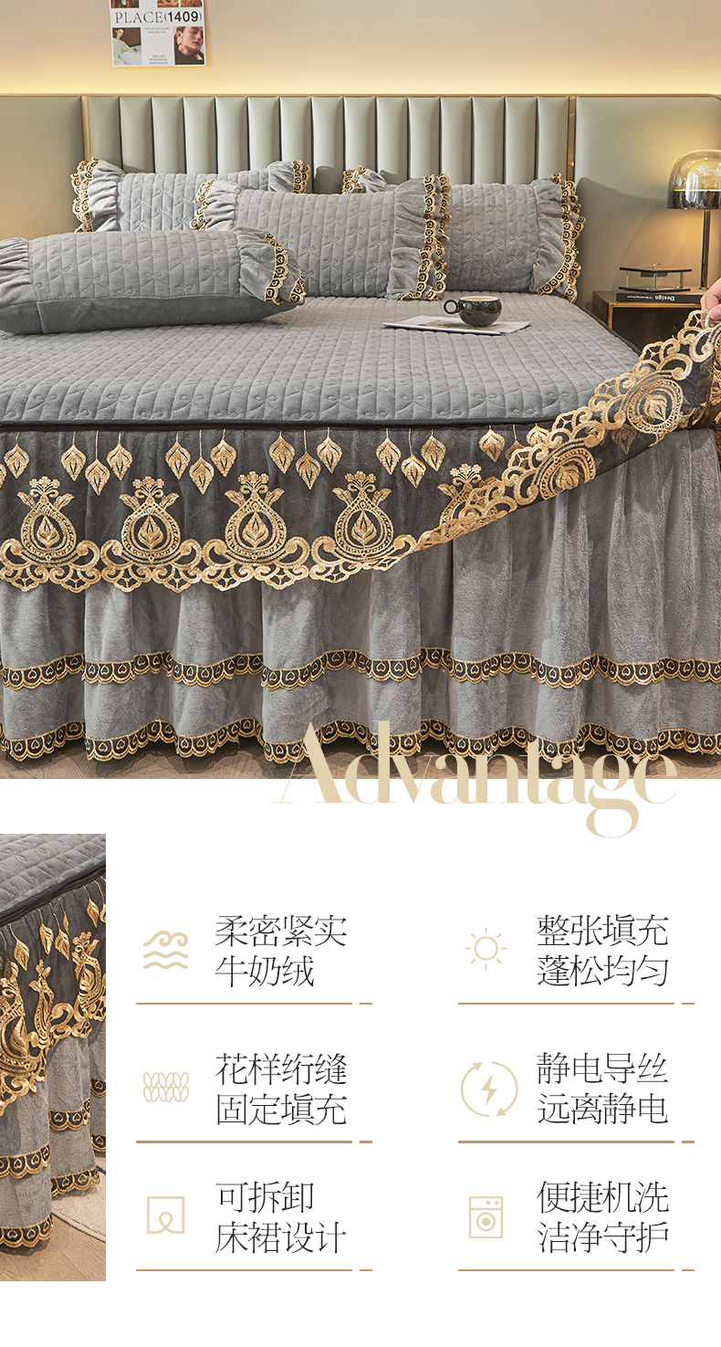 商品名称:虹星家纺 2023新款牛奶绒夹棉蕾丝可拆卸床裙系列单床裙 梦幻巴黎 时尚灰
