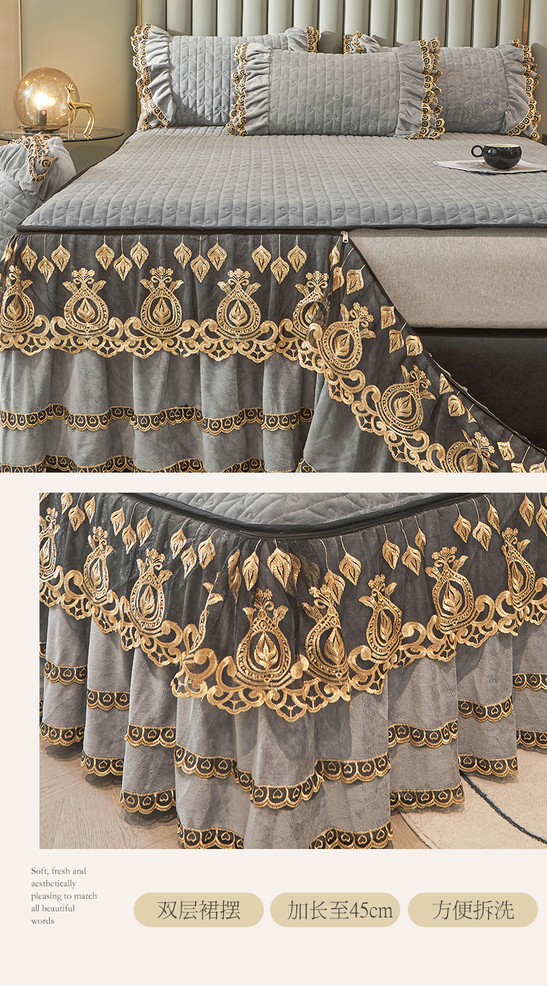 虹星家纺 2023新款牛奶绒夹棉蕾丝可拆卸床裙系列单床裙 梦幻巴黎 时尚灰