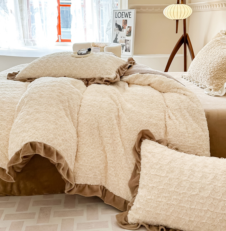 (总)米莱家纺 2023新款兔毛四件套 玫瑰花,玫瑰花-白加咖,玫瑰花-白加粉,玫瑰花-粉色,玫瑰花-灰色,玫瑰花-咖色,玫瑰花-绿色,玫瑰花-紫色