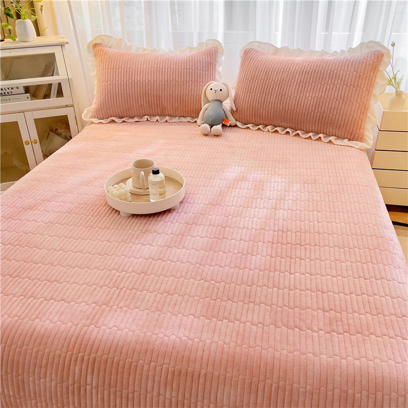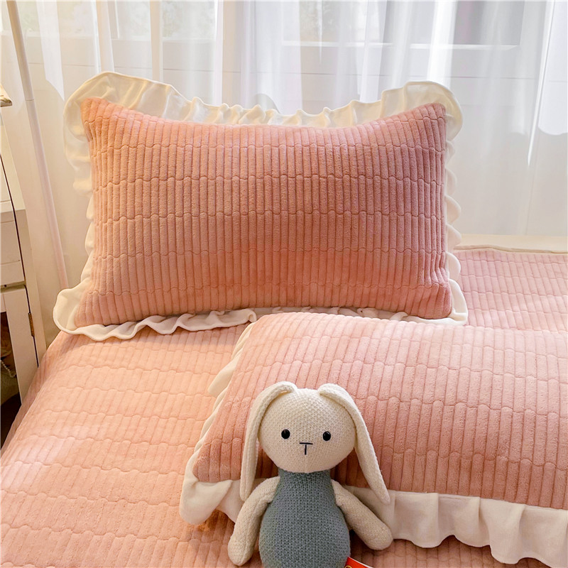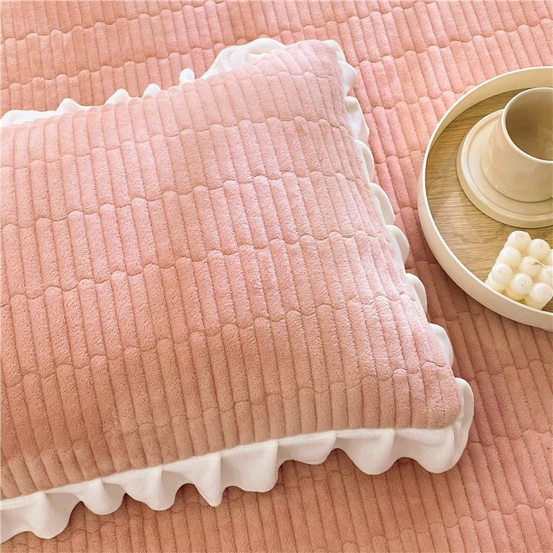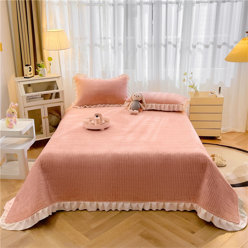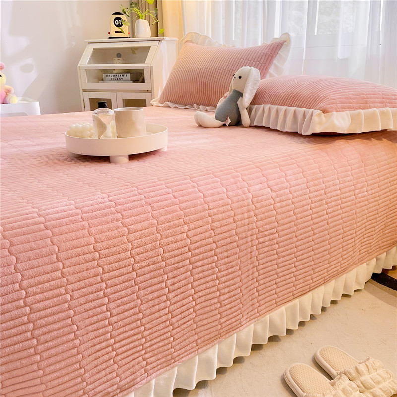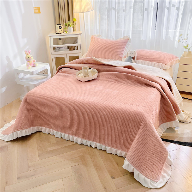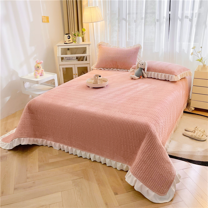 喜居 2023新款纯色牛奶绒花边款床盖 粉豆沙
