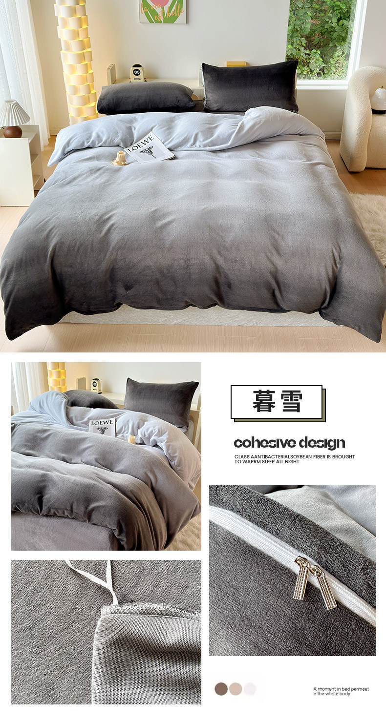 商品名称:怡家居 2023新款高克重牛奶绒印花四件套 暮雪