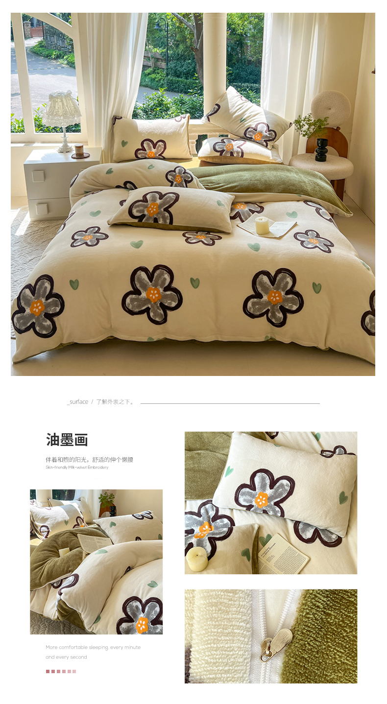 仟网汇 2023新款双面印花牛奶绒四件套 油墨画